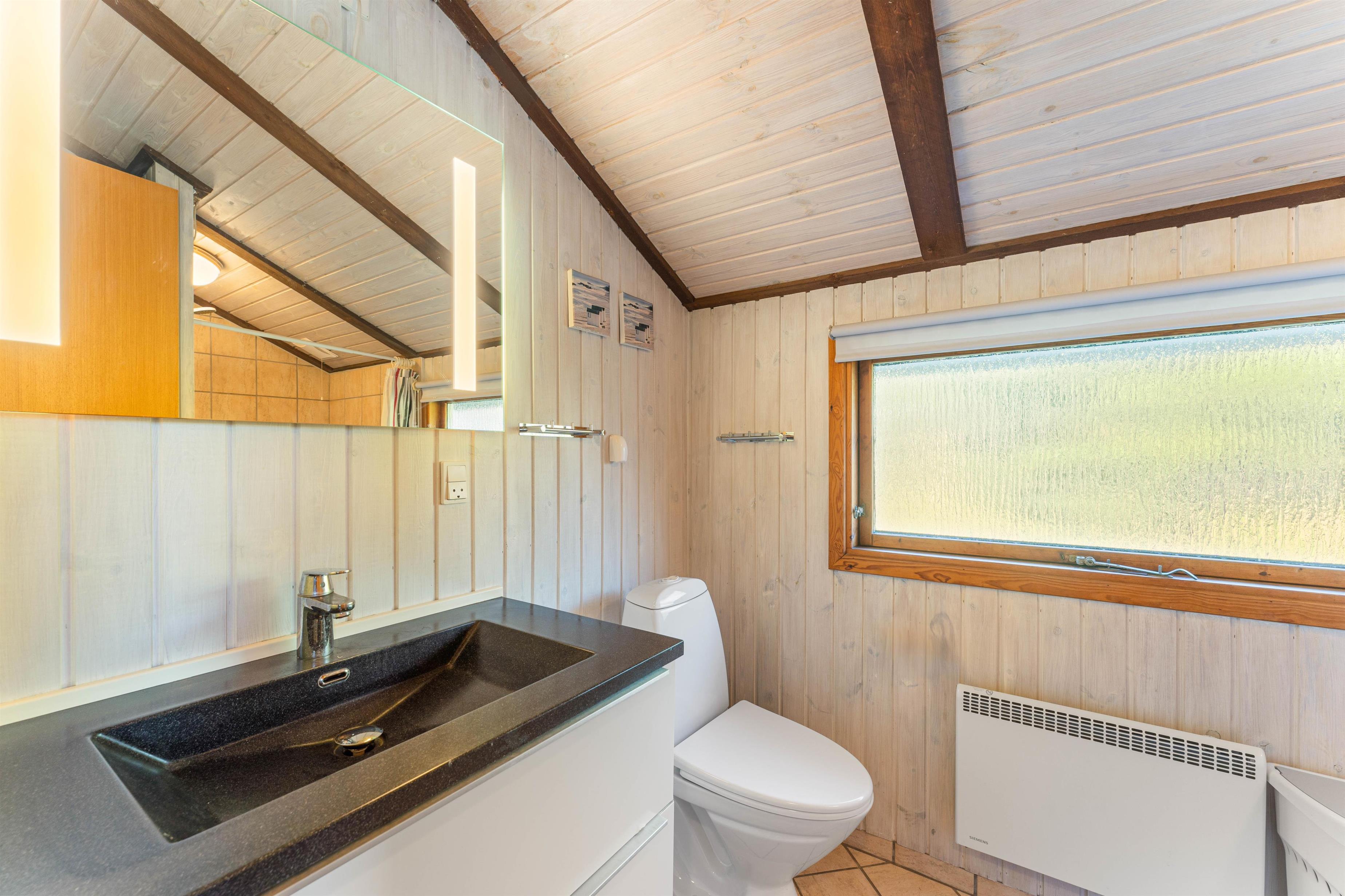 Selve sommerhuset er indrettet med to gode soverum og et hyggeligt gæstehus, som har to enkeltsenge. Badeværelset er lyst og dejligt indrettet. Her finder du også en vaskemaskine, som er med til at gøre ferien lidt lettere – særligt for dig, der har børn.