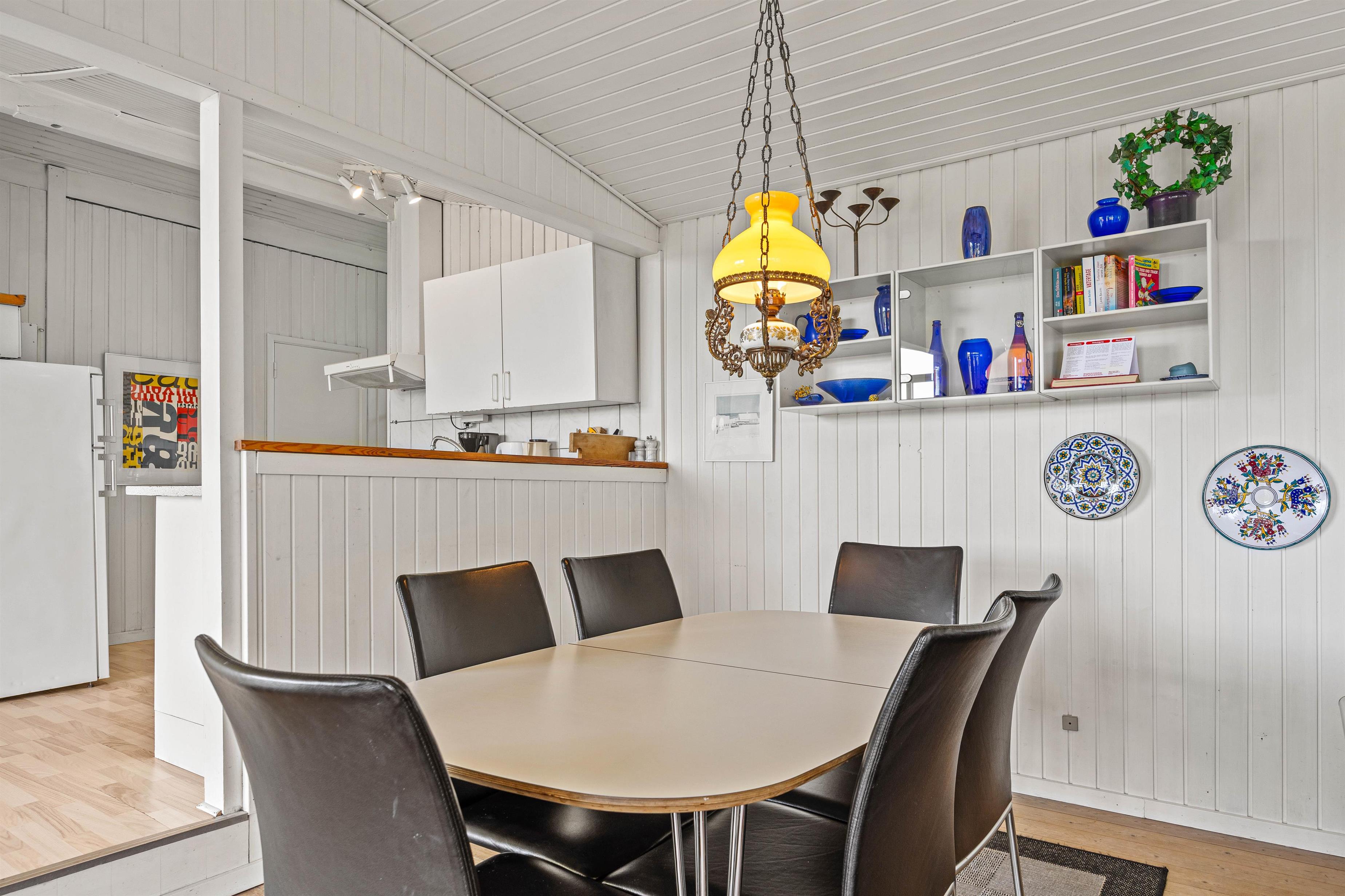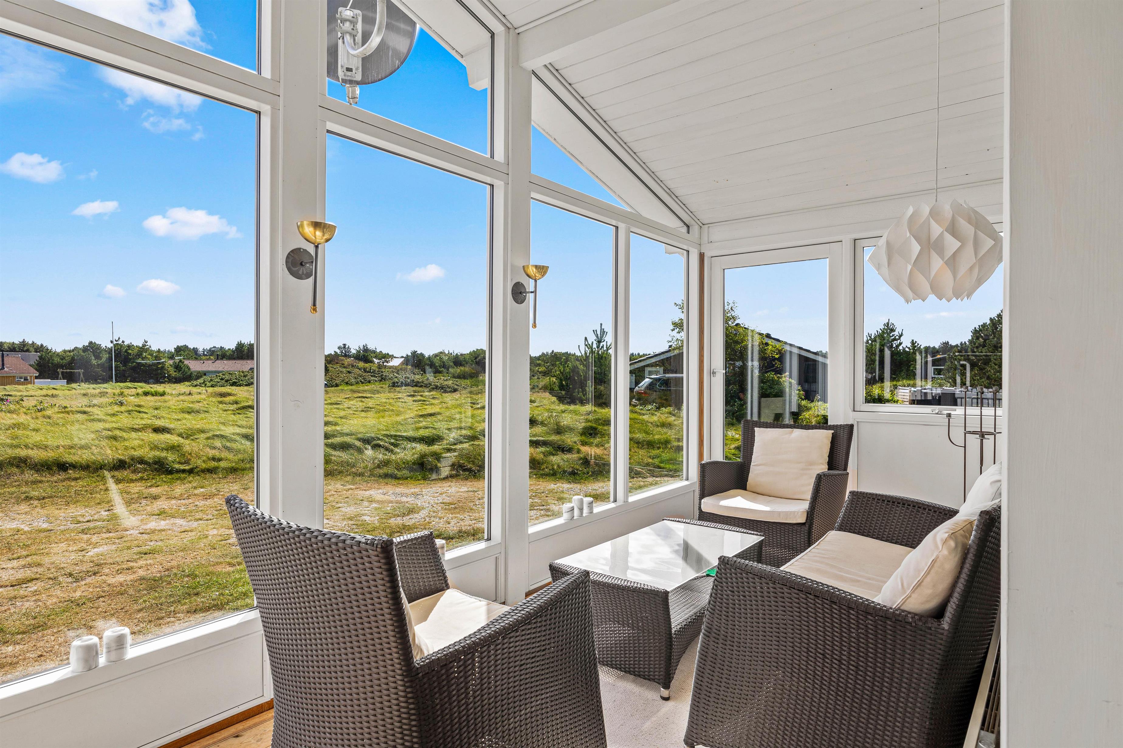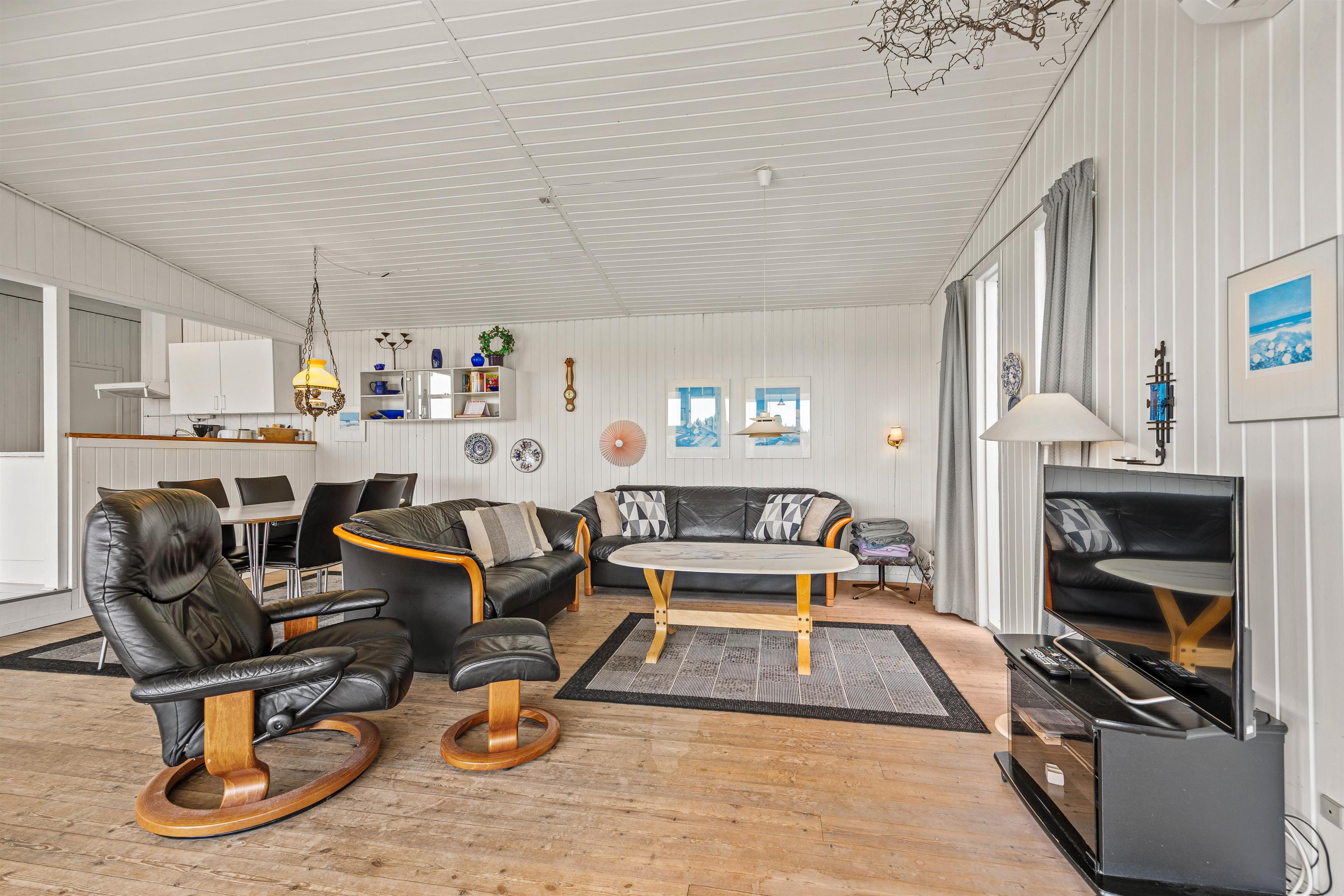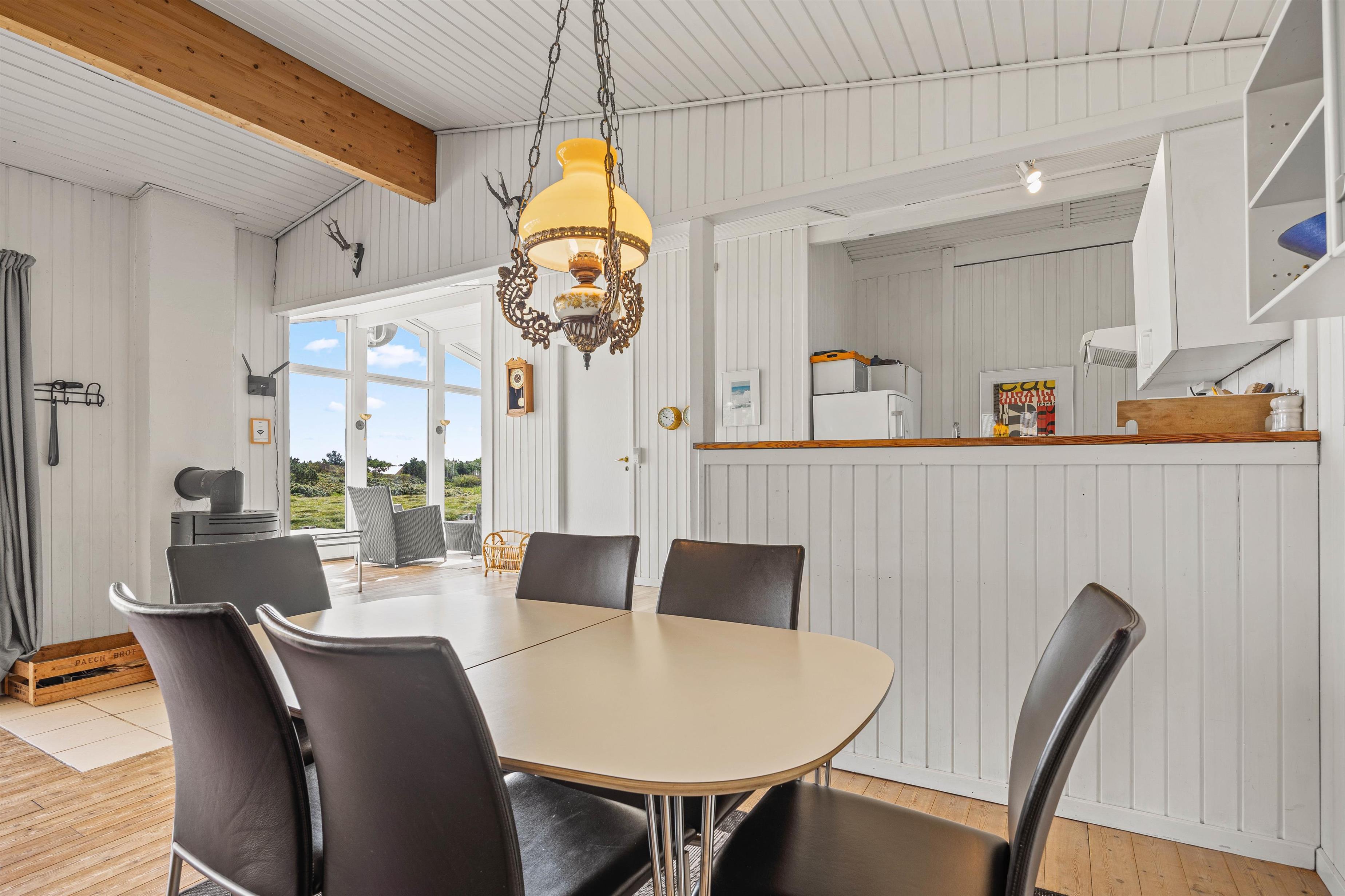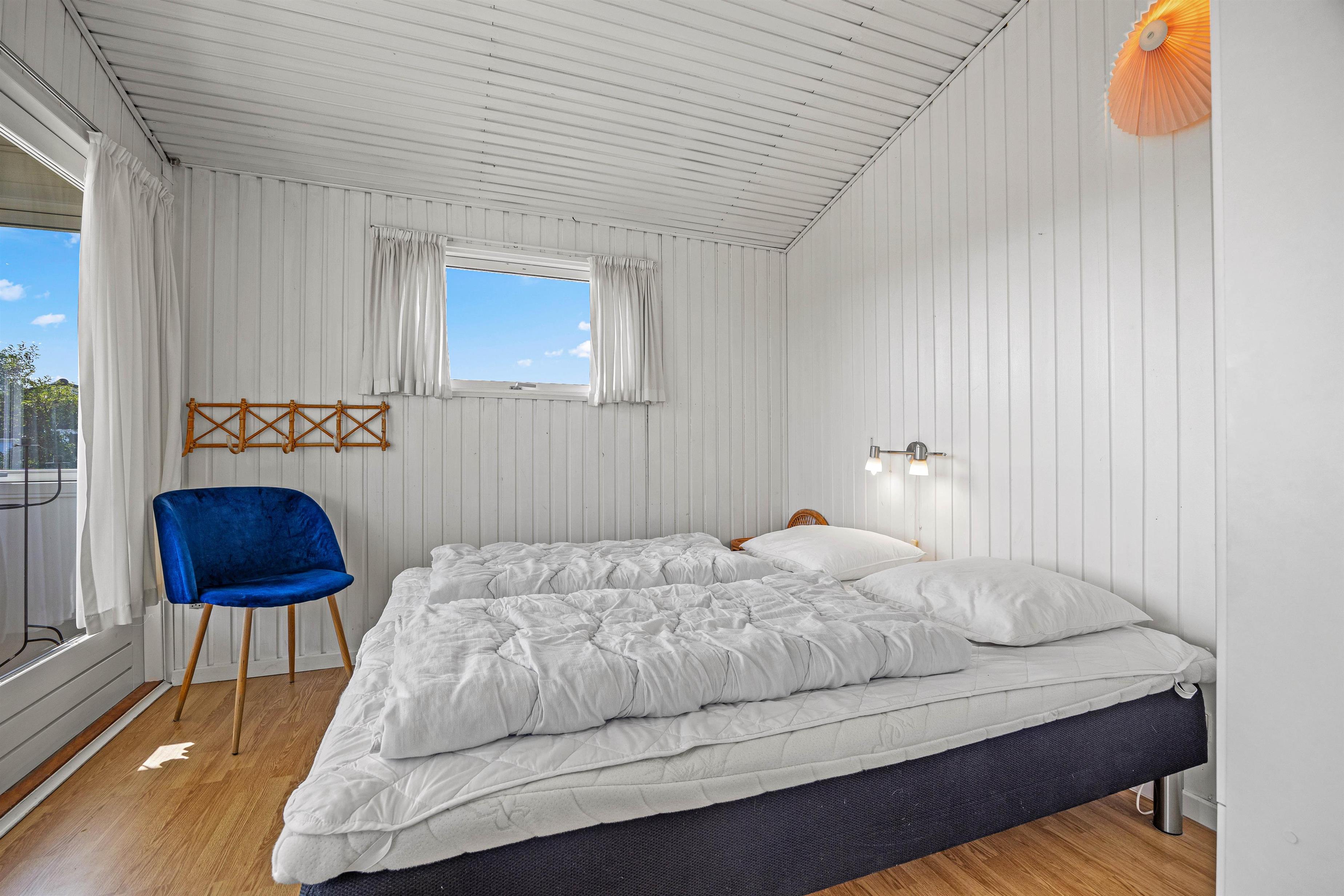 Med tre hyggelige soverum, hvoraf ét har en dobbeltseng og de øvrige 2 hver 3 enkeltsenge, er der rum til både privatliv og hvile. På kølige aftener skaber brændeovnen varme og stemning i huset, og til et generelt godt indeklima er sommerhuset forsynet med en effektiv luft-til-luft-varmepumpe. Badeværelset indeholder alt det nødvendige, herunder en vaskemaskine, så I kan få vasket ferietøjet og lade det lufttørre udenfor i den friske, vestjyske vind.