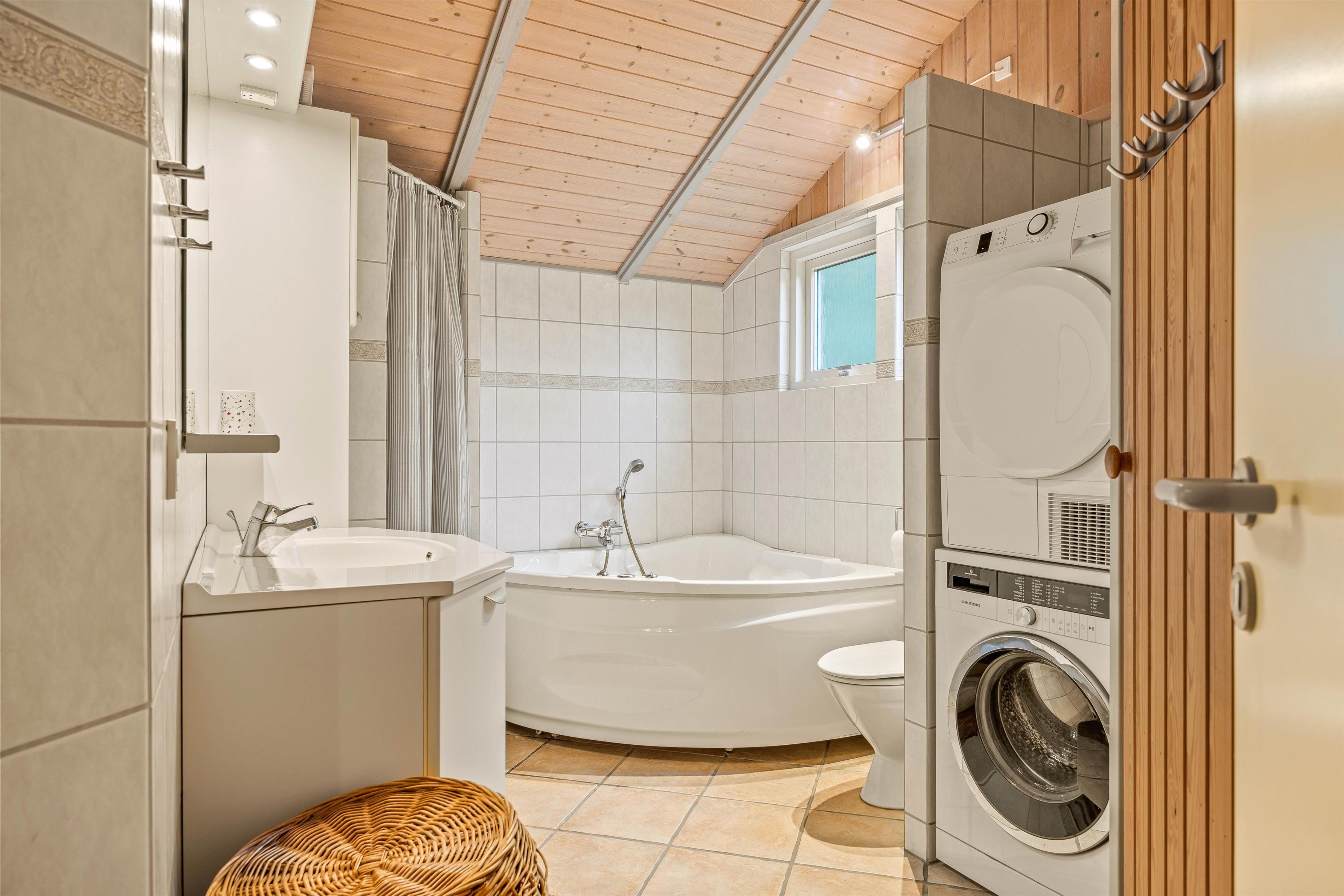 Feriehjemmet har gode, praktiske faciliteter, som hjælper til at gøre ferien så ukompliceret som muligt. Der er både opvaskemaskine, vaskemaskine og tørretumbler, en hurtig og stabil internetforbindelse - og 2 badeværelser, så I slipper for lange toiletkøer om morgenen.