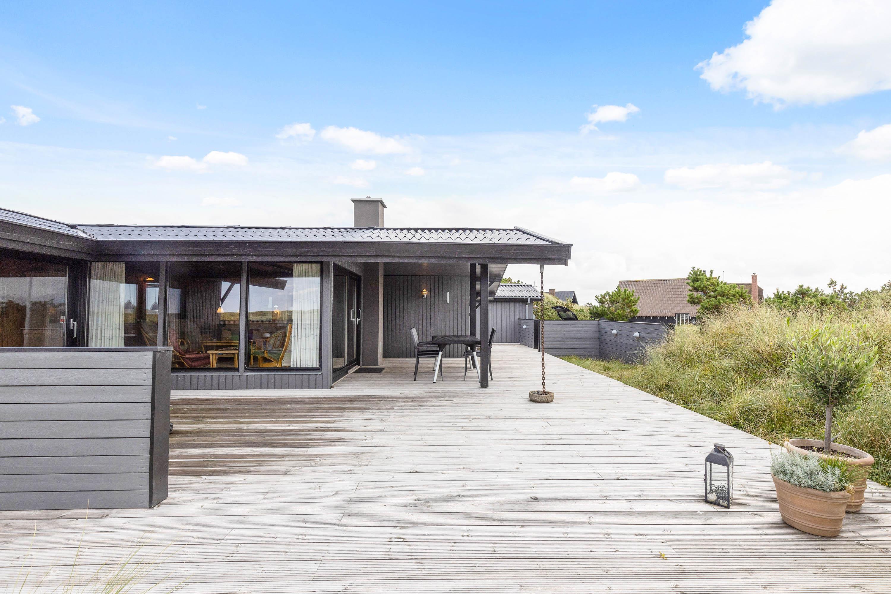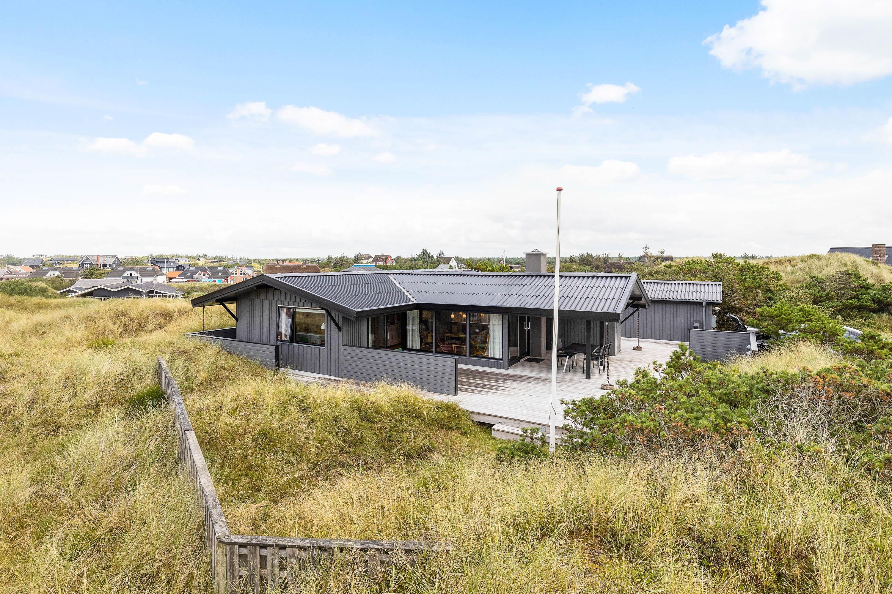 På en klittop i Vejers Strand ligger dette hyggelige sommerhus med plads til 6 personer. Er I vilde med den vestjyske natur, så er Ternevej 16 den helt rigtige ferieadresse til jer. Her får I en naturskøn beliggenhed midt i det lyngklædte klitlandskab, en fantastisk udsigt og kun 350 meter til Vesterhavet. Hunden er også hjerteligt velkommen her!
