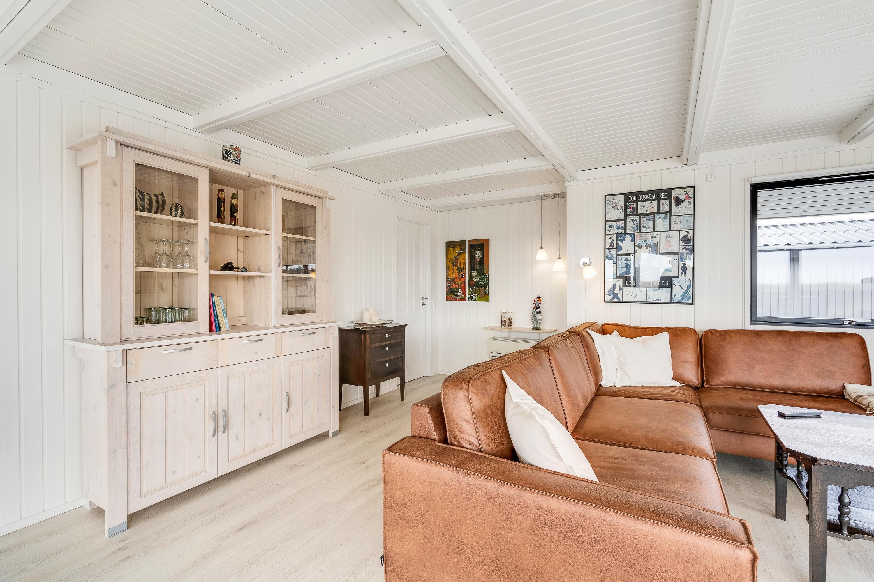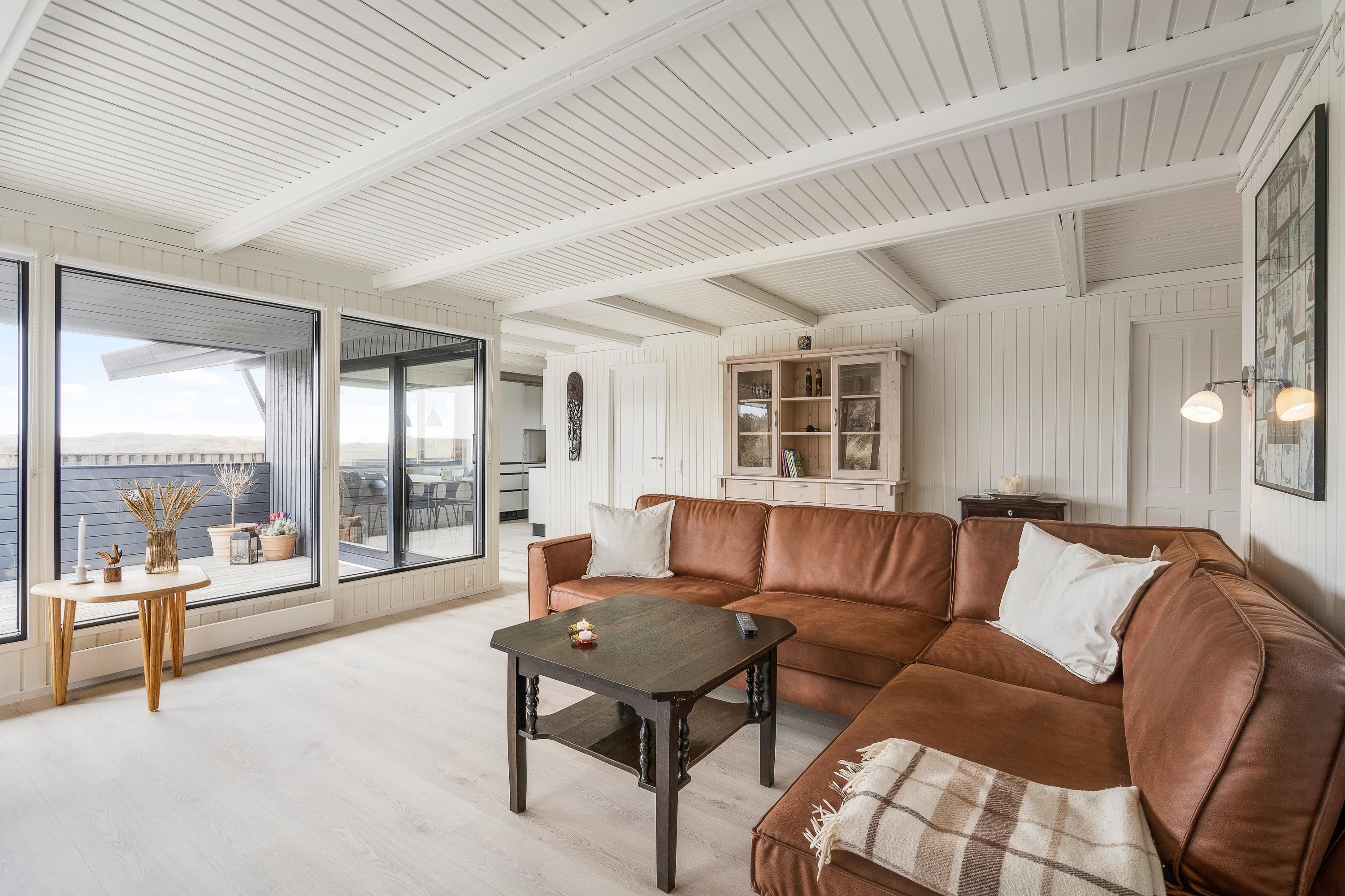 Sommerhuset har plads til 6 personer (og 1 hund) og er indrettet i klassisk, charmerende sommerhusstil med varme træfarver og synlige loftsbjælker. Terrassen har både en overdækket og en åben del, og herfra kan I rigtig nyde den friske luft og den fine udsigt.