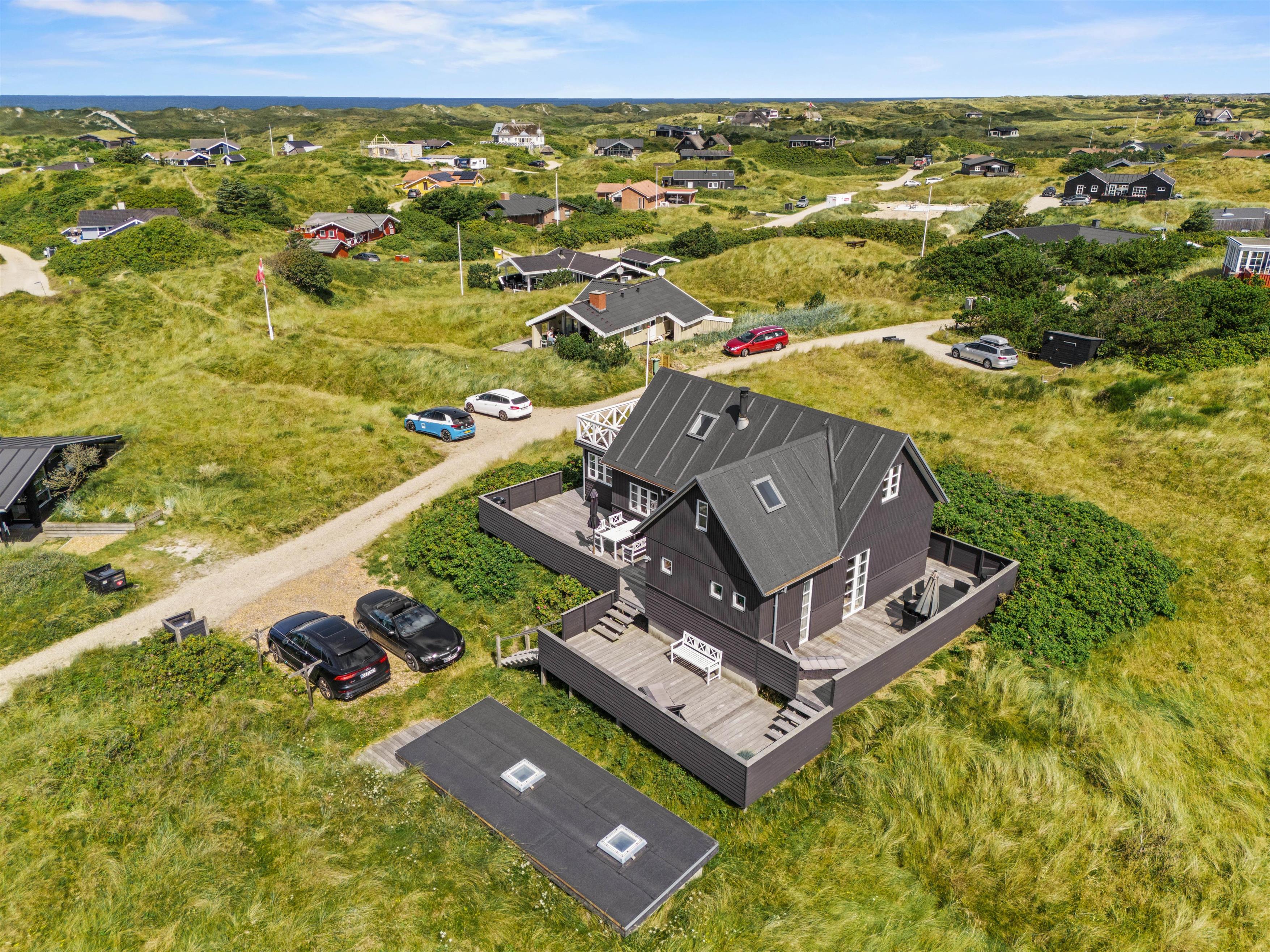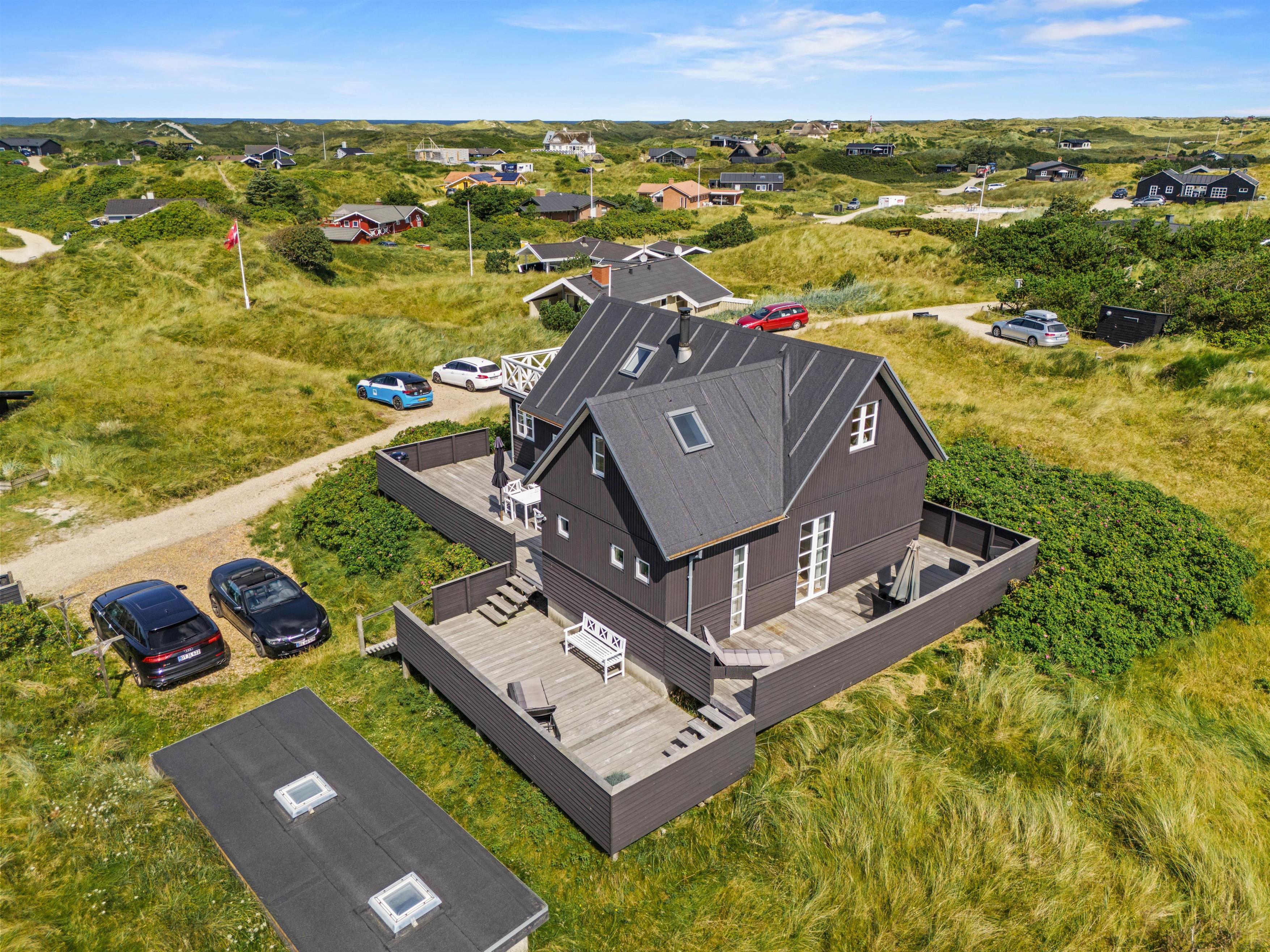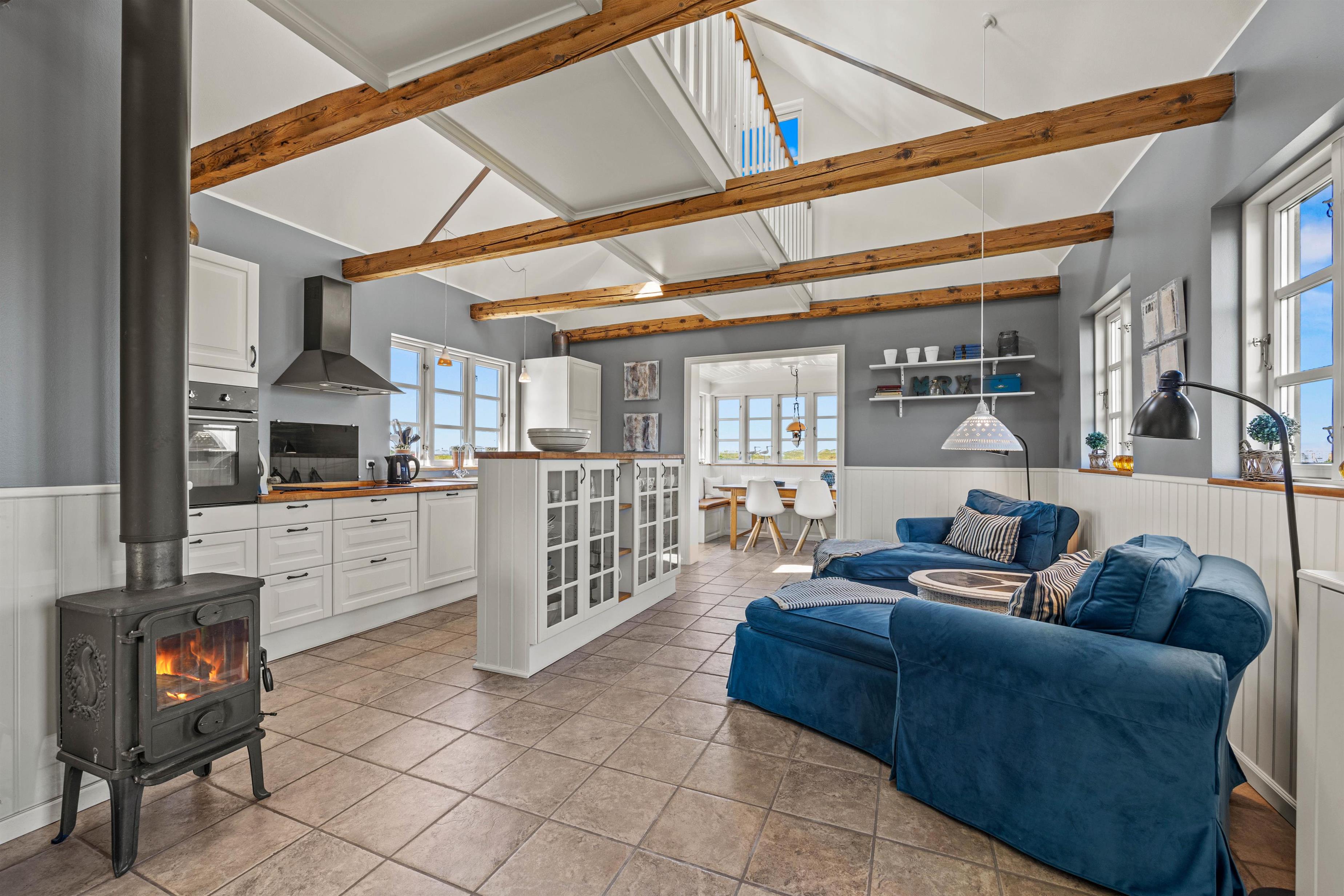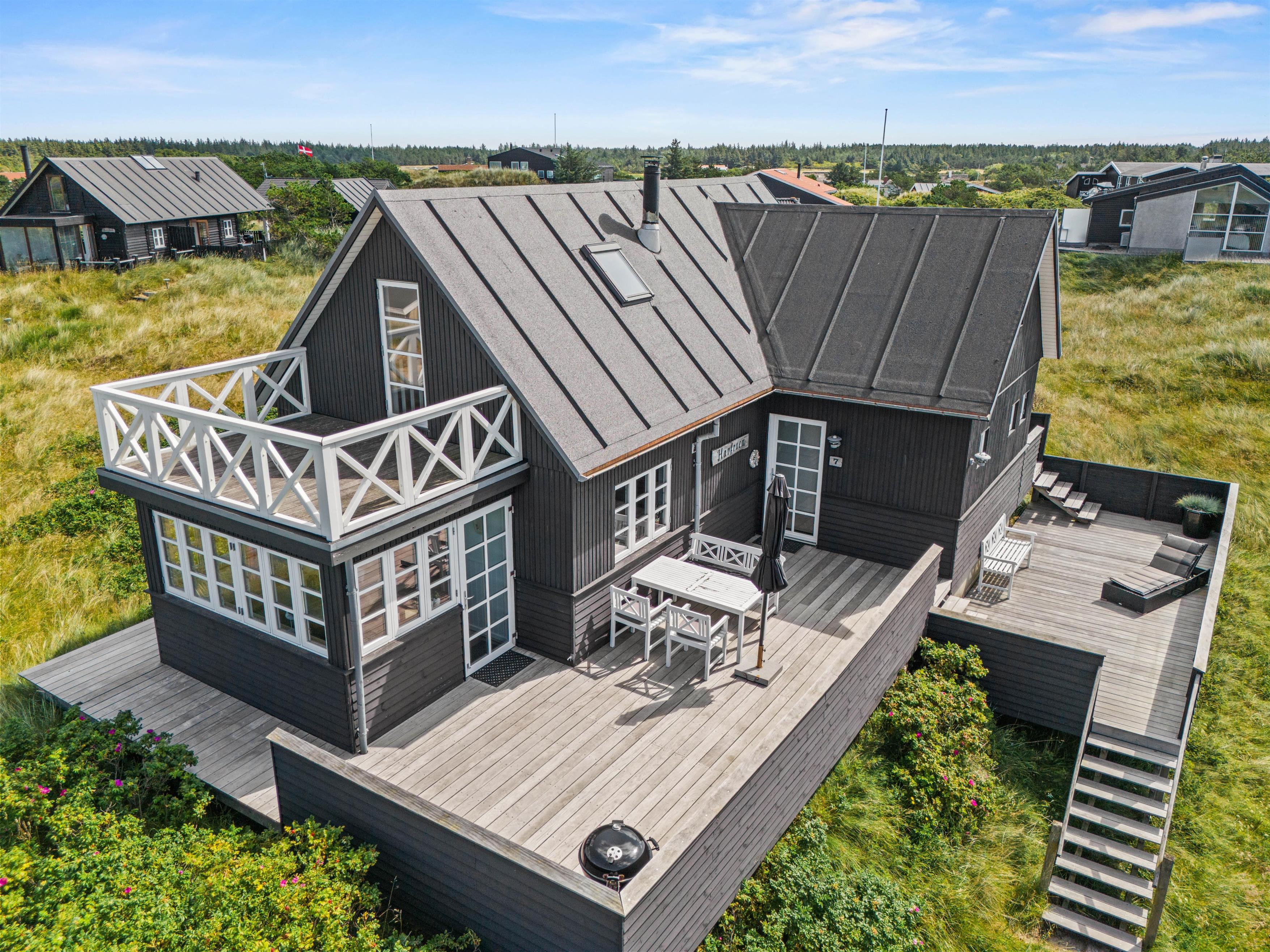 Det 80 kvadmeter store sommerhus i Vejers byder på en charmerende beliggenhed på en klitgrund. Parkér bilen og følg trapperne op til huset. Her bliver I budt velkommen indenfor i et hyggeligt og smagfuldt indrettet sommerhus. Her er smukke frie spær, afstemte farvenuancer og ikke mindst den smukke udsigt udover klitterne, som blandt andet kan nydes under aftensmaden.