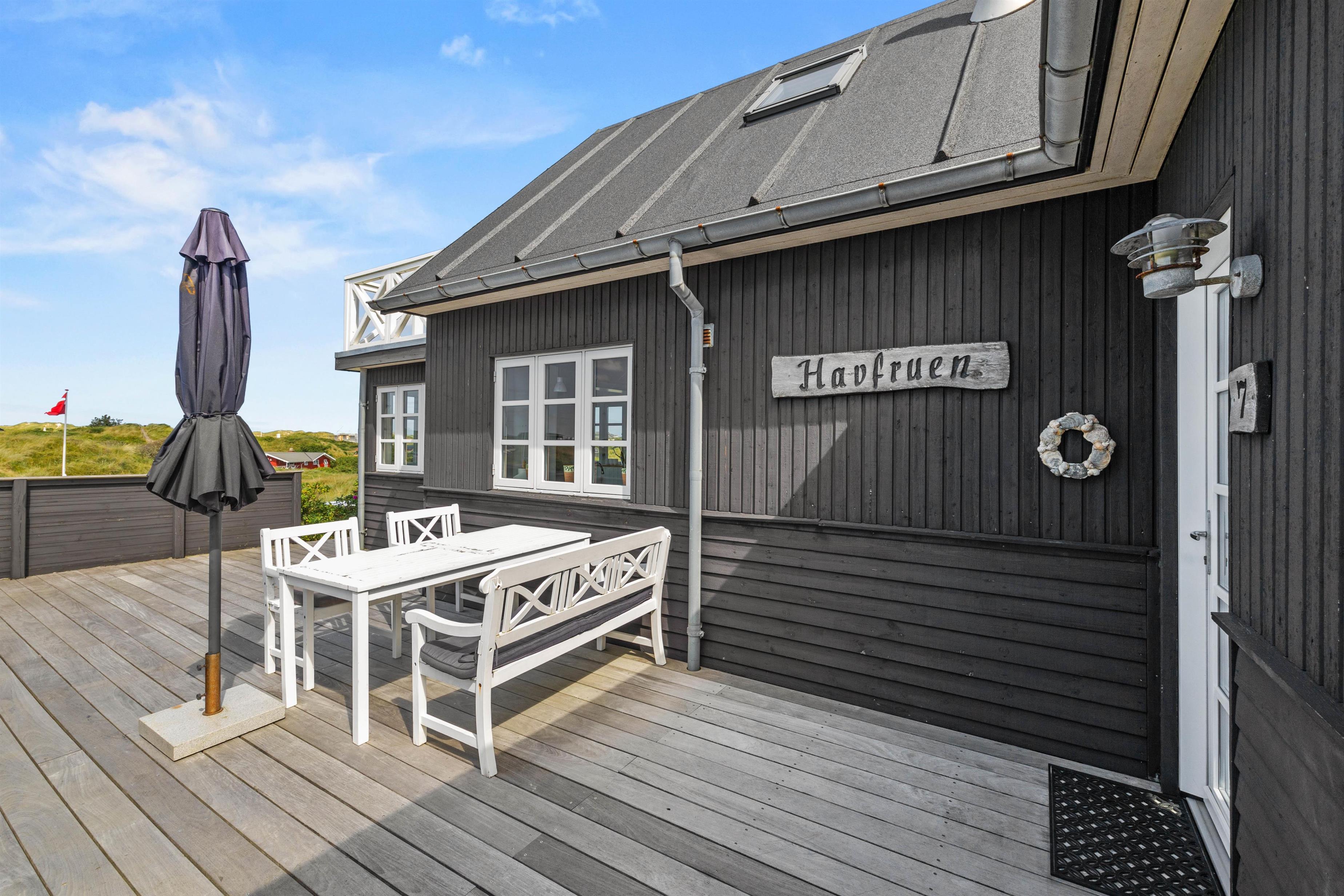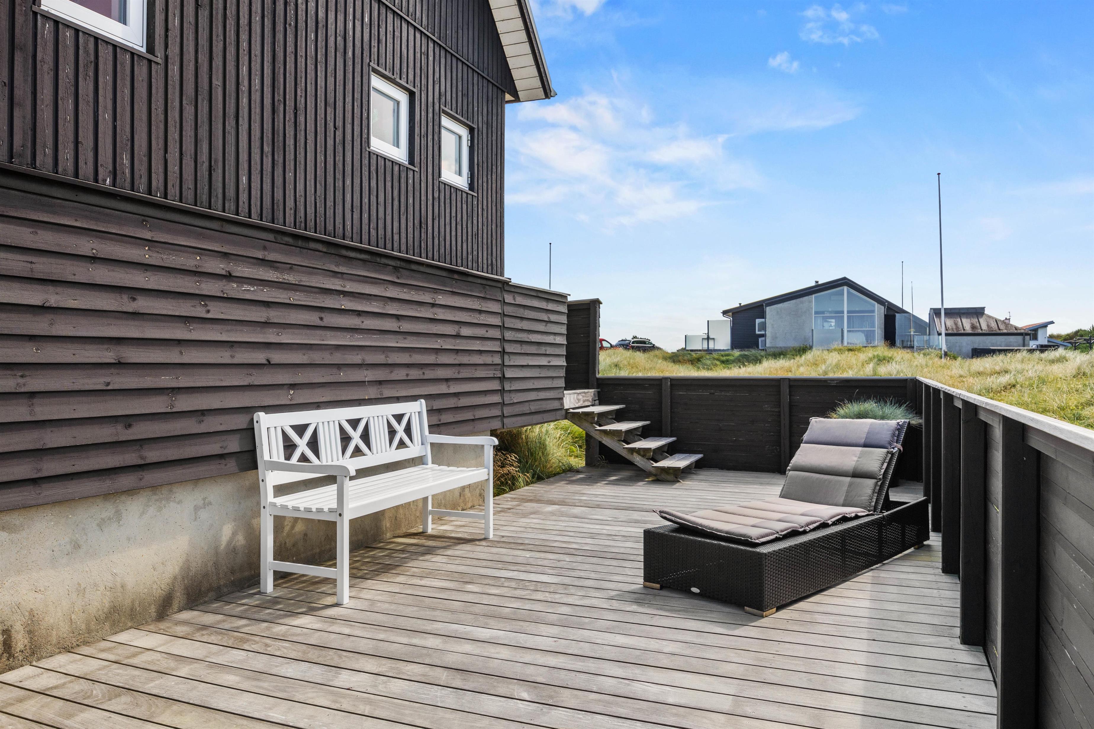 Ryk ferien udenfor og nyd den danske sommer! Rundt om sommerhuset er der anlagt træterrasse i forskudte niveauer. Her venter havemøbler og liggestolene på jer! Her kan I nyde en dejlig frokost i solen, solbade og nyde den friske Vesterhavsluft. Til aften kan I alle 4 samles til en hyggelig grillaften på terrassen, inden solens smukke farvespil begynder.