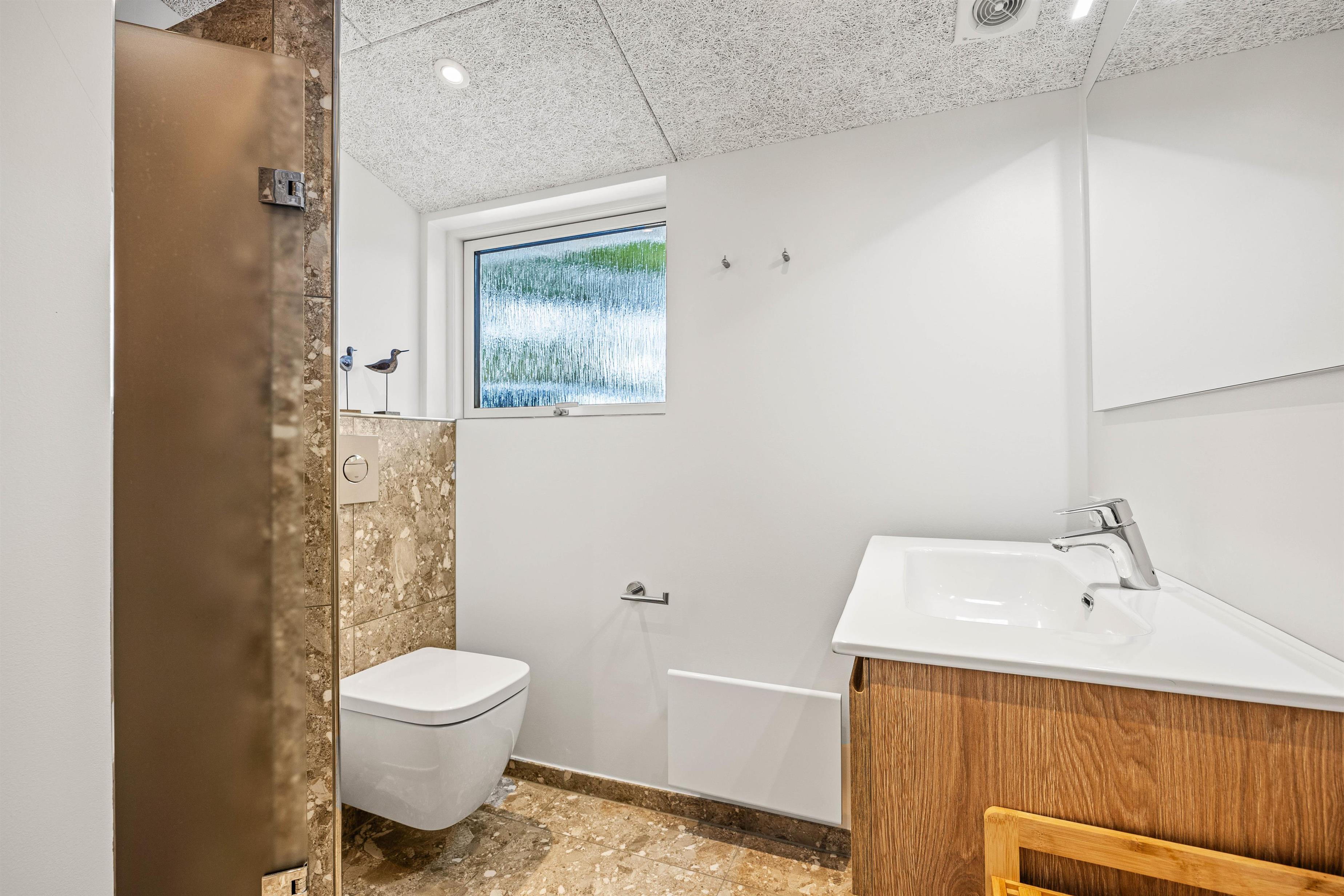 Badeværelset med gulvvarme er lyst og venligt indrettet, så I ikke kommer til at fryse fødderne, når I skal børste tænder om morgenen. En gratis internetforbindelse står til rådighed, så I kan streame film og serier på jeres medbragte elektronik - eller tjekke de næste par dages vejrudsigt, når feriens udflugter skal planlægges.