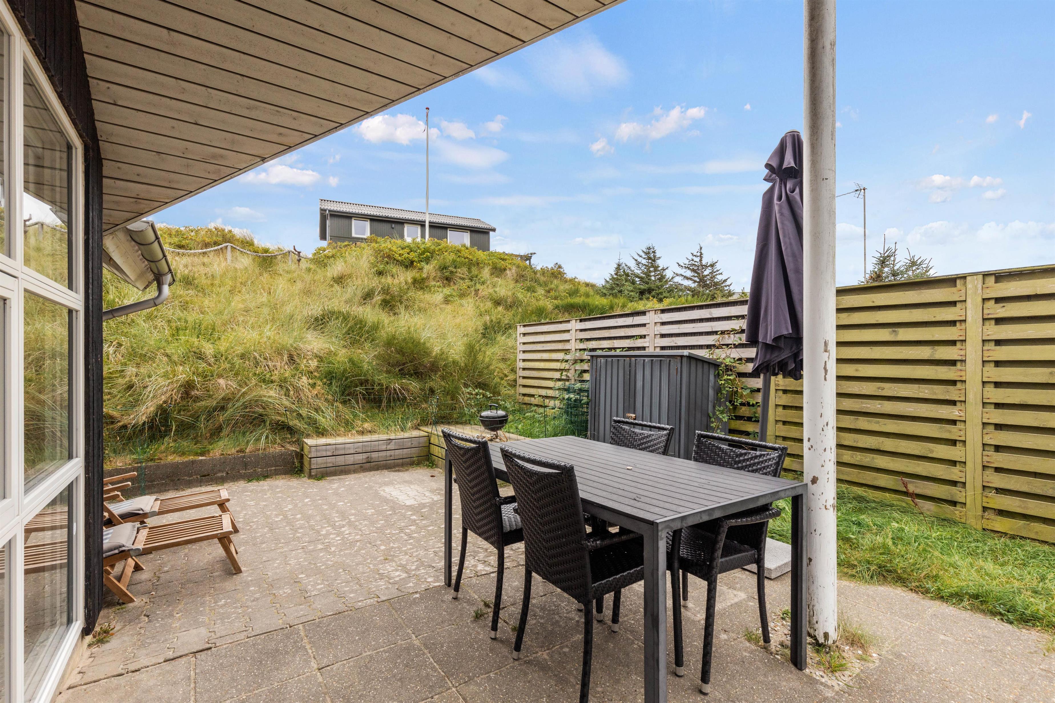 I kommer til at bo kun 450 meter fra stranden, og få minutters gang gennem klitlandskabet bringer jer til den nærmeste strandopgang. Den endeløse sandstrand indbyder til forfriskende gåture langs vandet, og lyden af de brusende bølger og duften af den salte havluft er ren terapi.