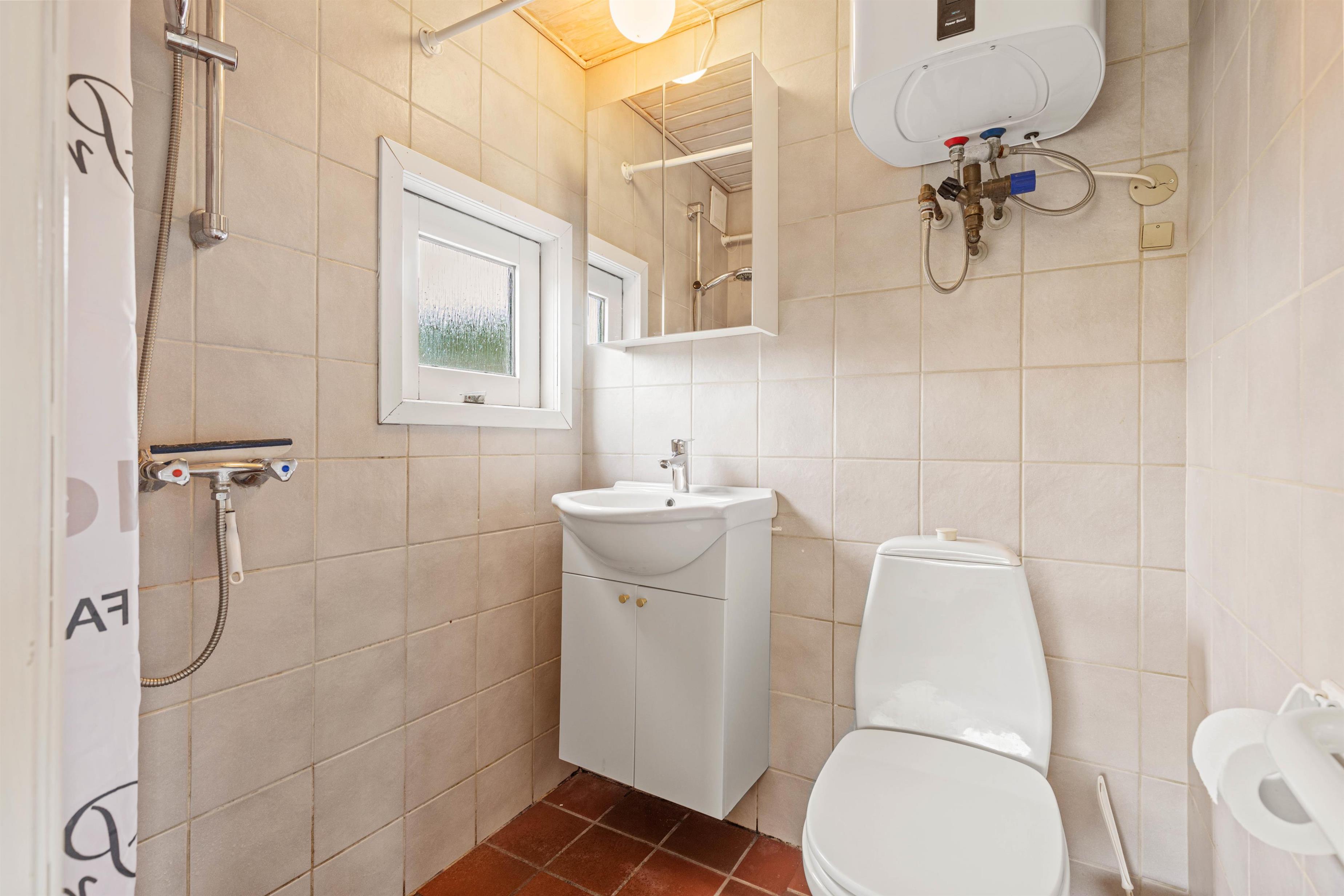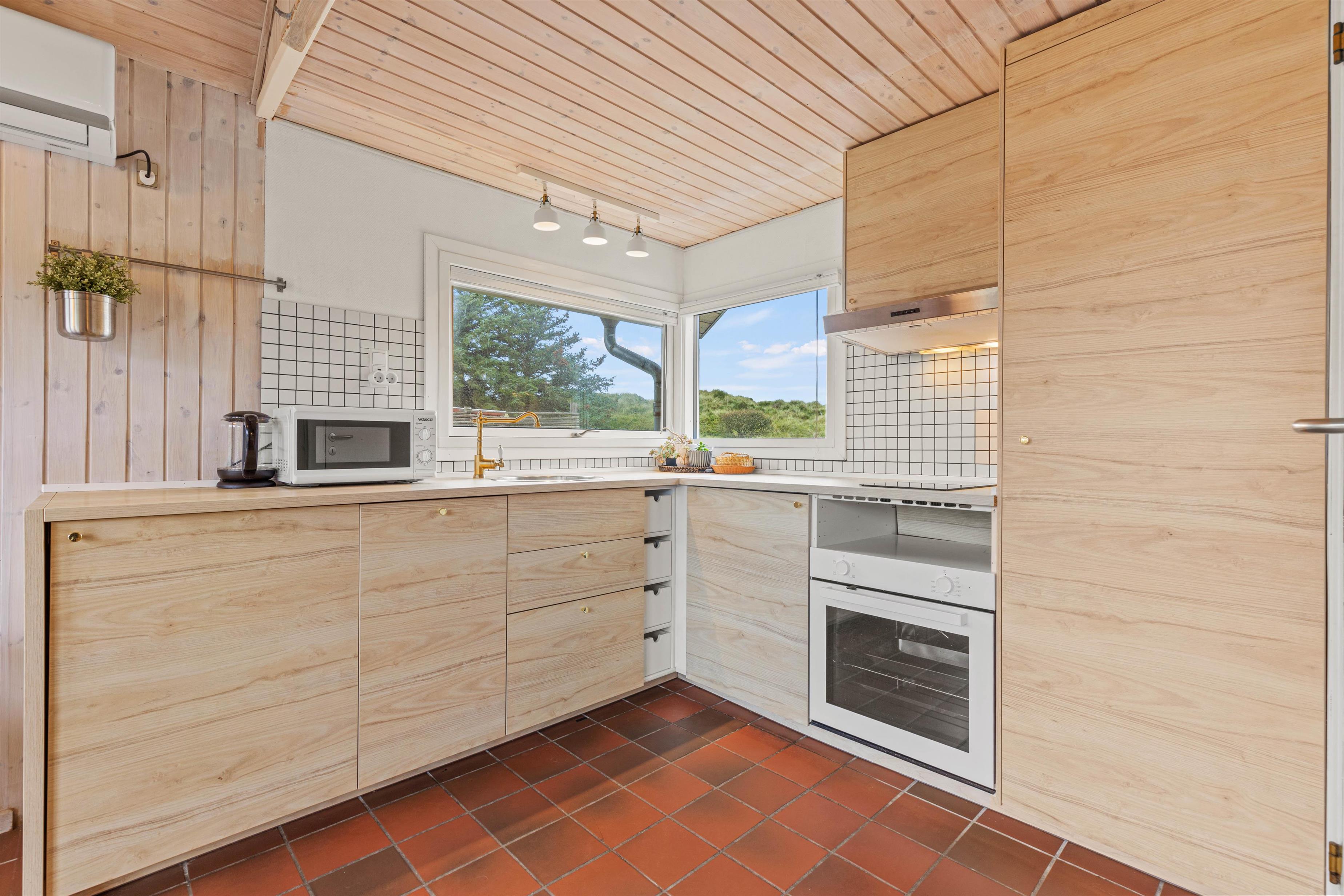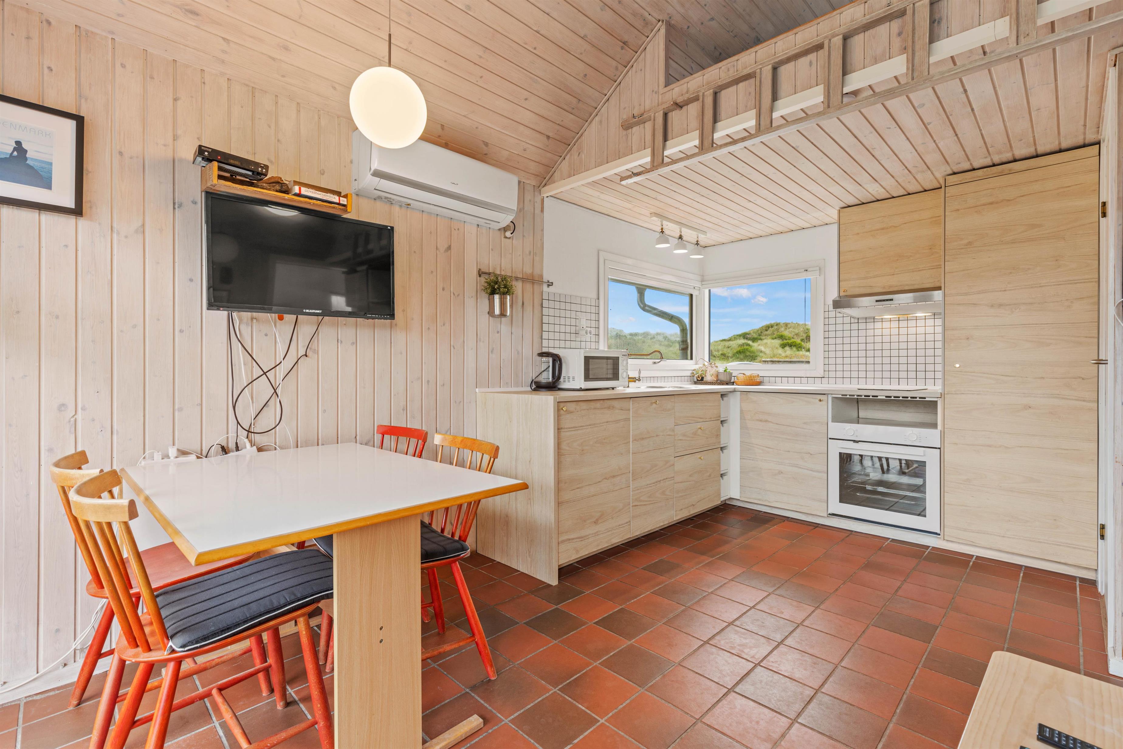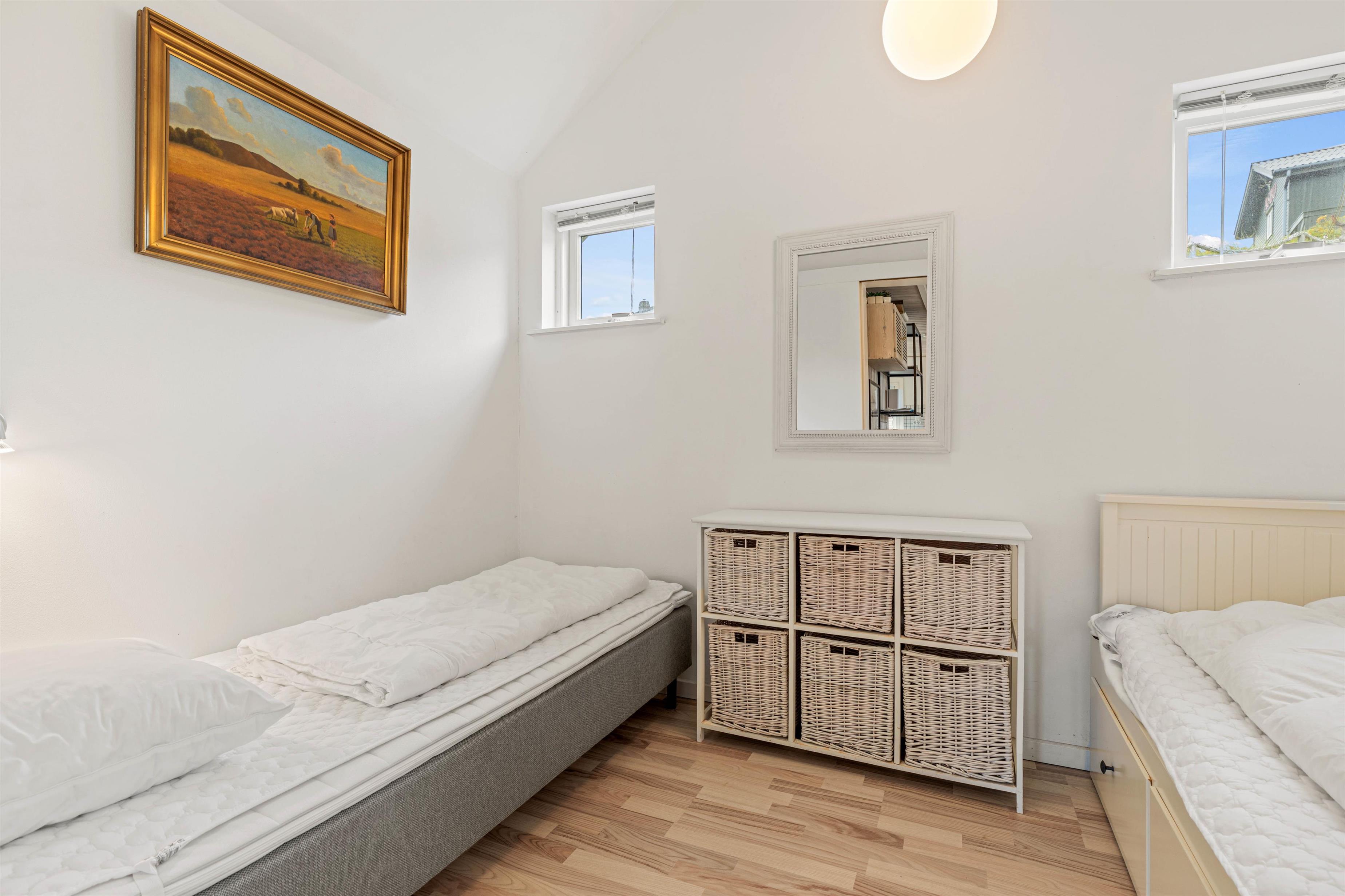 Køkkenet er udstyret med opvaskemaskine, så det ikke tager mange minutter at klare oprydningen efter maden, og I i stedet kan smide benene opad i sofaen. På badeværelset er der gulvvarme, så I ikke fryser fødderne, når der skal børstes tænder om morgenen. I soveværelset er der 2 enkelte senge. Boende lige ved havet, bliver der sikkert badet ofte.