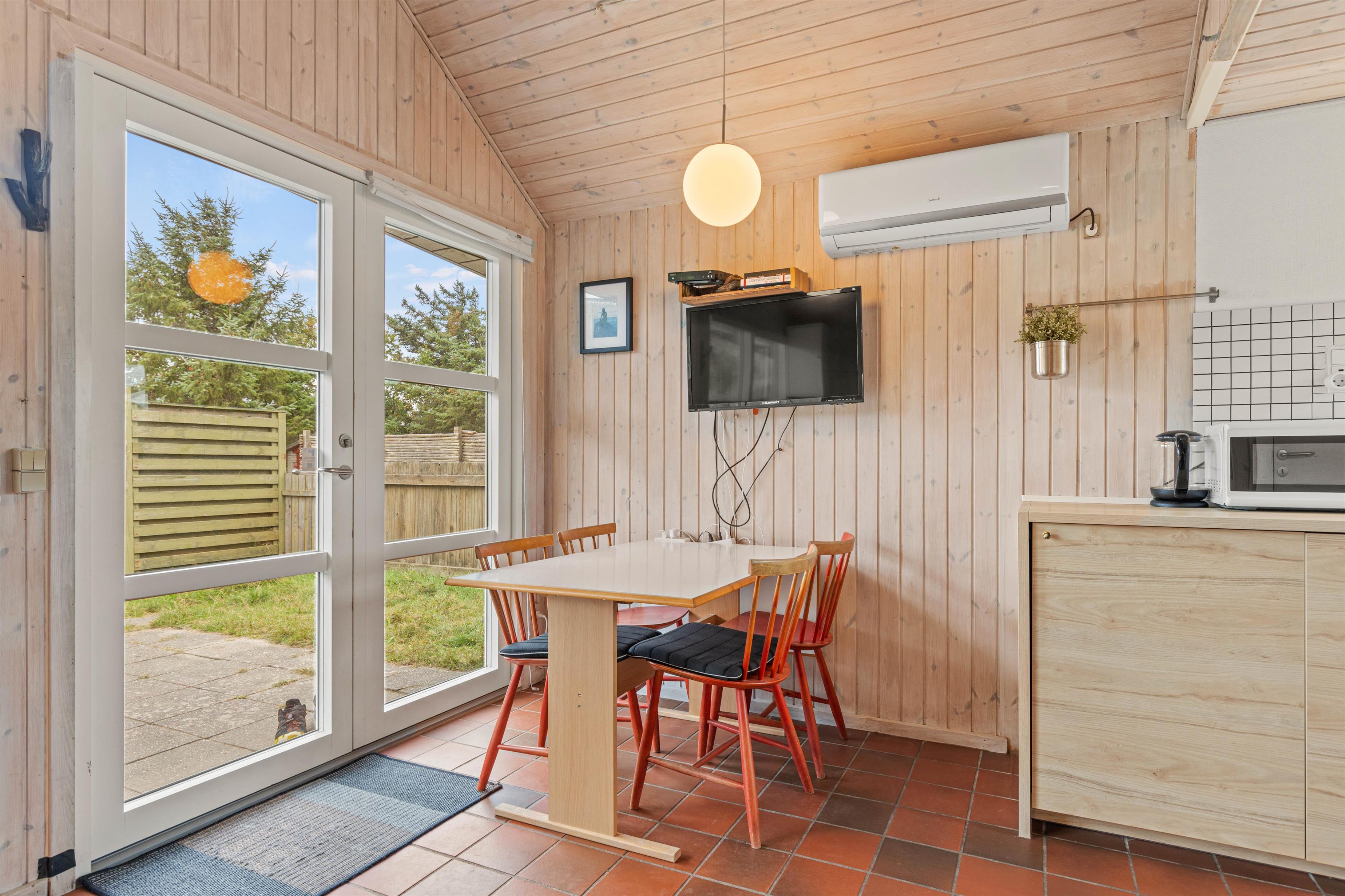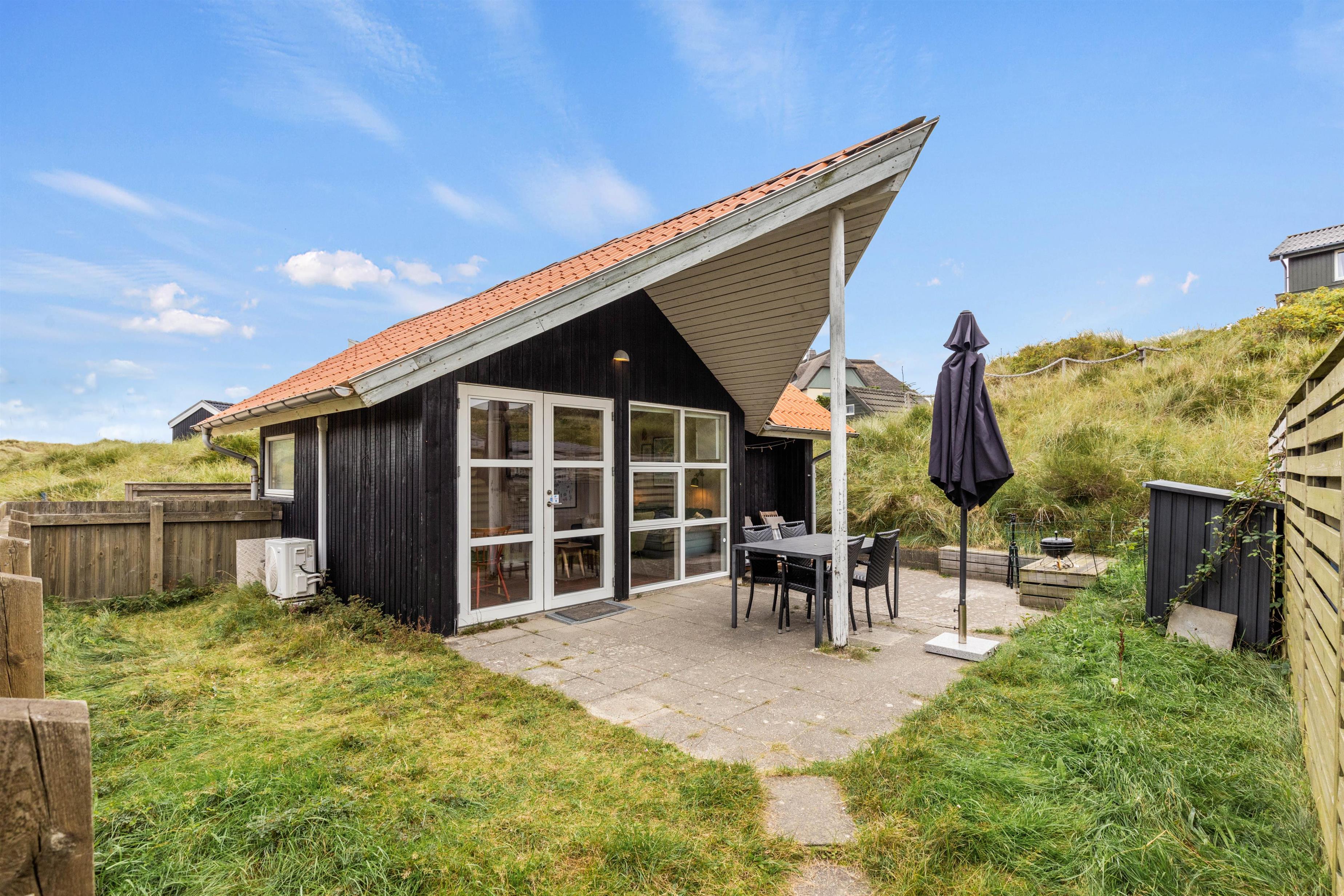 Det lille sommerhus på 30m2 har plads til 2 personer, ved forespørgsel også egnet til 2 voksne og 2 større børn, da to af sengepladserne findes på hemsen. Det er ideelt, hvis I drømmer om en helt klassisk og enkel ferie på Vestkysten. Her kan I også tage familiens firbenede medlemmer med, da op til 2 husdyr er tilladt i huset.