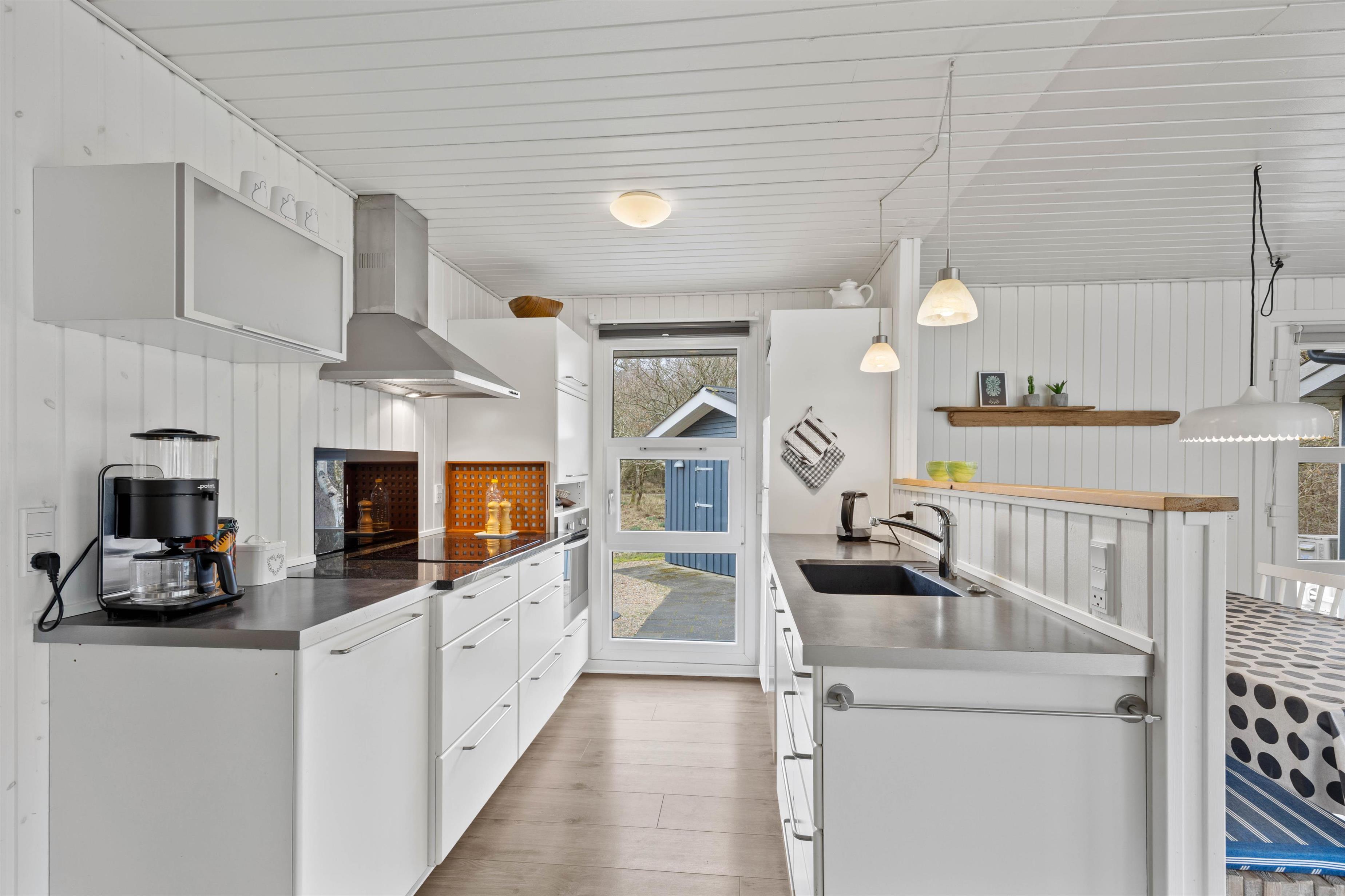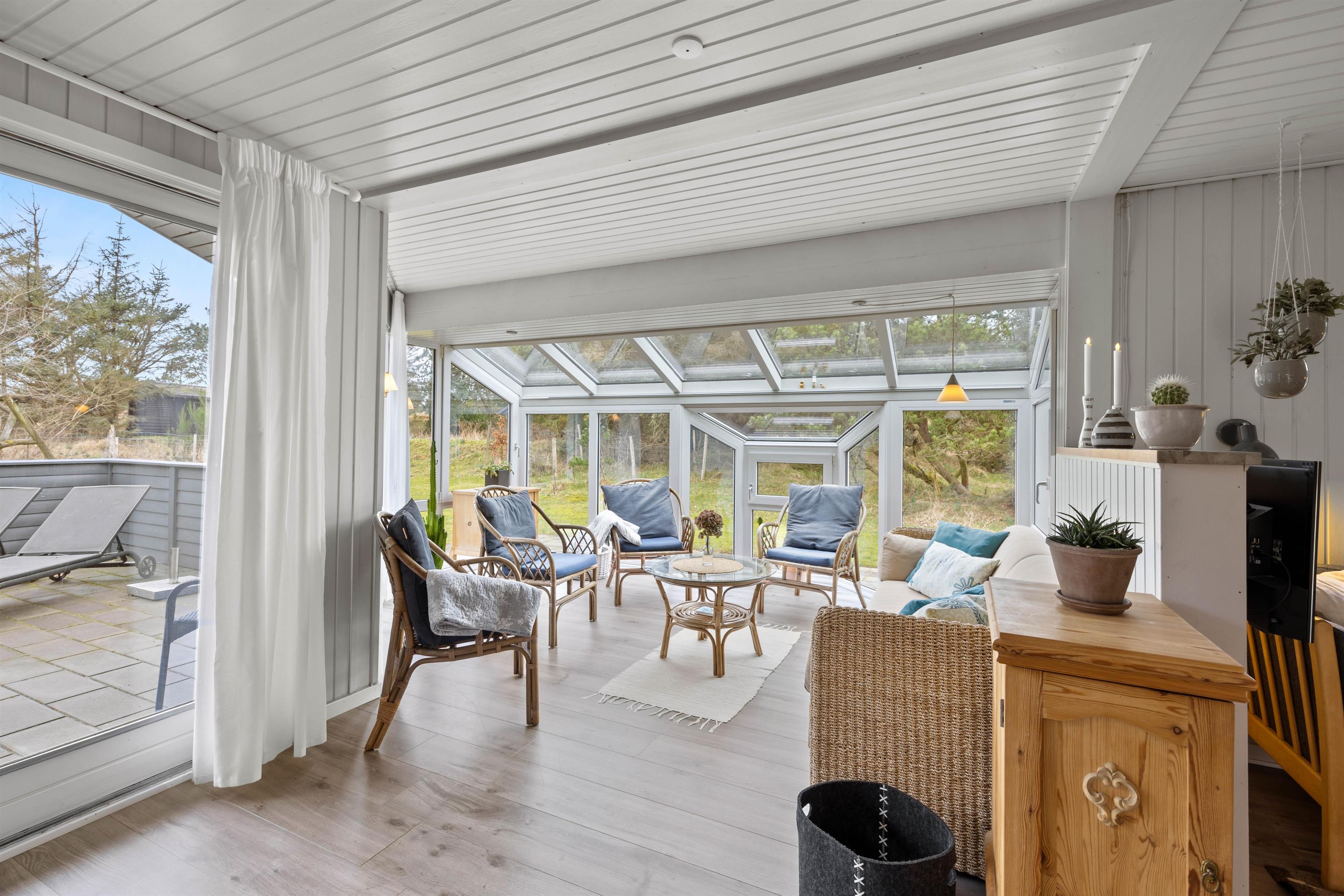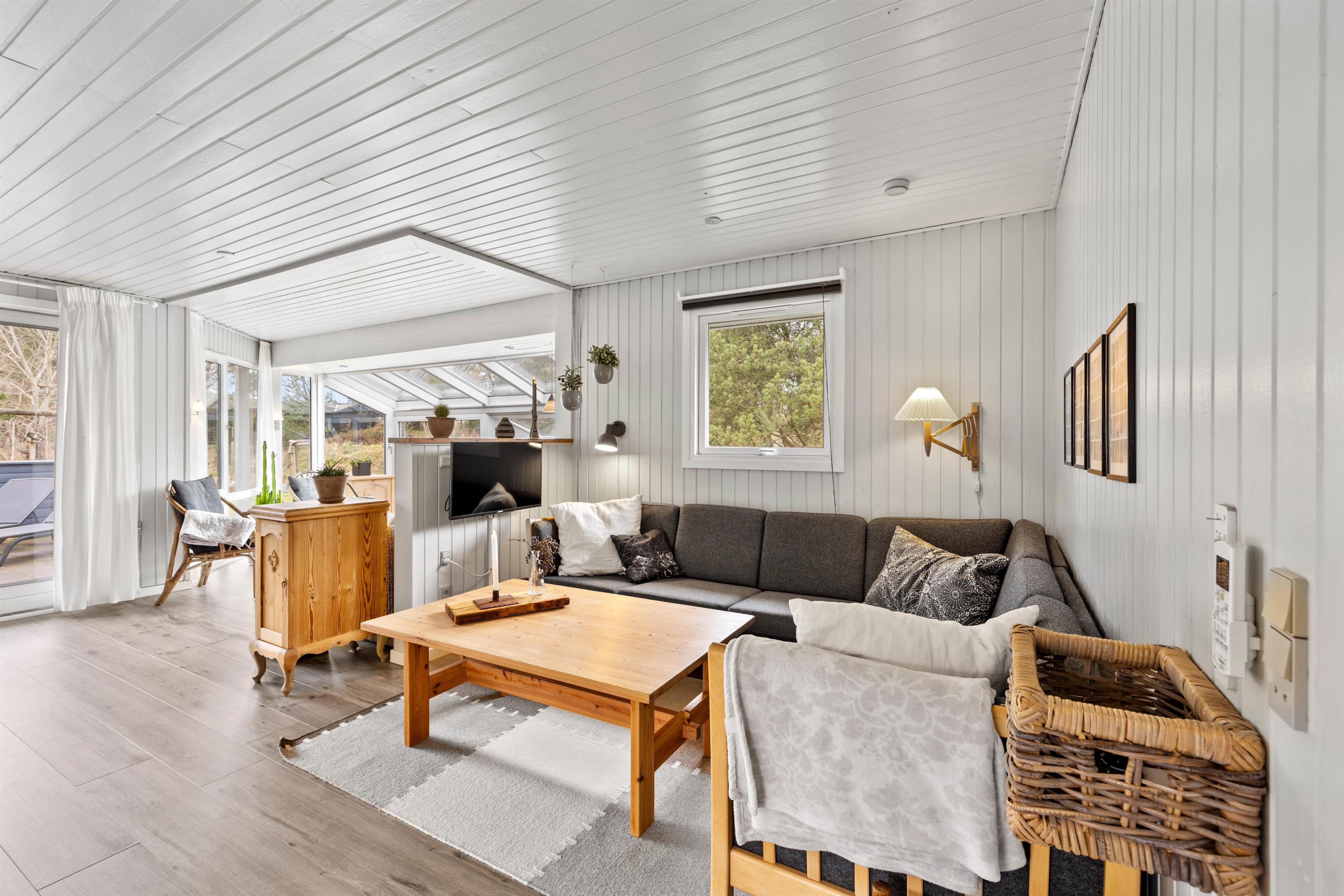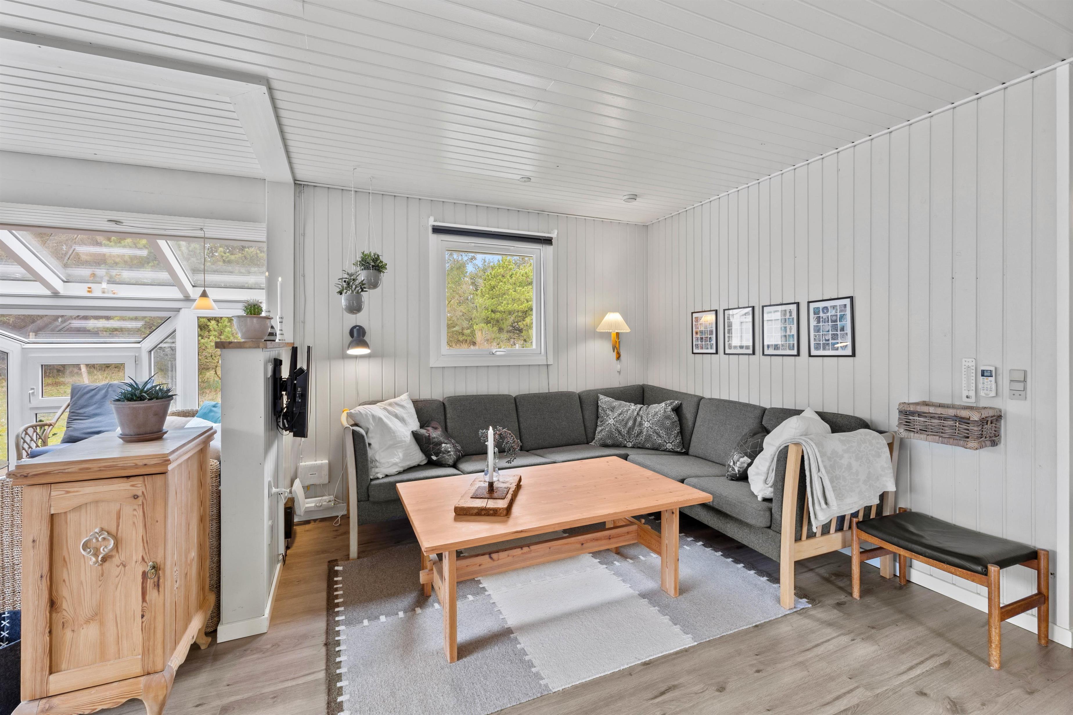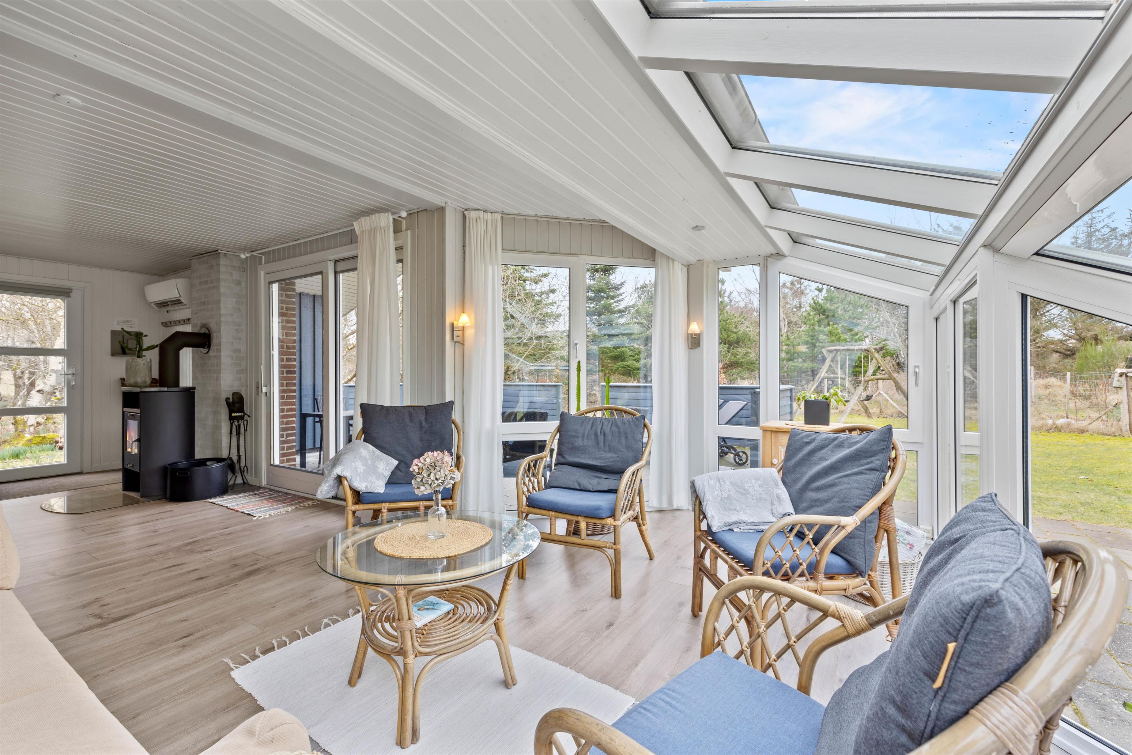 Med kun en frisk gåtur til stranden er dette sommerhus ideelt til en familie eller venner, som holder ferie sammen. Man føler sig straks hjemme i den lyse og venlige indretning, og her er alle fornødenheder, som en moderne familie har brug for. Udestuen forlænger naturoplevelsen, da I her kan slappe af og nyde landskabet i al slags vejr. Brændeovnen i stuen sætter prikken over i’et på feriestemningen.
