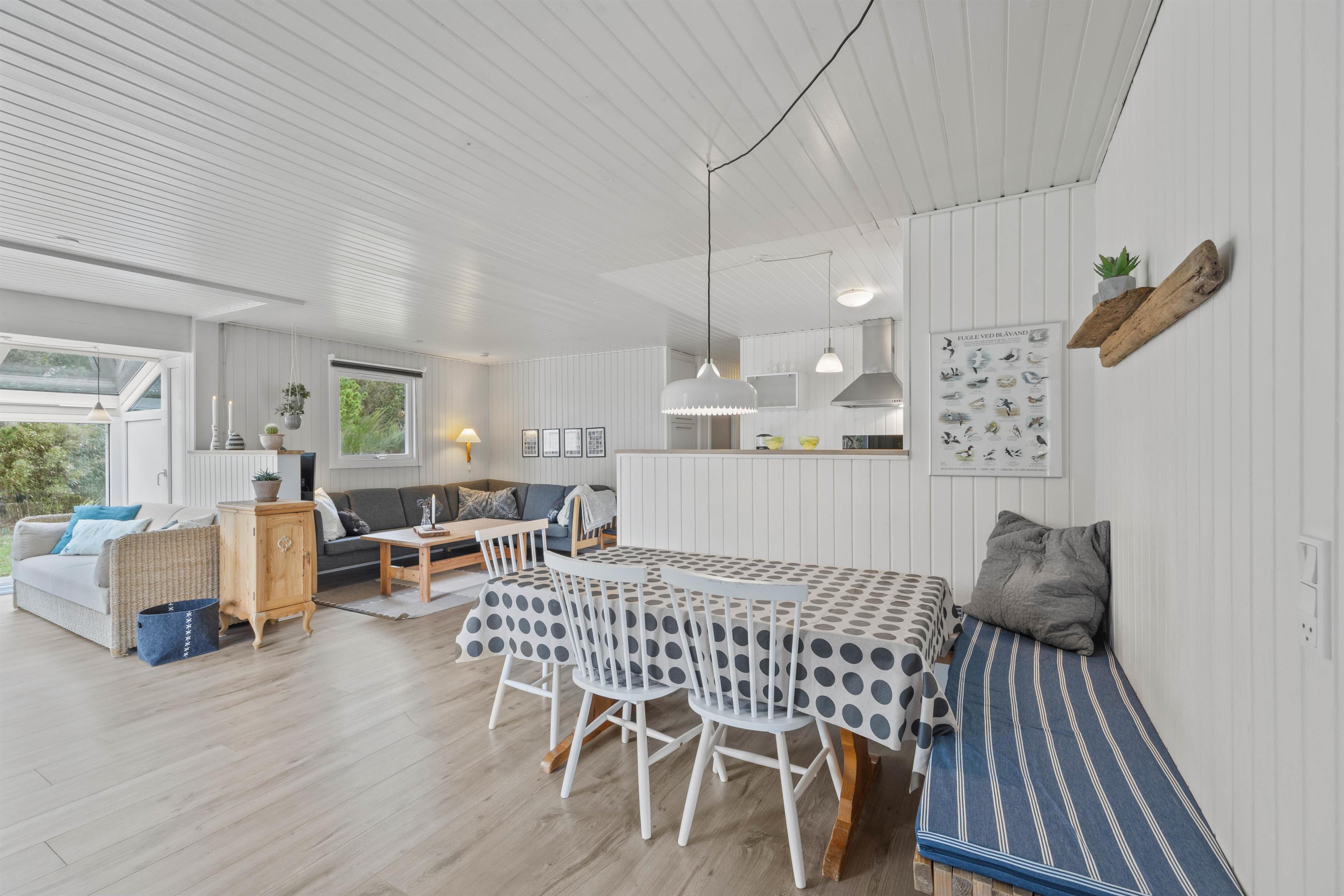 Der er gulvvarme i badeværelset, og de 3 soveværelser er udstyret med komfortable senge, så I kan blive rigtig godt udhvilet i den friske vesterhavsluft. Der er opvaskemaskine og energibesparende varmepumpe i sommerhuset.