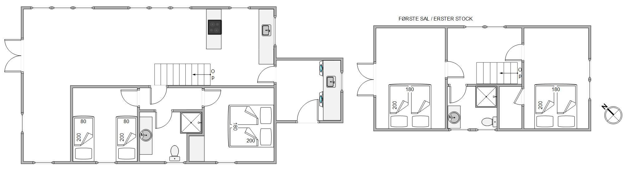 I sommerhusets stueetage finder I desuden 2 af soveværelserne, mens de resterende 2 soveværelser befinder sig på førstesalen. Fra det ene af soveværelserne på førstesalen kan I bevæge jer ud på en skøn altan, hvor der venter jer en dejlig udsigt.