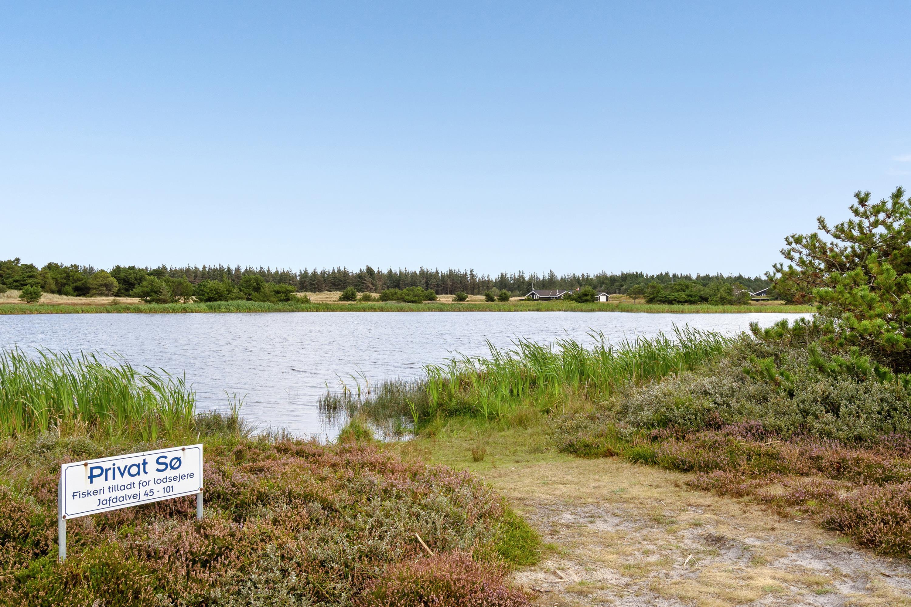 Dette hyggelige feriehus har en fantastisk beliggenhed med vid udsigt over hede- og klitlandskabet ved en privat fiskesø. En varm og hyggelig atmosfære møder jer i træhuset på Jafdalvej 77, hvor der er plads til 6 personer, der elsker udelivet og også nyder en tur i sauna og spabad.