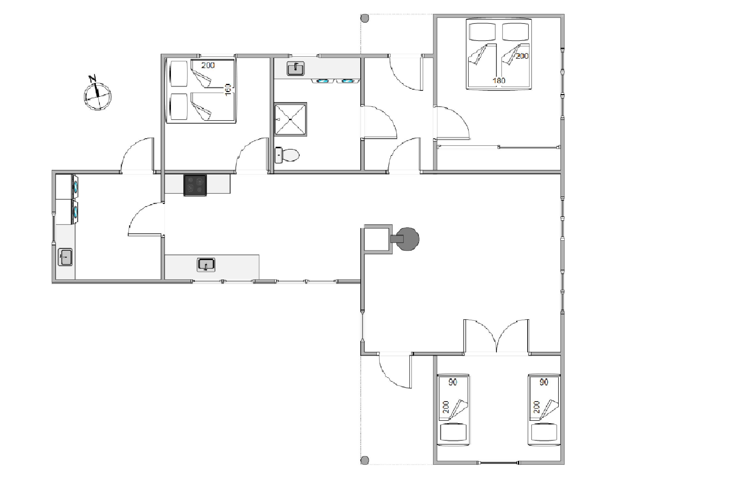 Sommerhuset har tre rummelige soveværelser, så der er mulighed for at børnene kan få hvert sit værelse. De to er indrettet med dobbeltsenge, mens det tredje soveværelse har to enkeltsenge. På det ene værelse finder I skydedørsskabe med god opbevaringsplads. Udover et badeværelse finder I også et dejligt bryggers med vaskemaskine og tørretumbler.