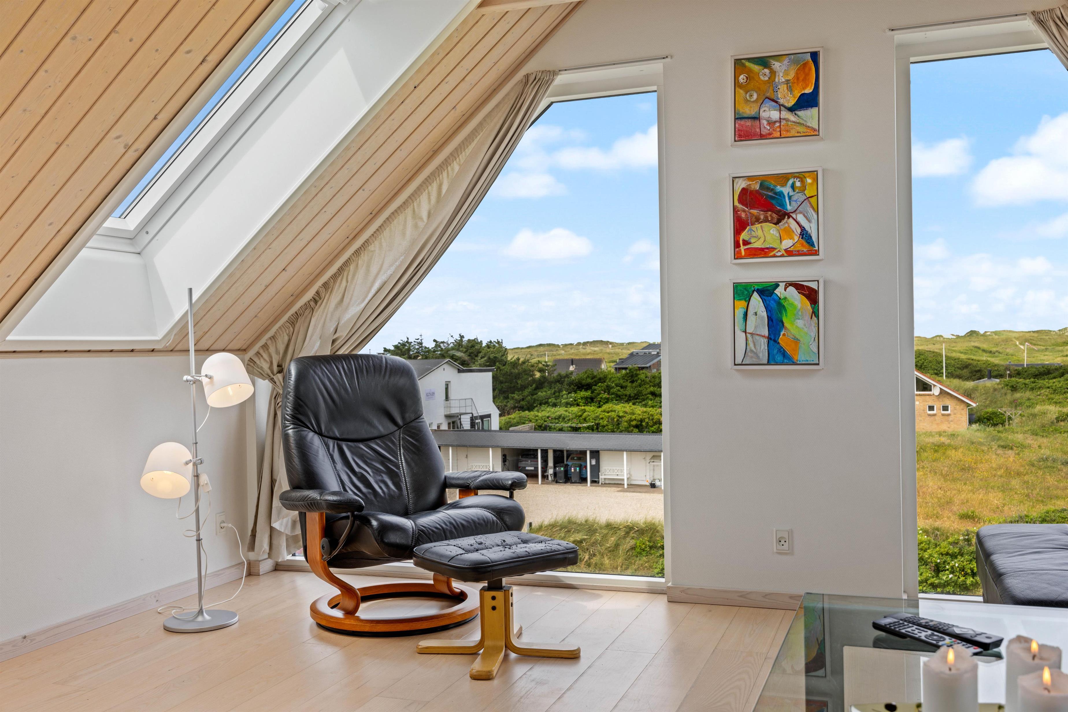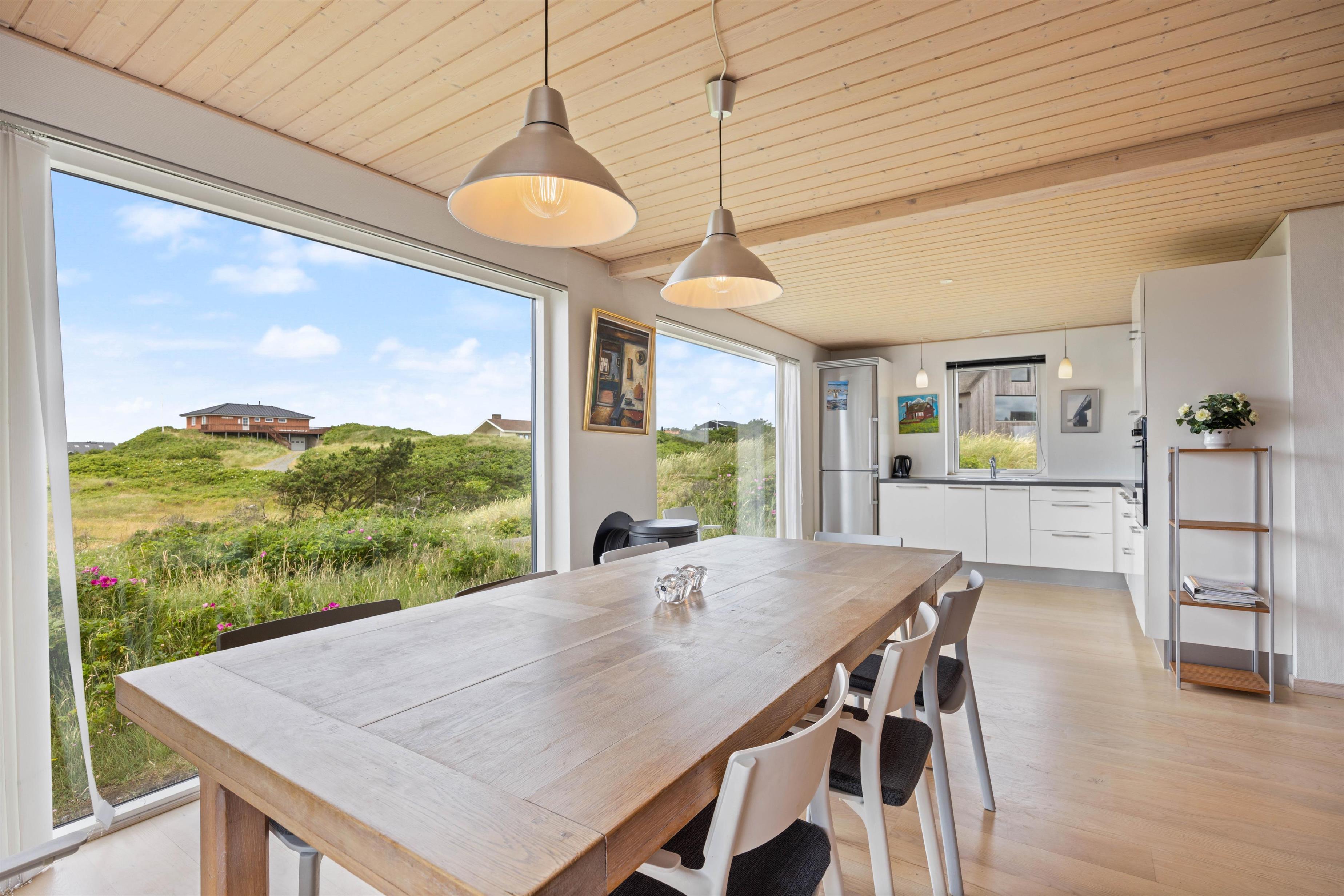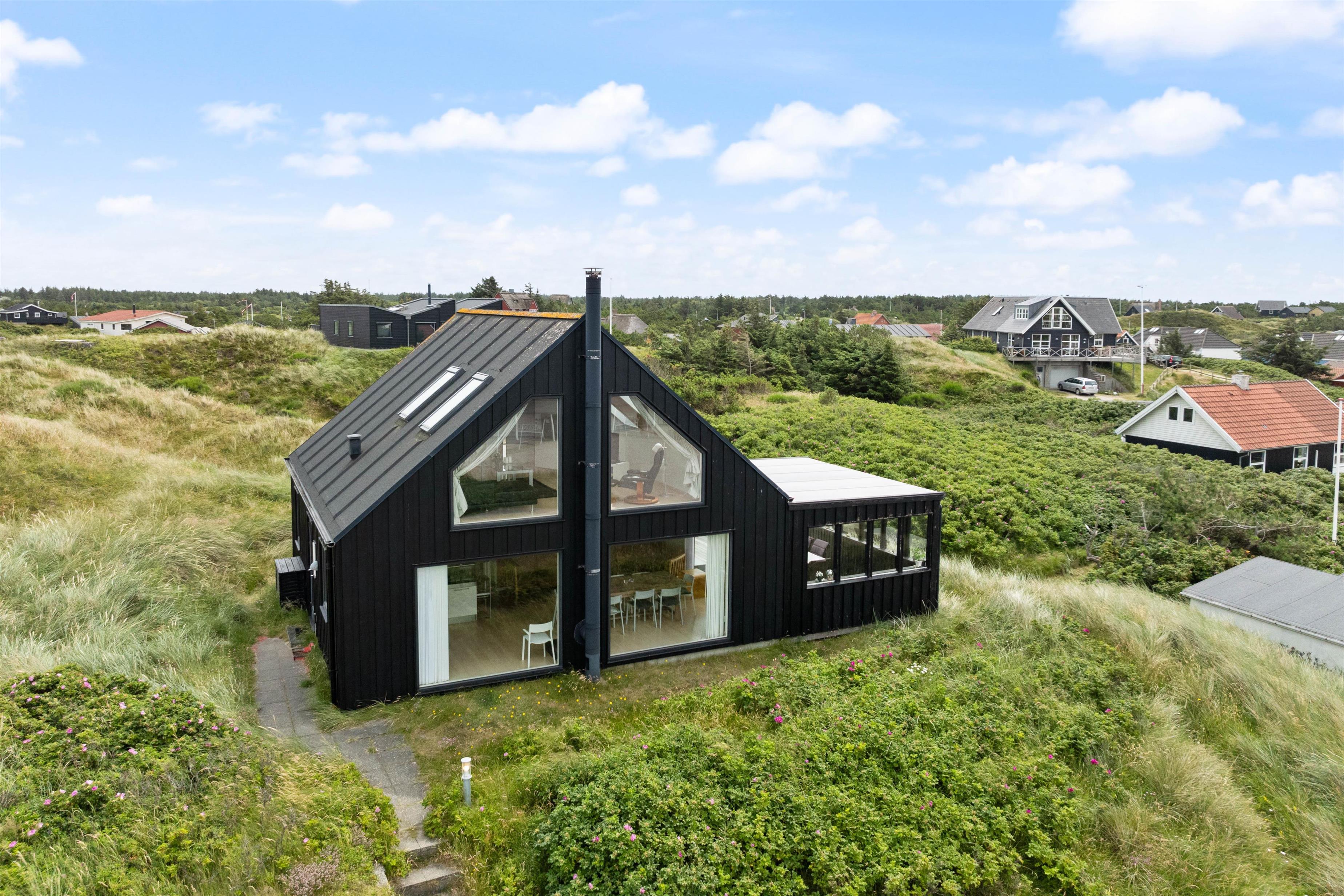 På Nordvej 10 i feriebyen Vejers ligger dette indbydende sommerhus på en smuk naturgrund. Feriehuset er i to plan og har både spa og sauna samt en skøn udsigt over klitterne. Her er plads til 6 personer og kun 150 meter til det brusende Vesterhav.