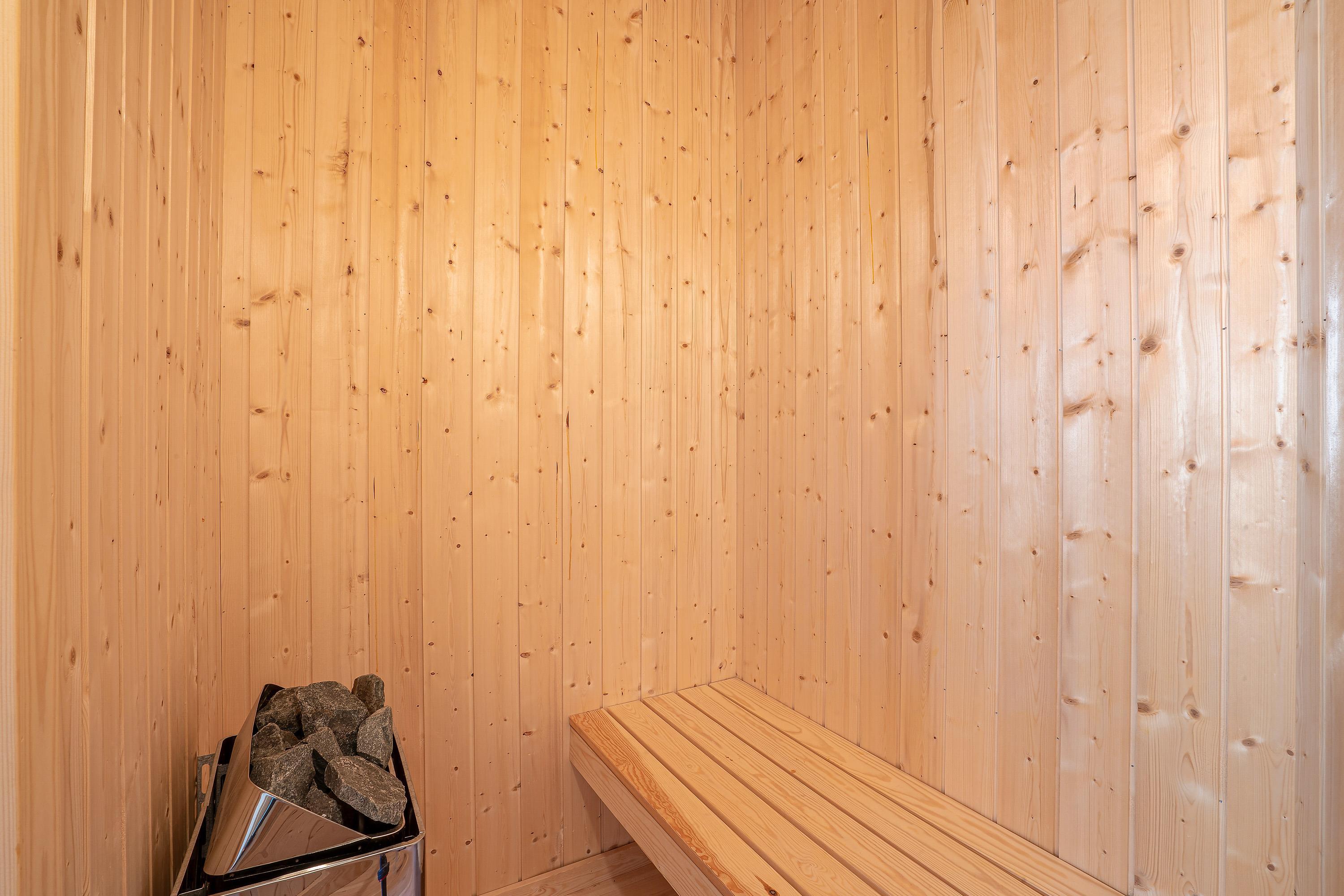 Højdepunktet i sommerhuset finder I på det ene af de 2 badeværelser, der begge er udstyret med gulvvarme. Her er spaen og saunaen klar til at forkæle jer med massevis af afslapning på jeres ferie.