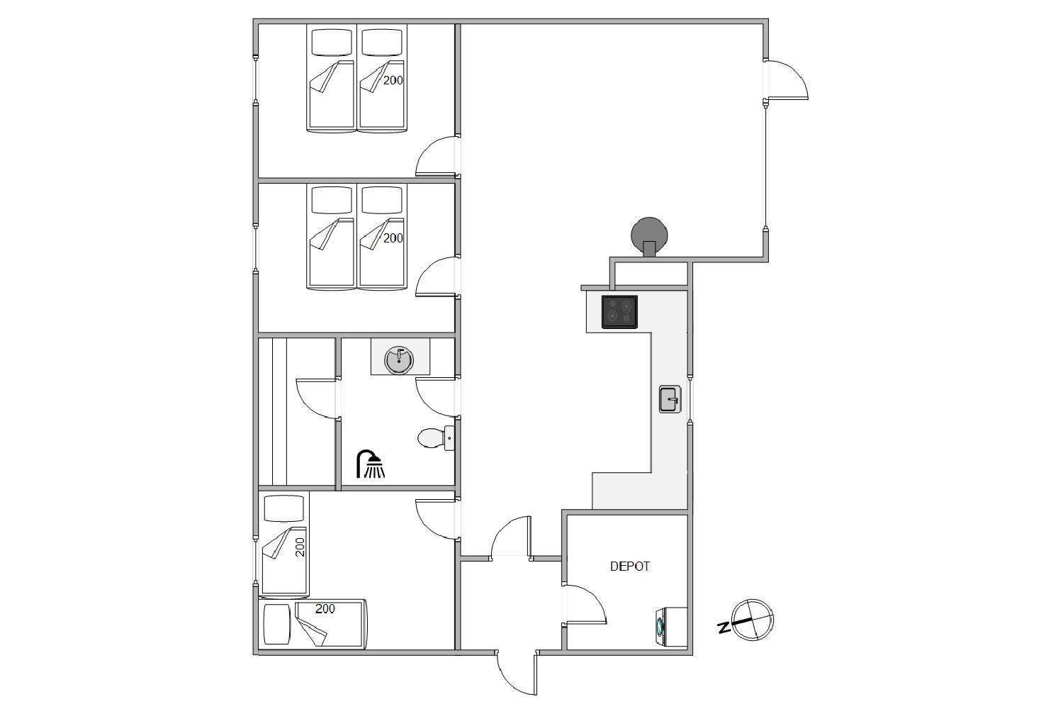 Til hyggelige feriestunder med hele ferieflokken er det alrummet, I skal søge mod. Alrummet forener køkken, stue og spiseplads, og derfor har I mulighed for at samles til alt fra madlavning til spil og film. Alt sammen kan akkompagneres af brændeovnens knitrende flammer, der fuldender feriestemningen.