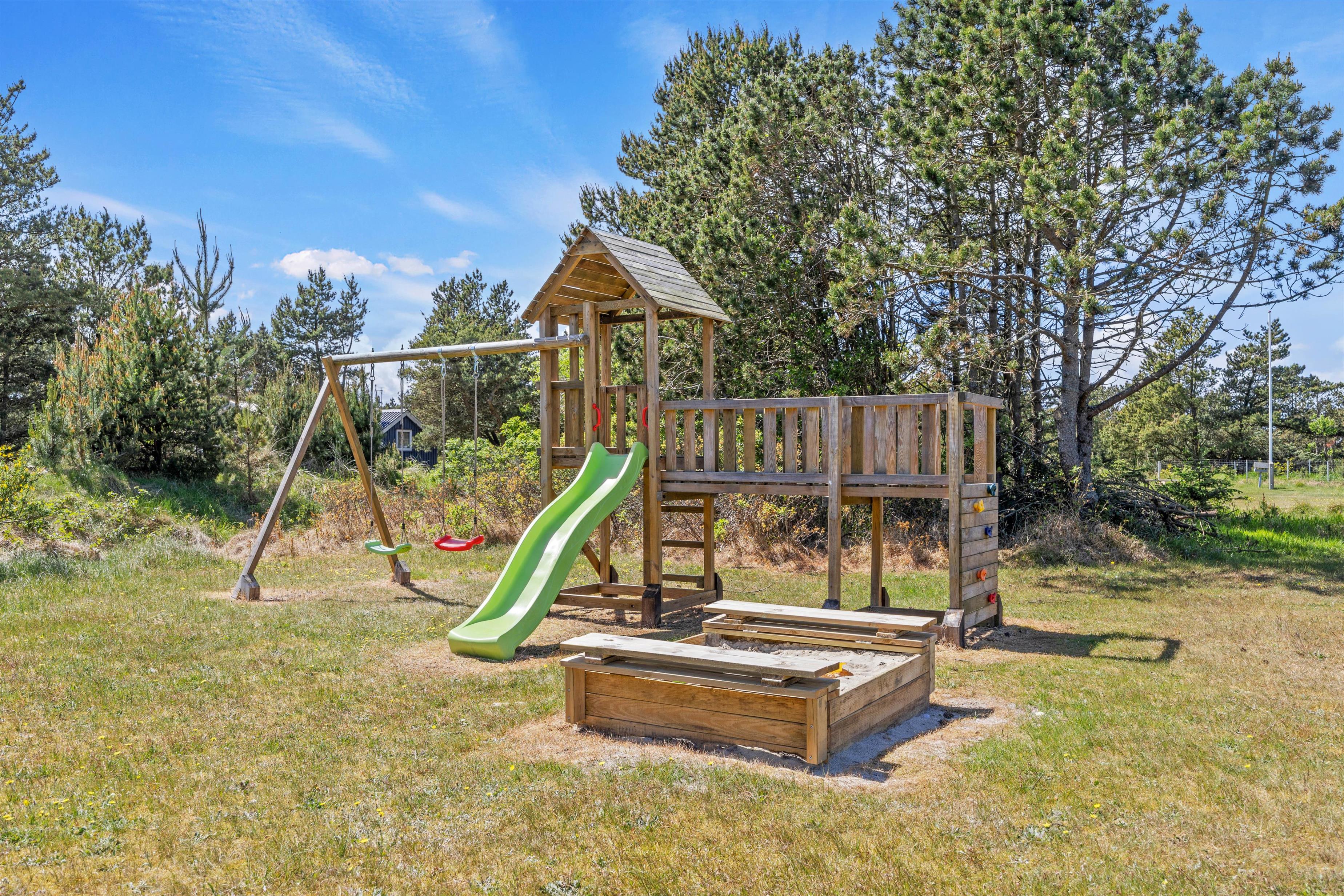 Til børnene er der et legetårn samt en sandkasse i haven, hvor de kan lege og bygge store, flotte sandslotte, mens I slapper af på terrassen. Mens dagens sidste sandslot så småt bliver færdigbygget i sandkassen, kan I gøre klar til aftenens grillmiddag på terrassen.
