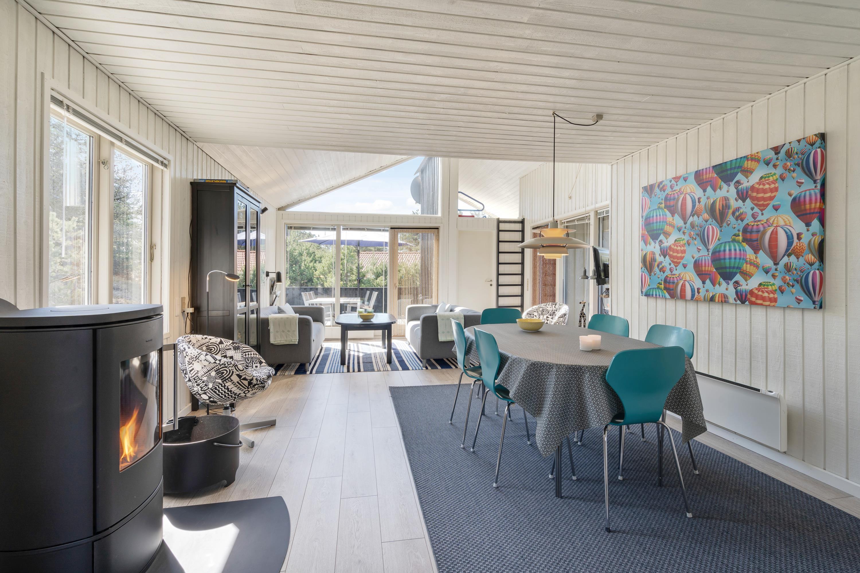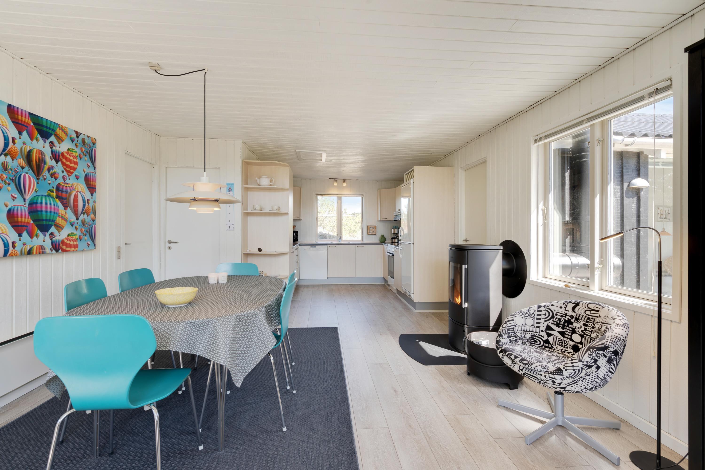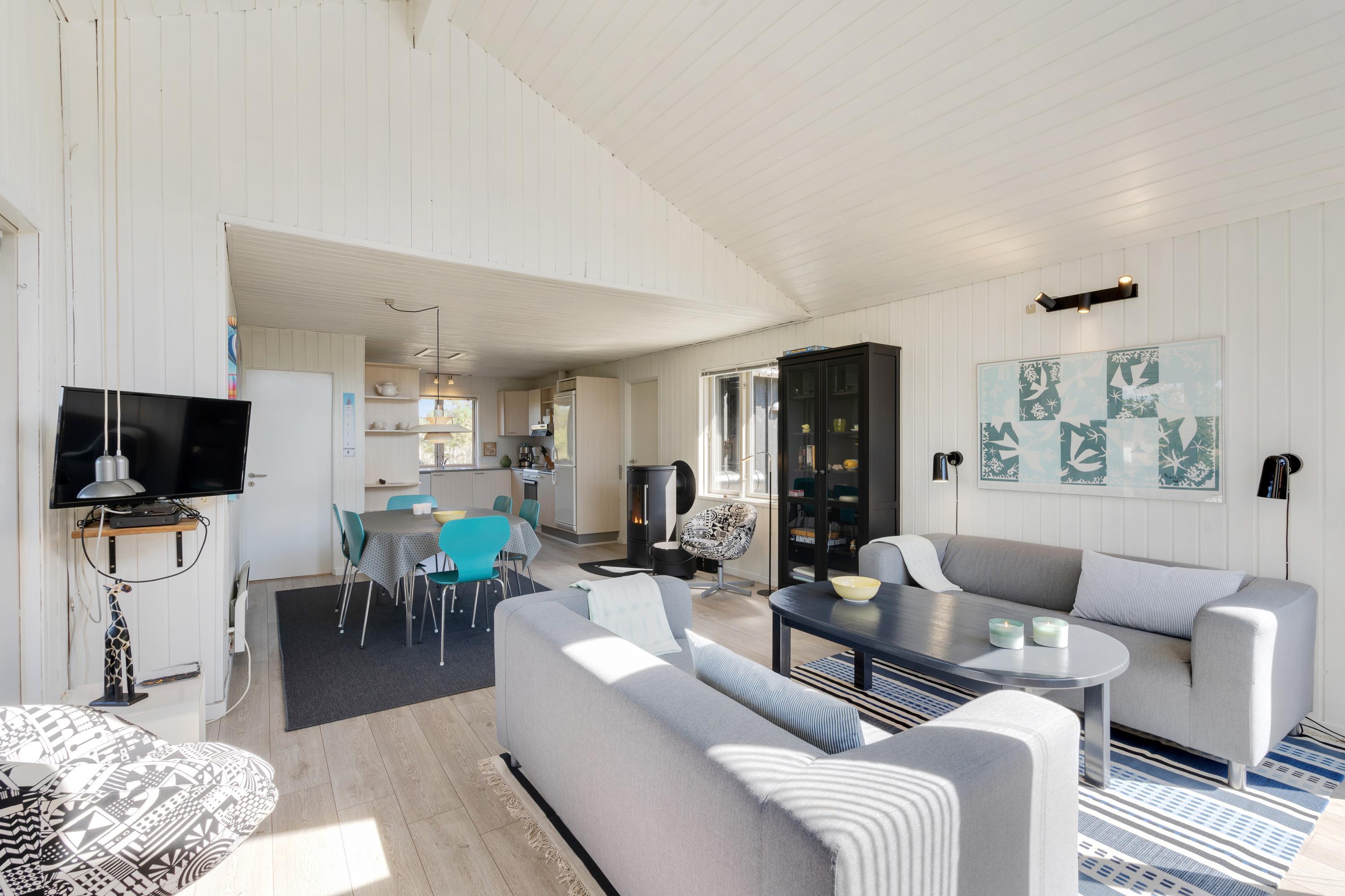 I dette klassiske feriehus er der god plads til de 6 personer, og på de 108 m² er der ikke overladt noget til fantasien. I det veludstyrede og lyst indrettede køkken kan I sammen tilberede dagens måltider, og sammen med jeres nærmeste kan I slappe af og nyde feriefreden i det smagfulde opholdsrum med spiseafdeling og stue.