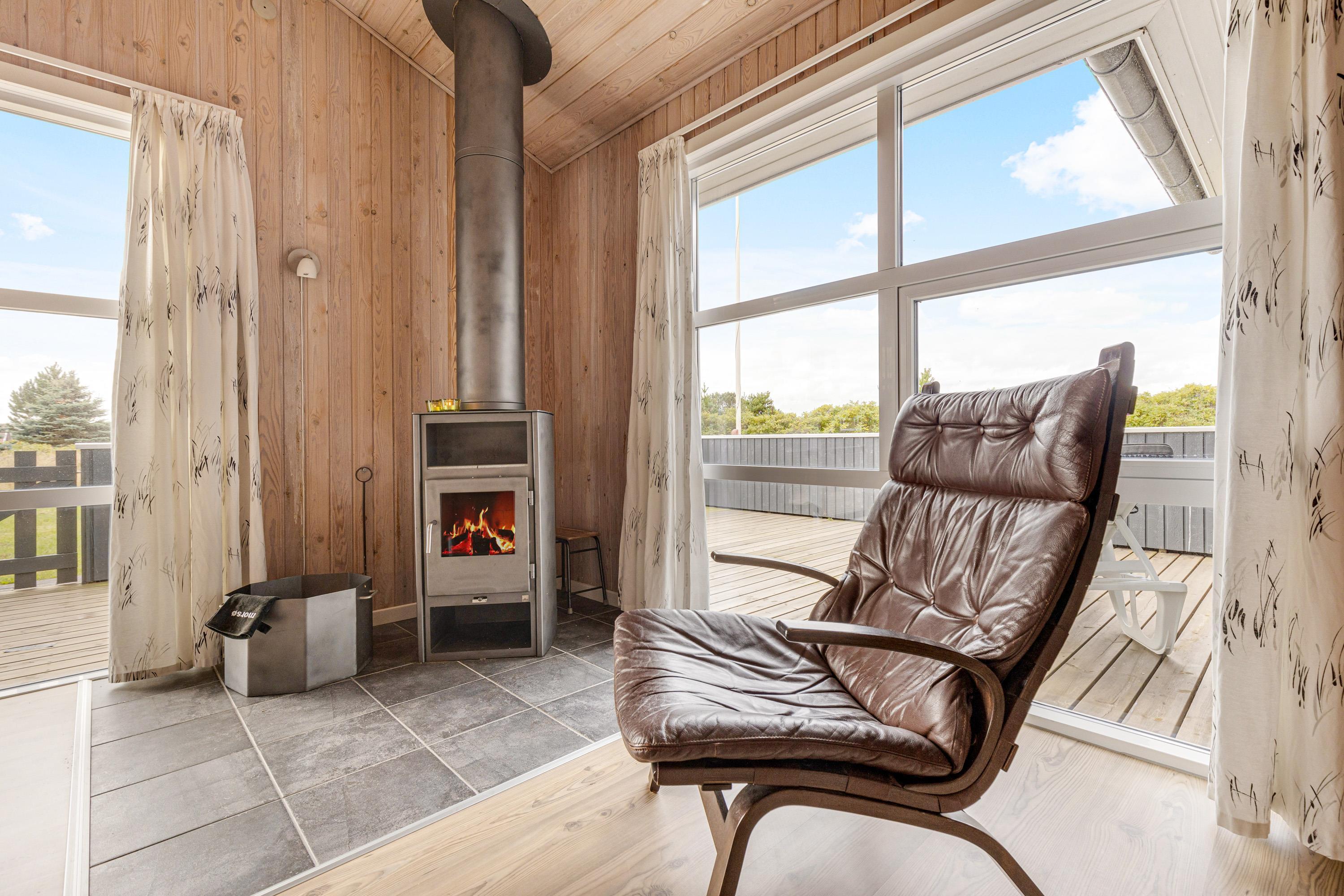 Hyggelig og indbydende indretning med brændeovn og sauna