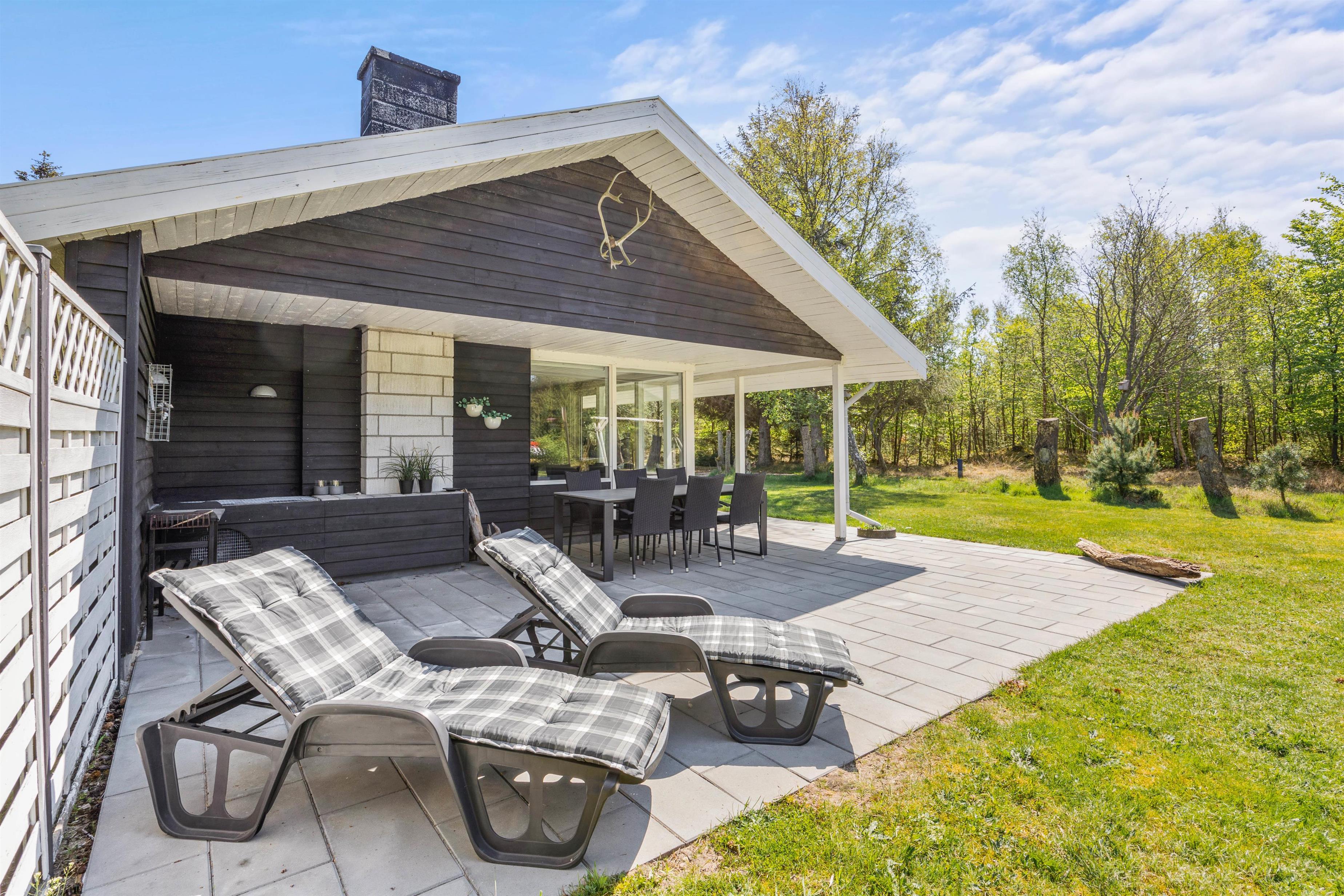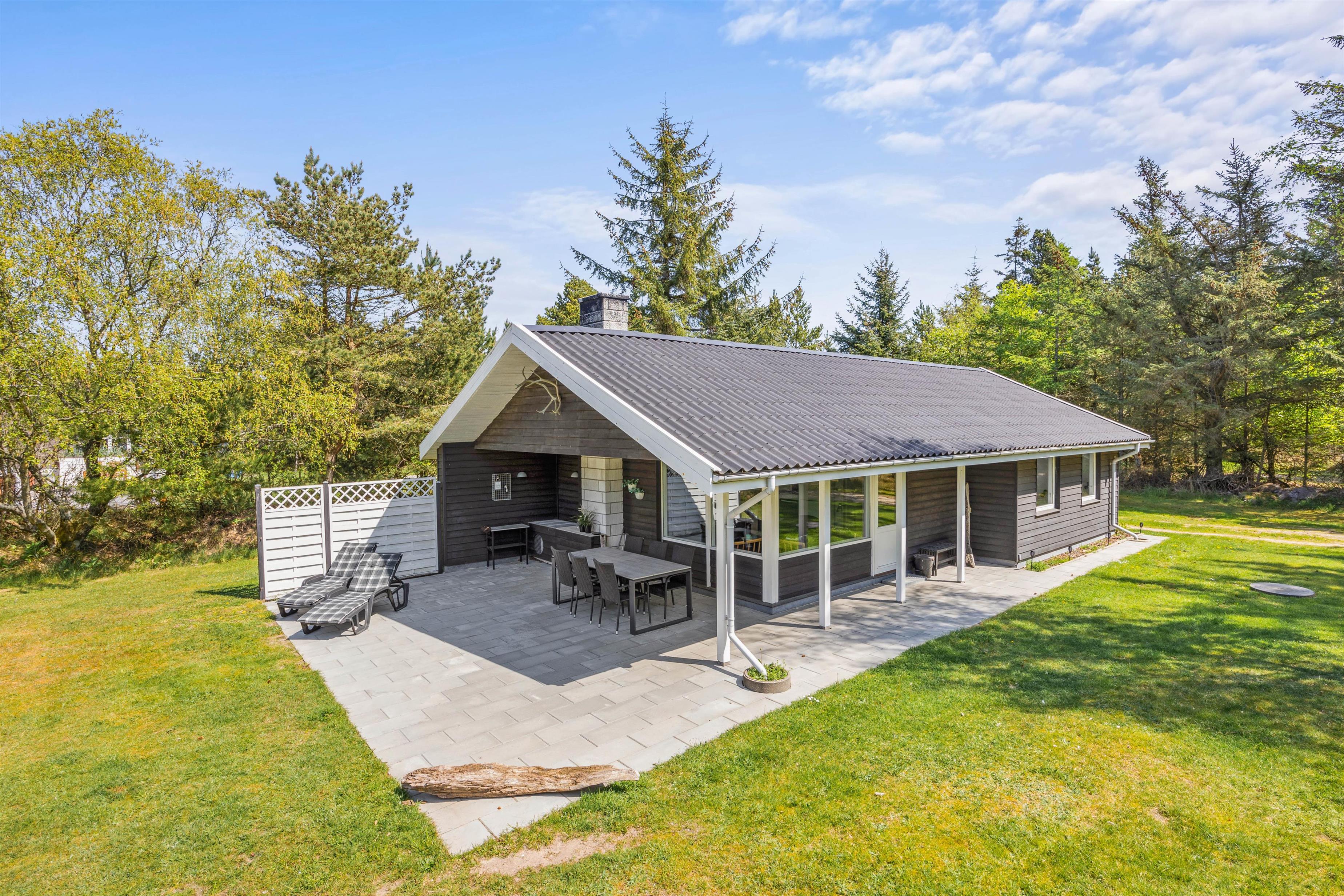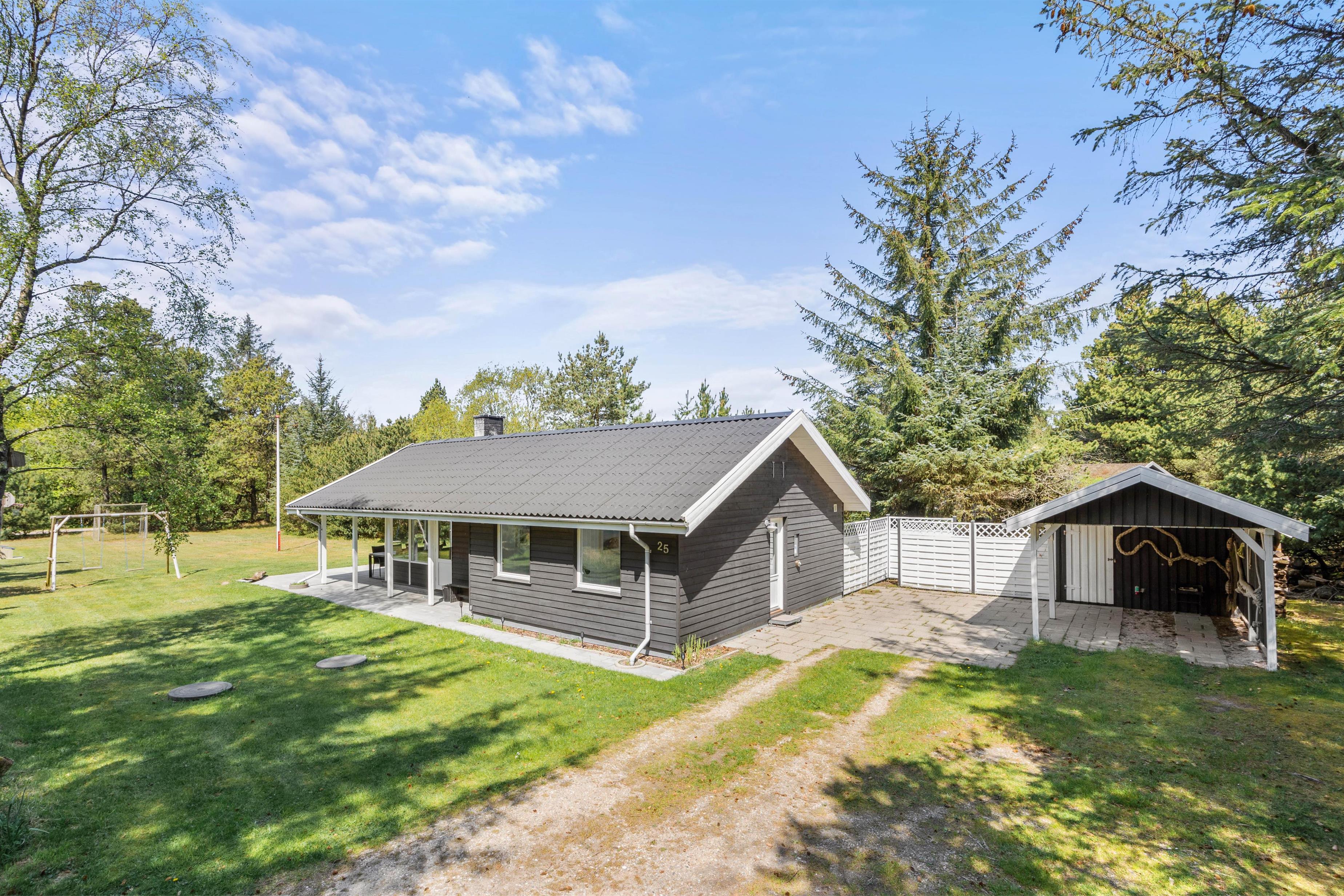 Træhuset på Rådyrvej 25 er ligger på en blind vej i Vejers Strands ferieområde, og her har I masser af privatliv og fred til at nyde feriedagene. Den nærmeste købmand ligger kun 800 meter væk, så der kan hurtigt handles forsyninger og lidt ekstra hygge til filmaftenerne.