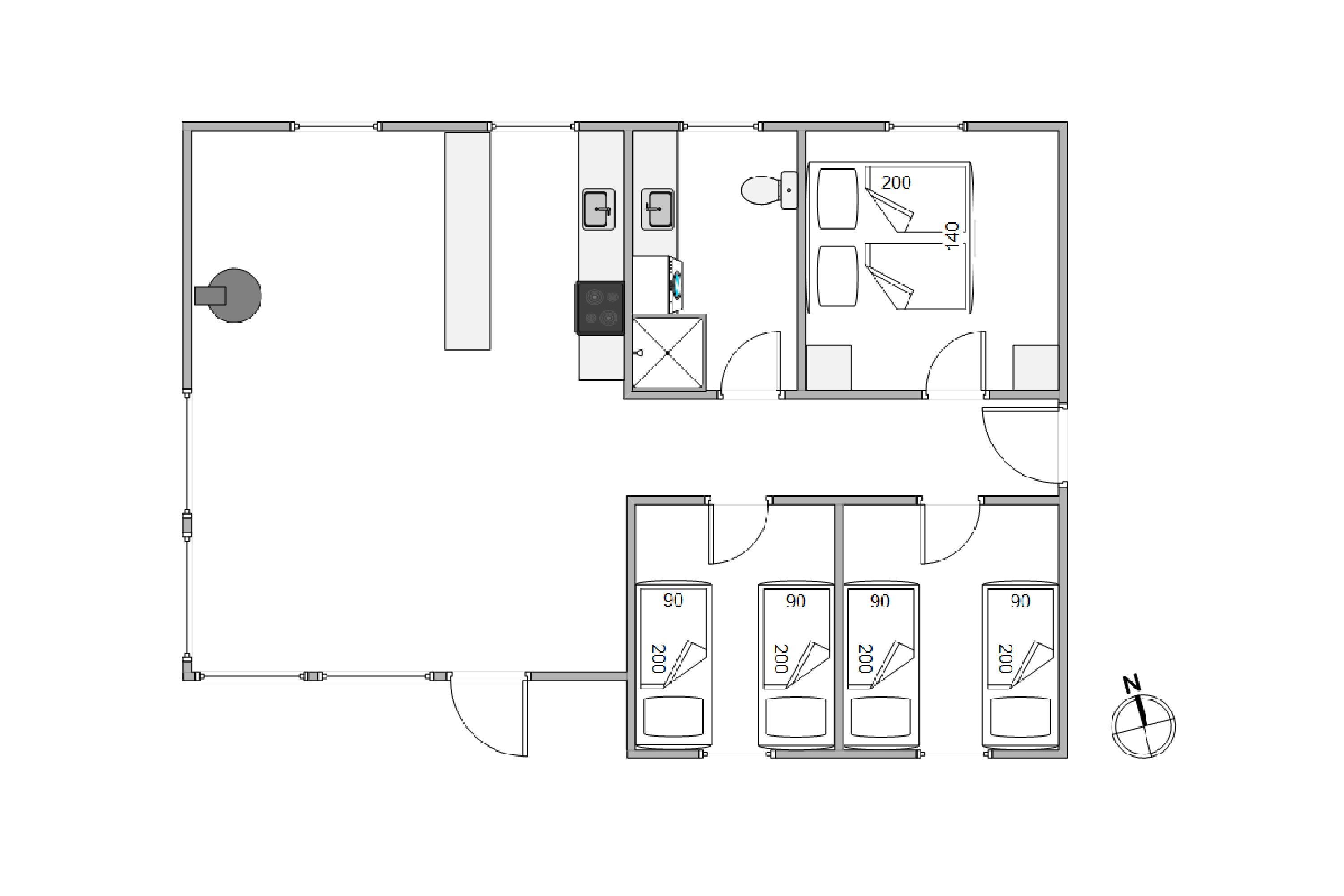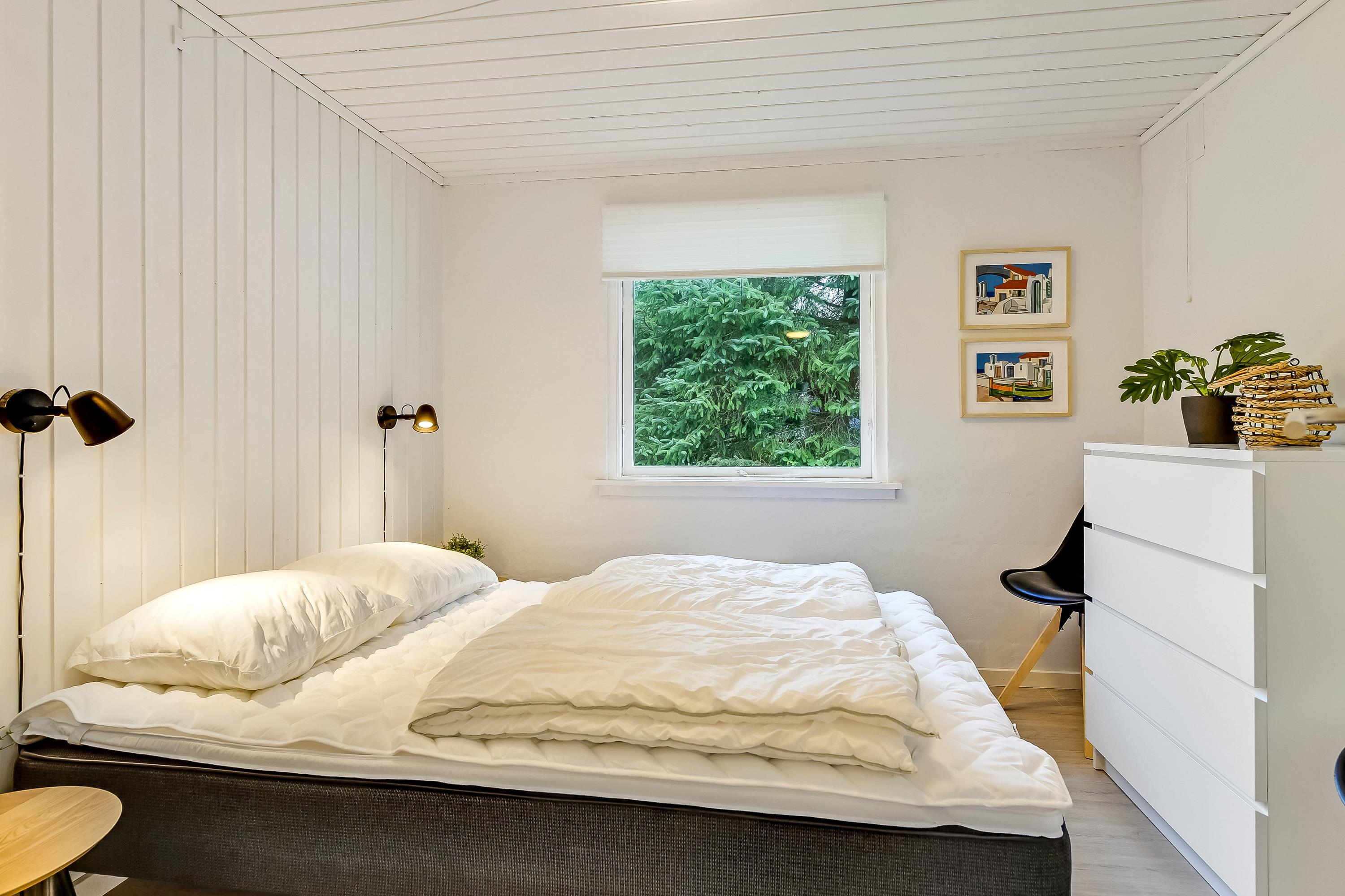 Alt i alt står her 77 m² til rådighed. De 3 soveværelser, et med dobbeltseng og to med enkeltsenge, rummer plads til 6 personer.