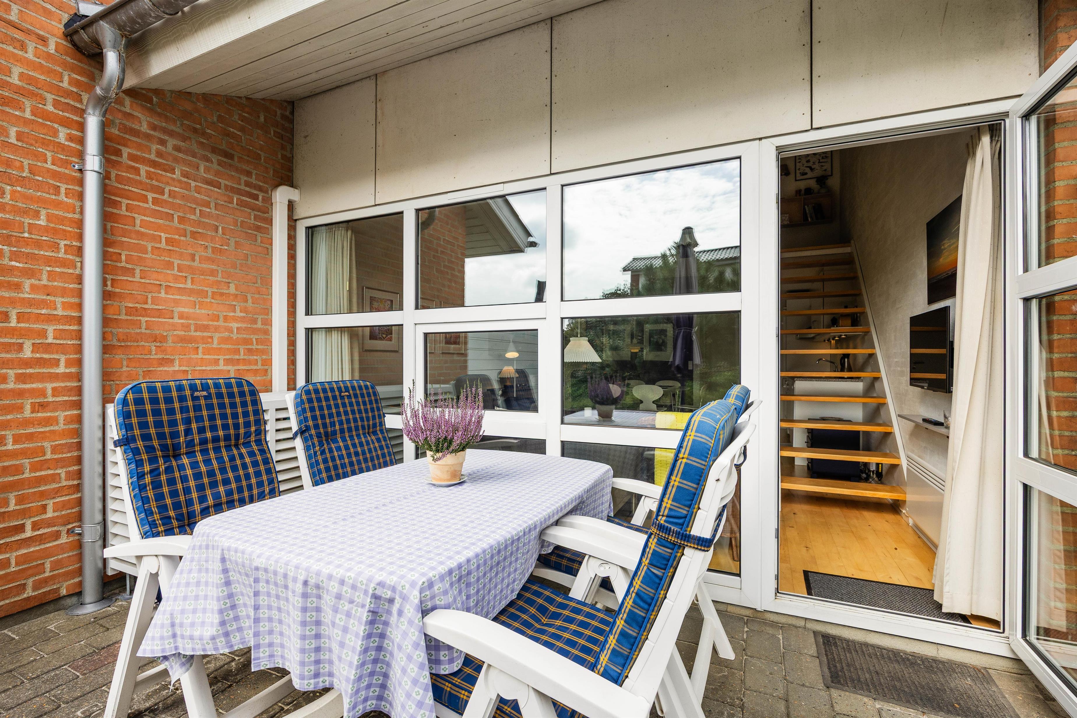 Fra stuen når I den afskærmede terrasse, hvor I kan nyde det gode vejr sammen med en kold drink rundt om havebordet. Til de lune aftener står grillen klar, så I kan tilberede et lækkert feriemåltid under åben himmel.