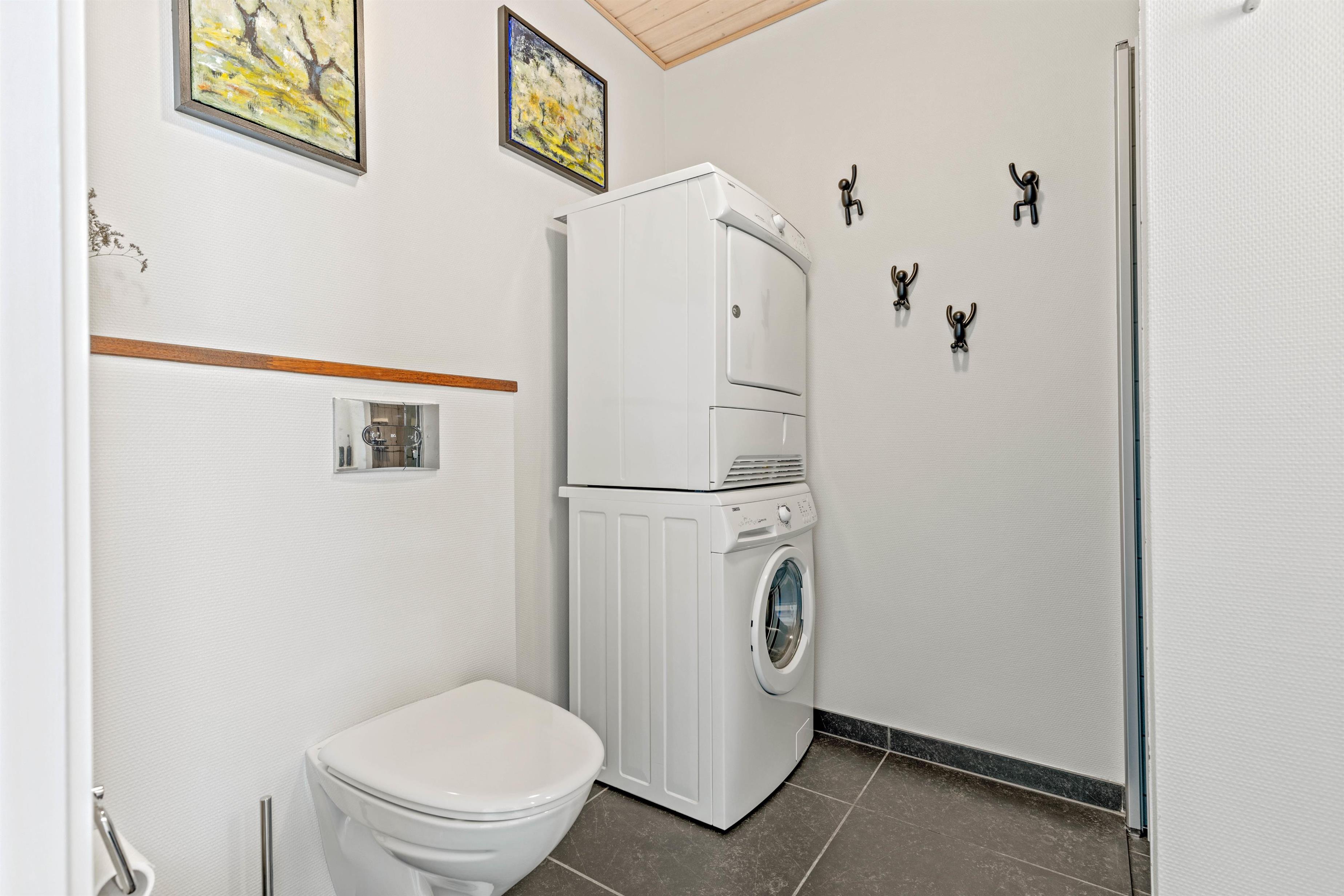 Ud over at være hyggeligt og venligt indrettet, er der også tænkt på det praktiske her. Køkkenet er udstyret med opvaskemaskine, og på badeværelset med gulvvarme finder I vaskemaskinen og tørretumbleren - alt sammen ting, der gør jeres ferie endnu mere ukompliceret.