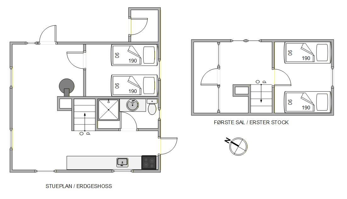 Ved dagens afslutning kan I gå til ro i de to soveværelser, som ligger på hver sin etage, og begge er udstyret med enkeltsenge, og når næste feriedag kalder, kan I friske jer op med et brusebad i badeværelset i stueetagen.