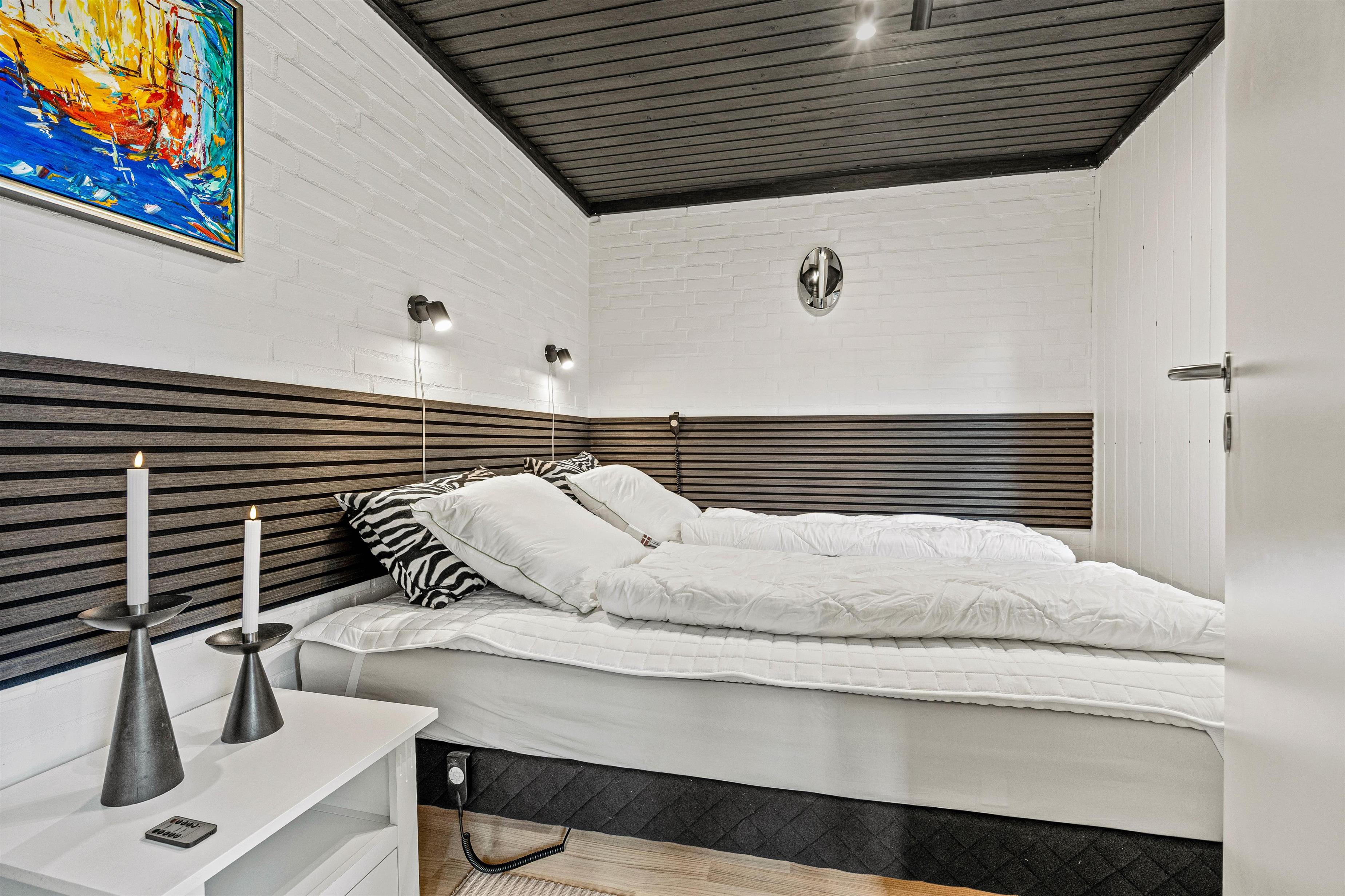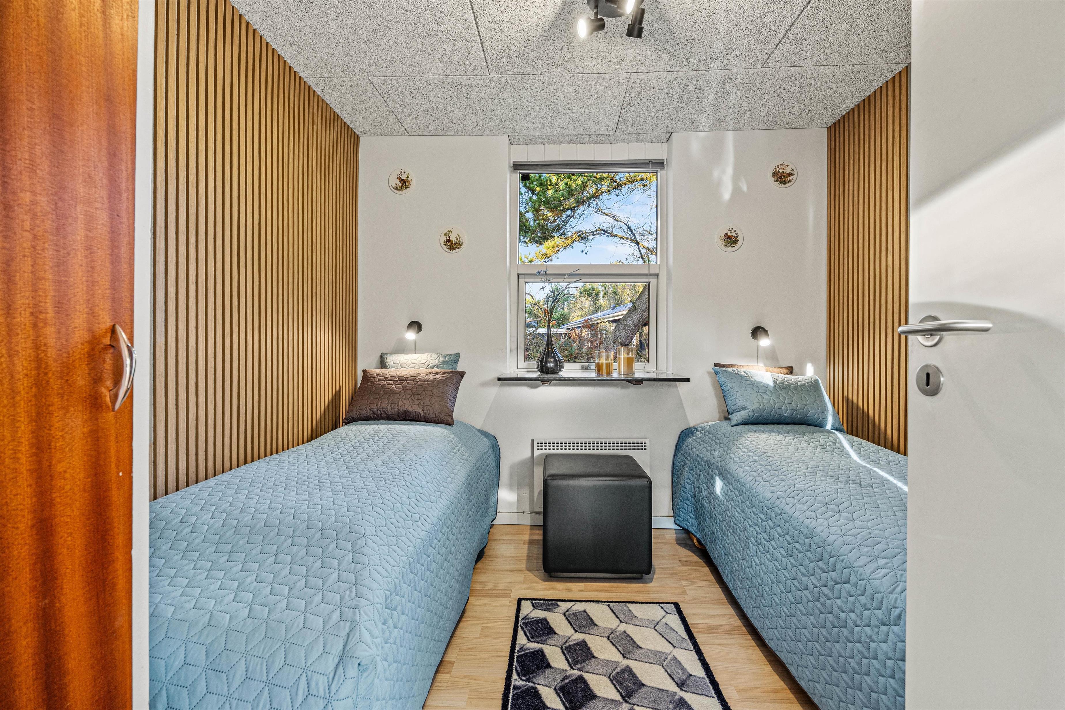 Sommerhuset råder over 3 soverum – en med 2x90cm og 2 med hver 2 enkeltsenge. Der er plads til i alt 6 personer, og sovepladserne egner sig både til familier med børn og til ferier med venner. Badeværelset er enkelt og praktisk, og i sommerhuset finder I desuden en vaskemaskine, så I har mulighed for at vaske tøj undervejs.