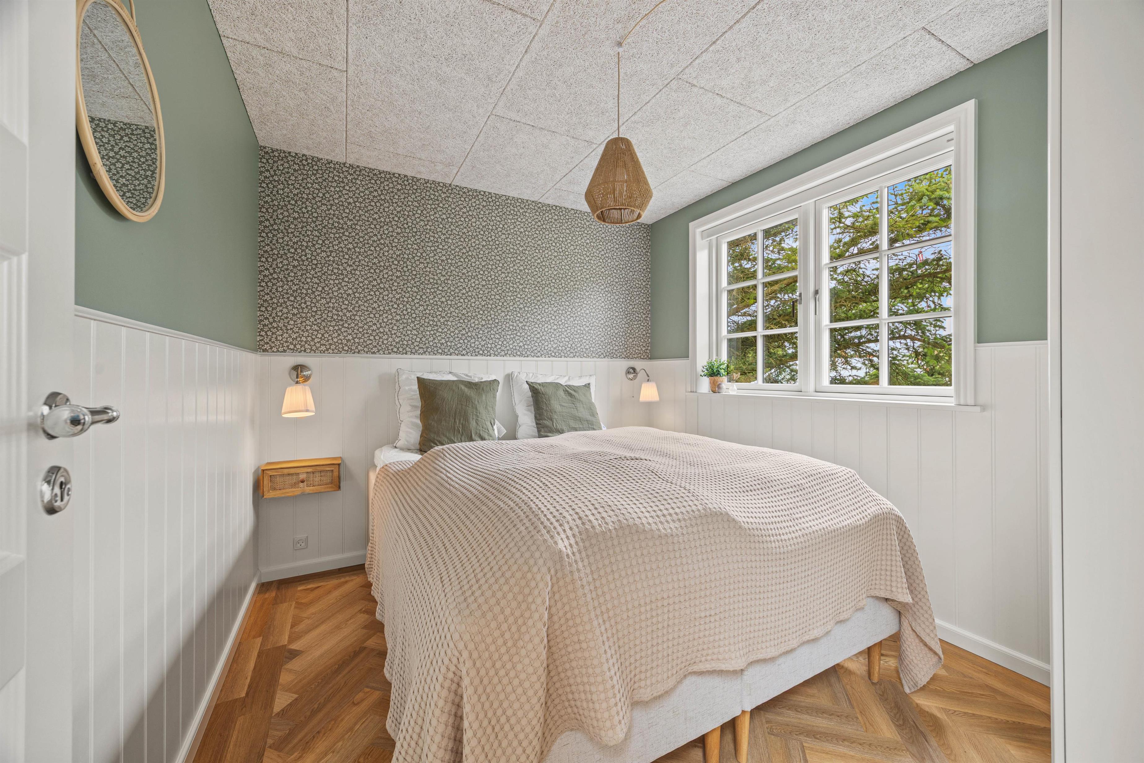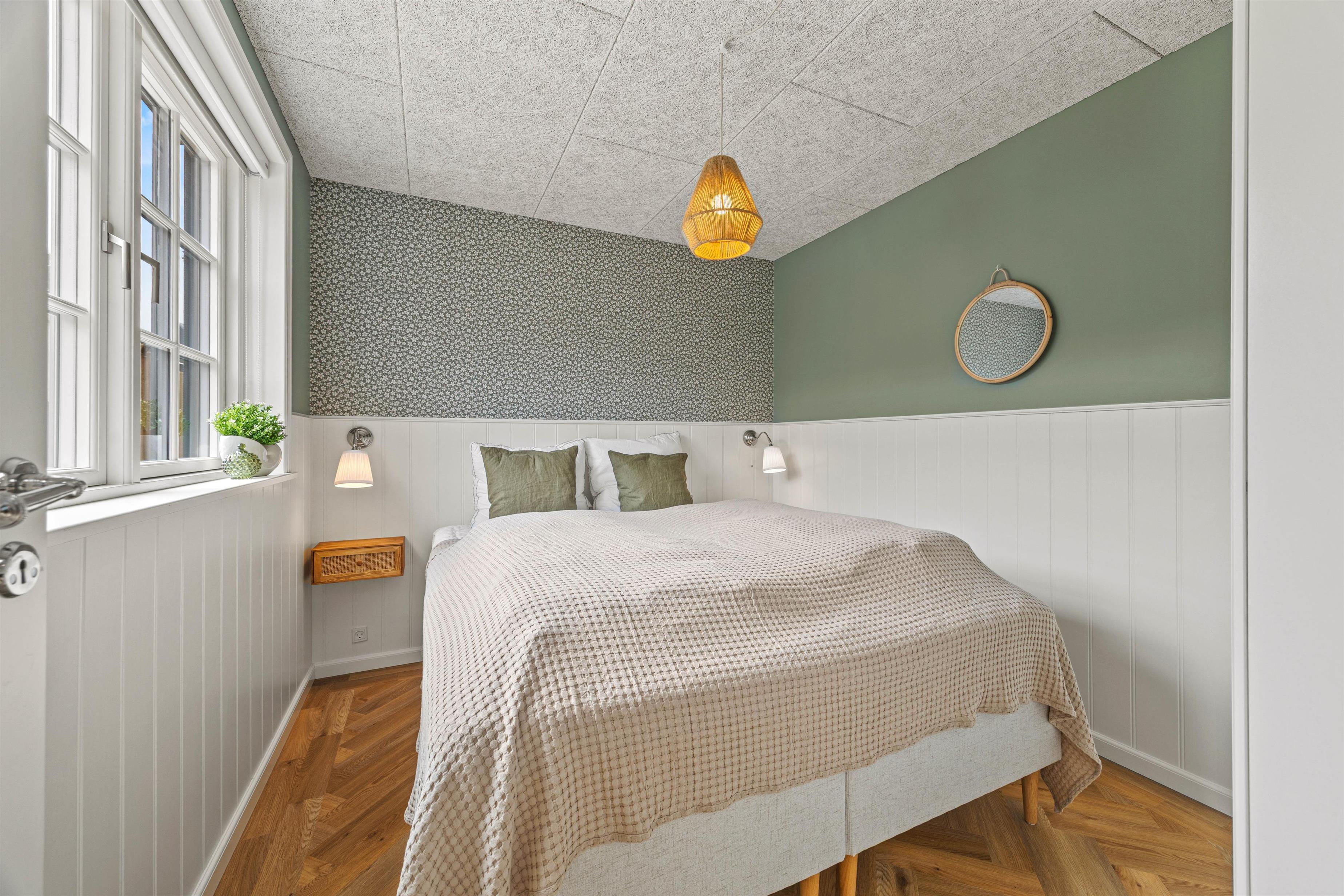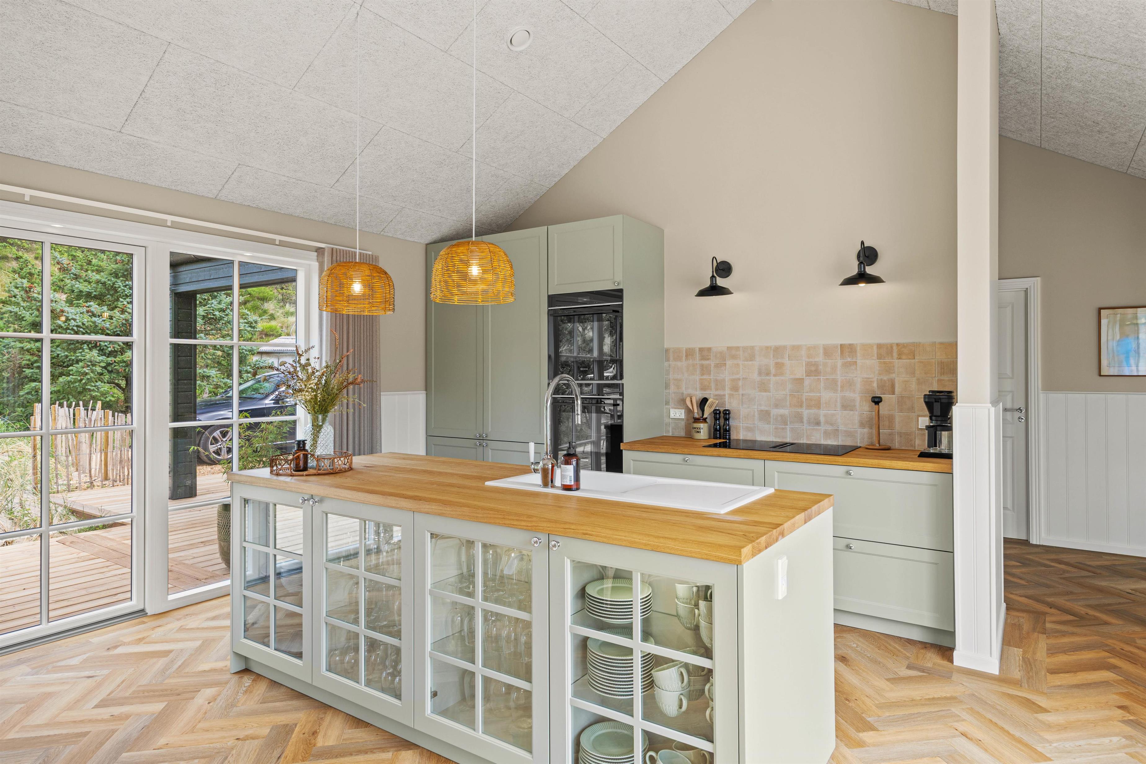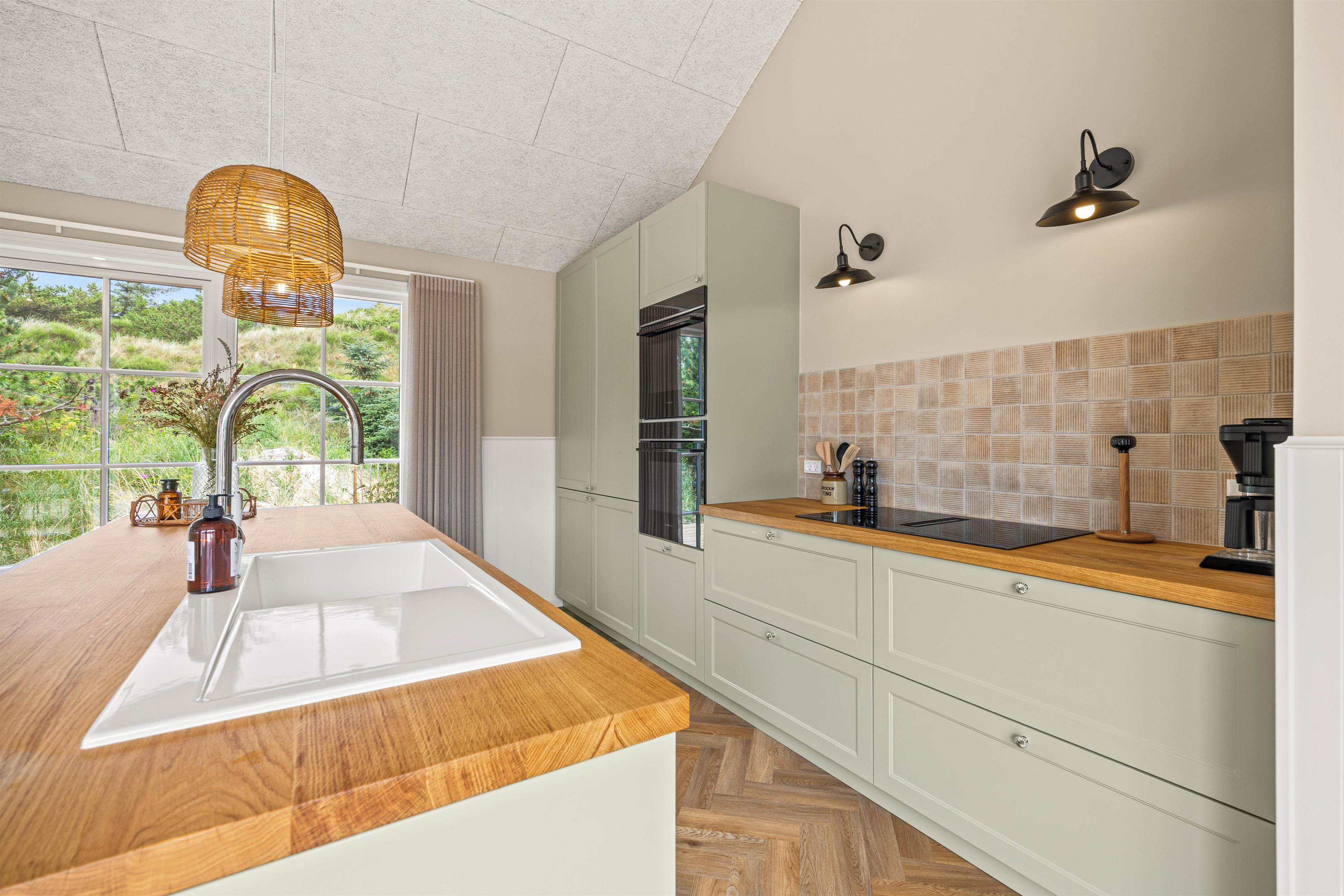Hjerterummet er det lyse alrum, der forener stue og køkken. Her er en varm og rar atmosfære, og dagslyset strømmer gennem de mange vinduer. Her er plads til familielivet; uanset om I skal lave mad, holde spilleaften eller se en god film i fjernsynet. Med den hyggelige brændeovn er der lagt op til rigtig feriehygge – tænd op i brændeovnen efter en dejlig vandretur i den skønne natur eller smid jer i sofaen med en god krimi og et glas vin. Endvidere byder sommerhuset på en energibesparende varmepumpe samt alle hverdagens hjælpere herunder vaskemaskine og tørretumbler.