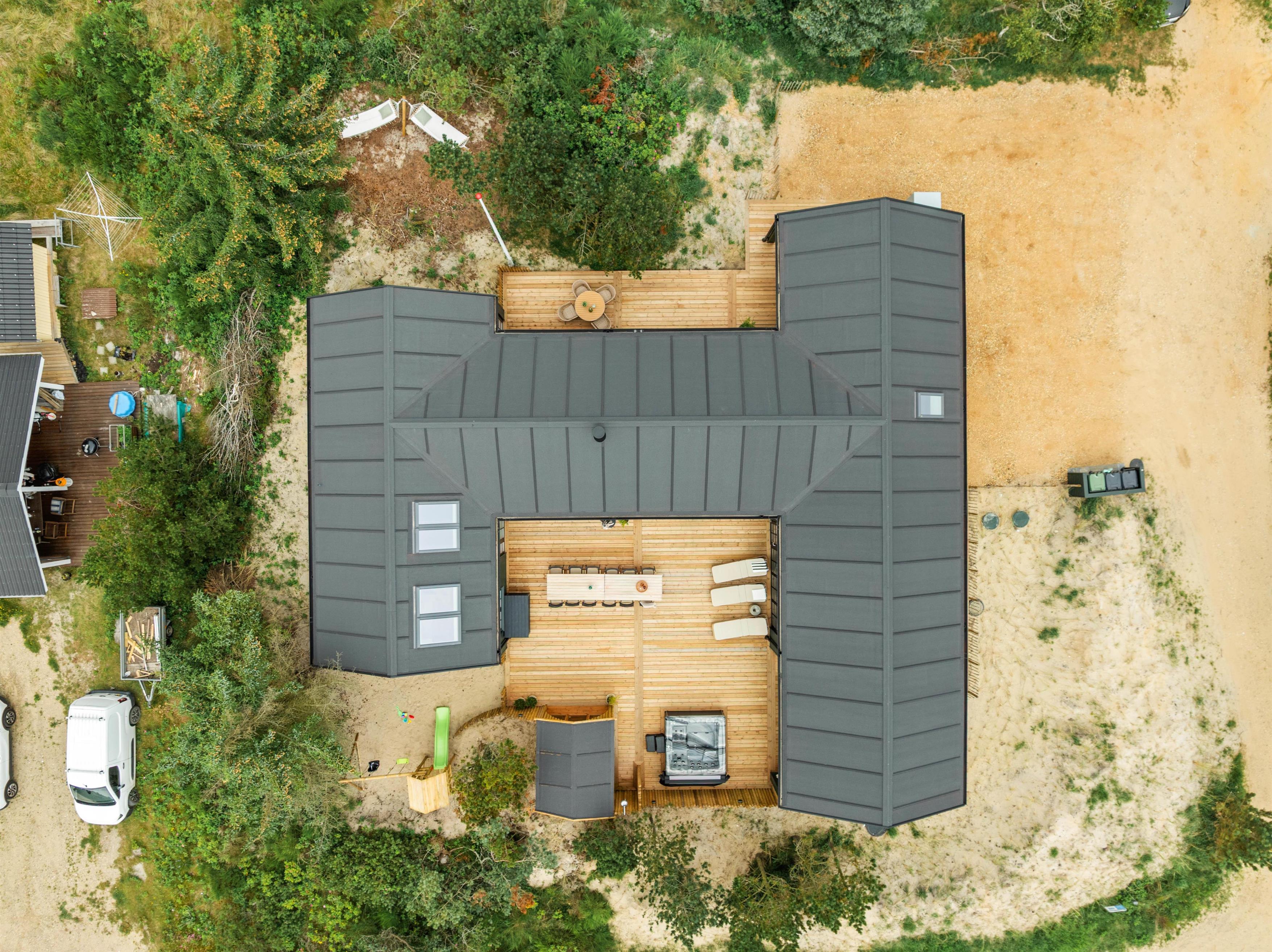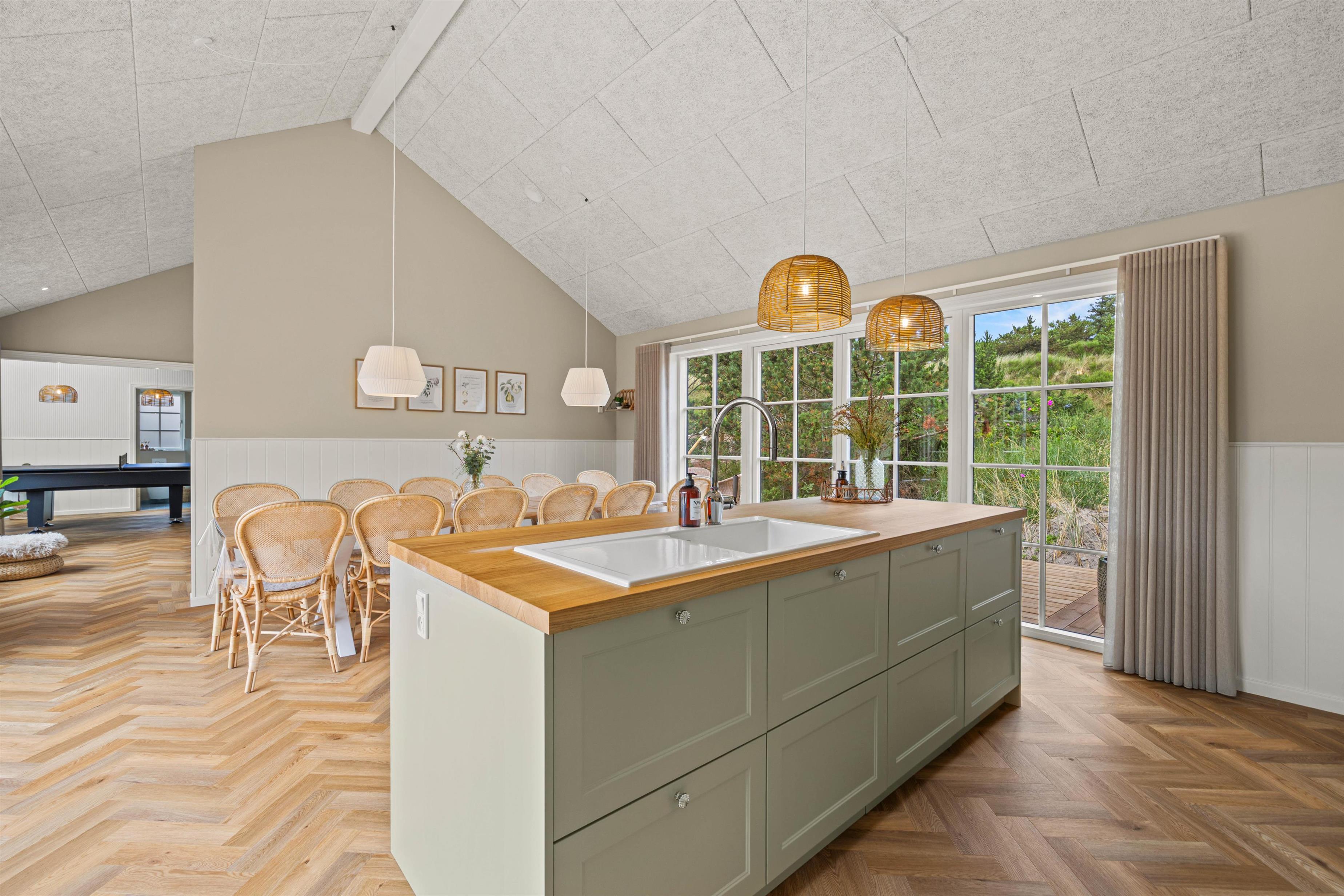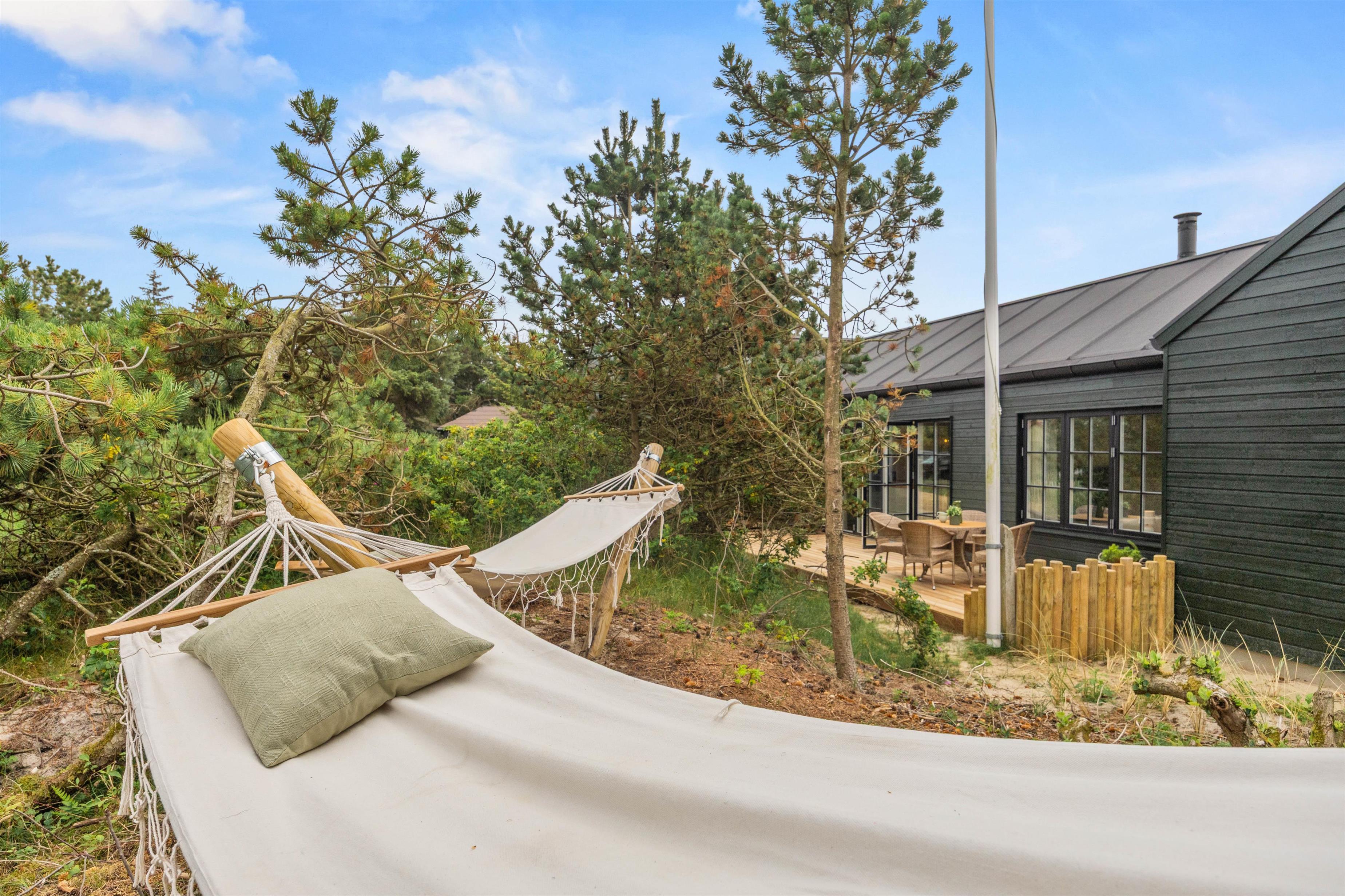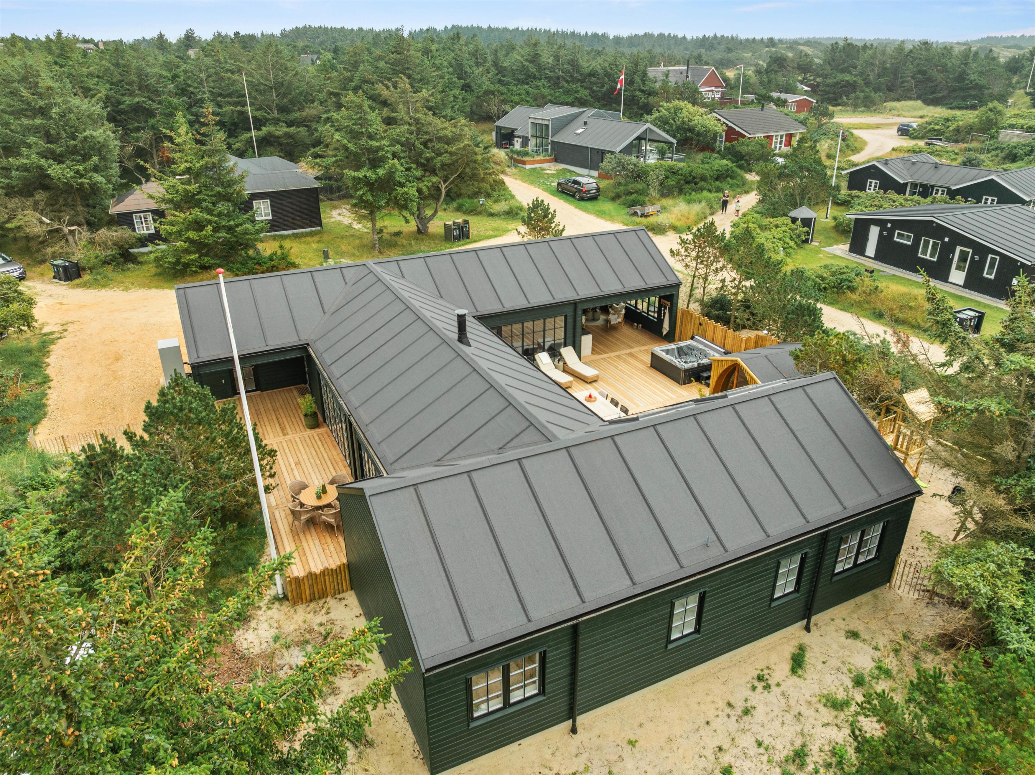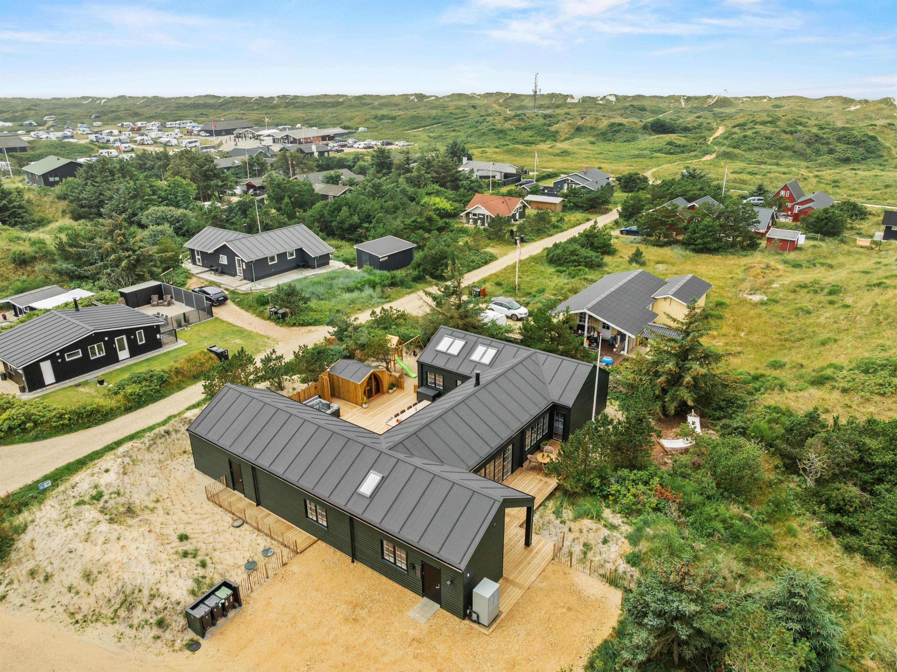 Dette imponerende aktivitetshus i Vejers er bygget i 2025, og her finder I alt, hsommerhushjertet begærer. Her er kræset for detaljerne, hyggen og rig mulighed for at nyde en dejlig ferie med familie og venner i skønne omgivelser. Her er 6 gode soveværelser samt 3 badeværelser, alle med gulvvarme. Udover den flotte indretning, de lækre faciliteter og de luksuriøse detaljer, så er sommerhuset også topisoleret og udstyret med energibesparende løsninger.