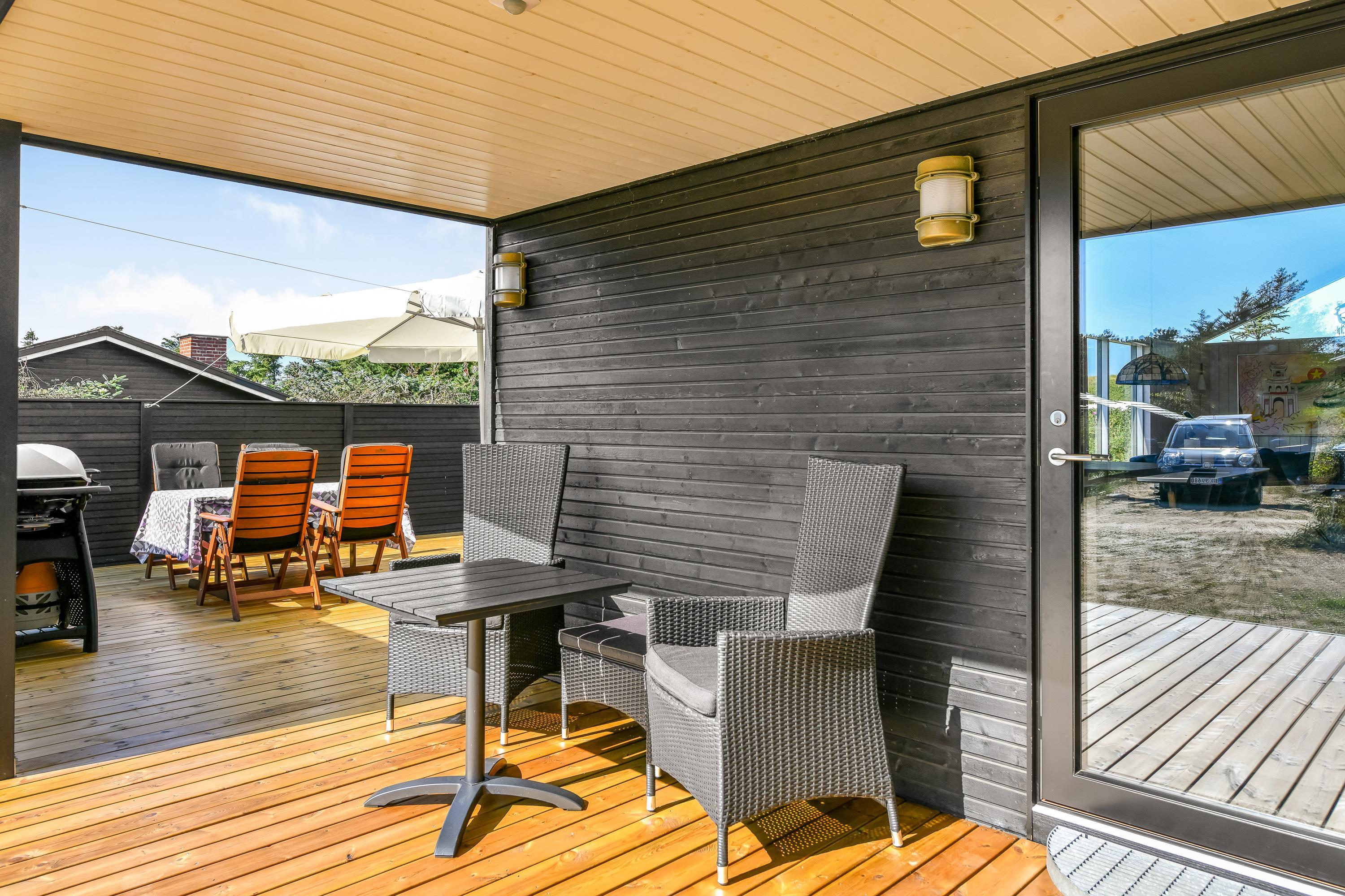 Med til feriehuset i Vejers Strand hører en afskærmet terrasse. Med havemøbler, liggestole og grill har I de bedste forudsætninger for at nyde den friske luft og det unikke klitlandskab. Mens I solbader på terrasse kan I høre Vesterhavet bruse.