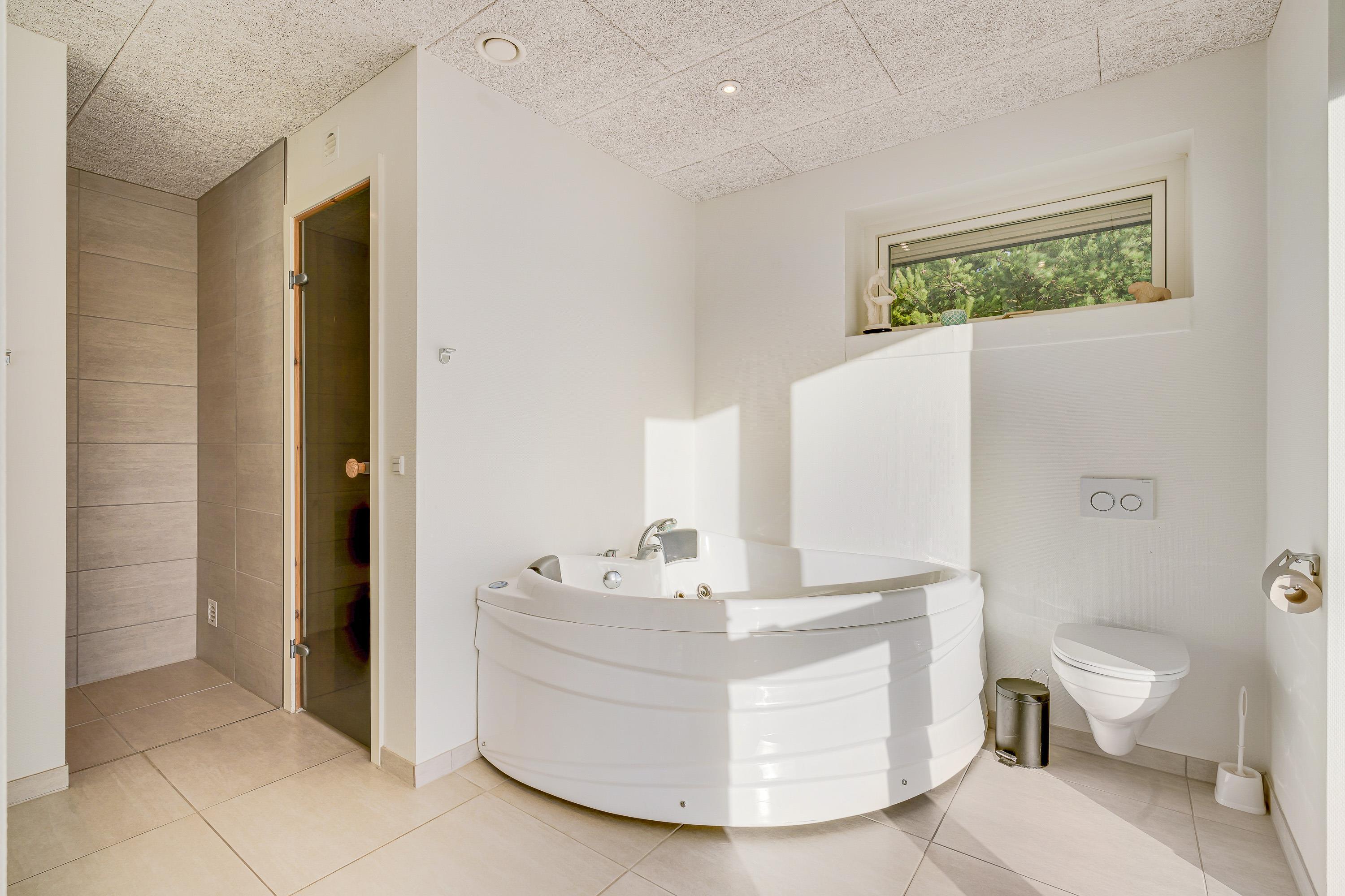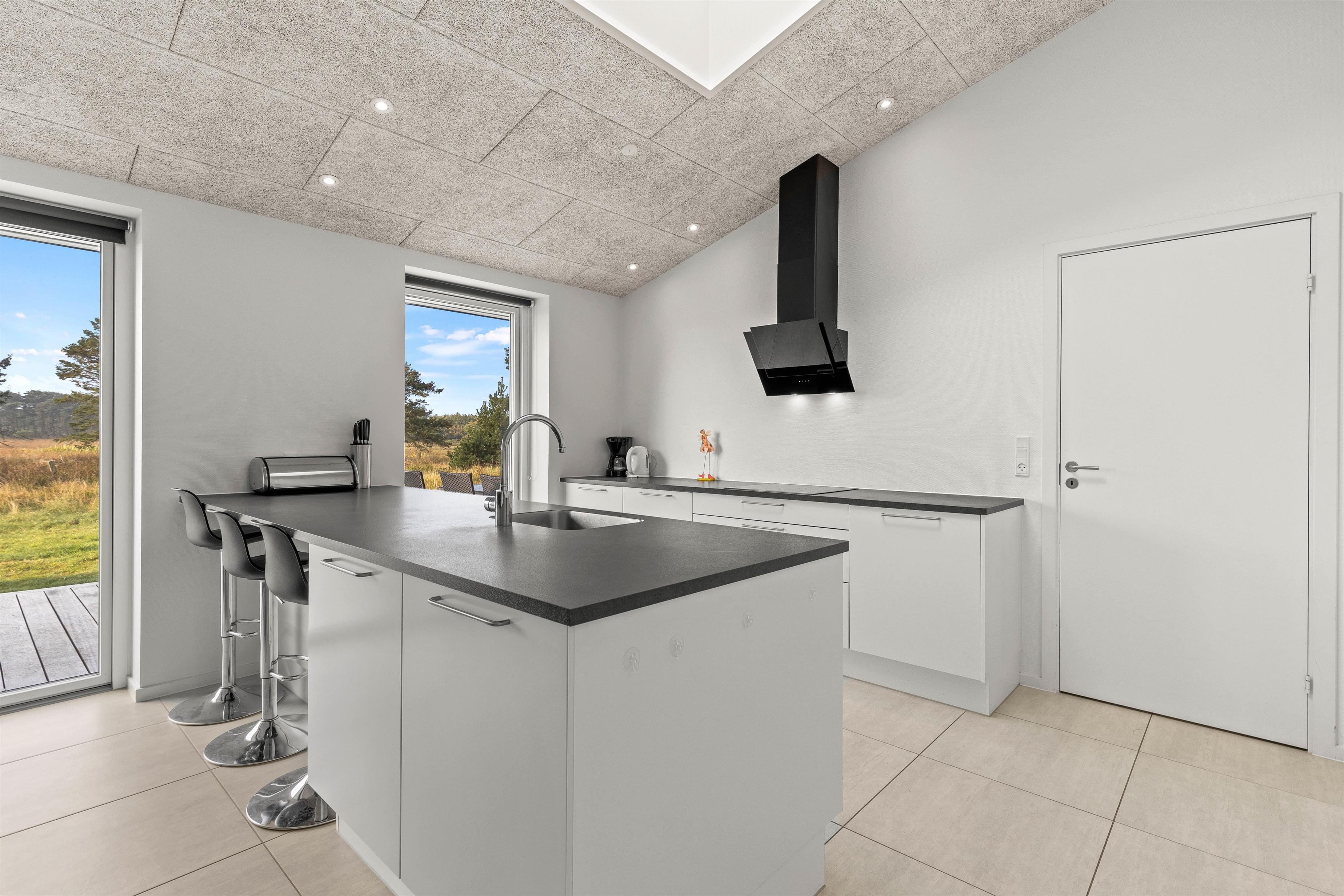 På sommerhusets 164 kvadratmeter er der hele 4 store soveværelser, der alle er indrettet med dobbeltsenge, som I kan få jeres nattesøvn i, så I kan blive klar til de kommende feriedage i Vejers Strand. Efter en dejlig nats søvn skal I hverken bekymre jer om kolde fødder eller kø til badeværelset – her er nemlig 2 badeværelser med gulvvarme.
