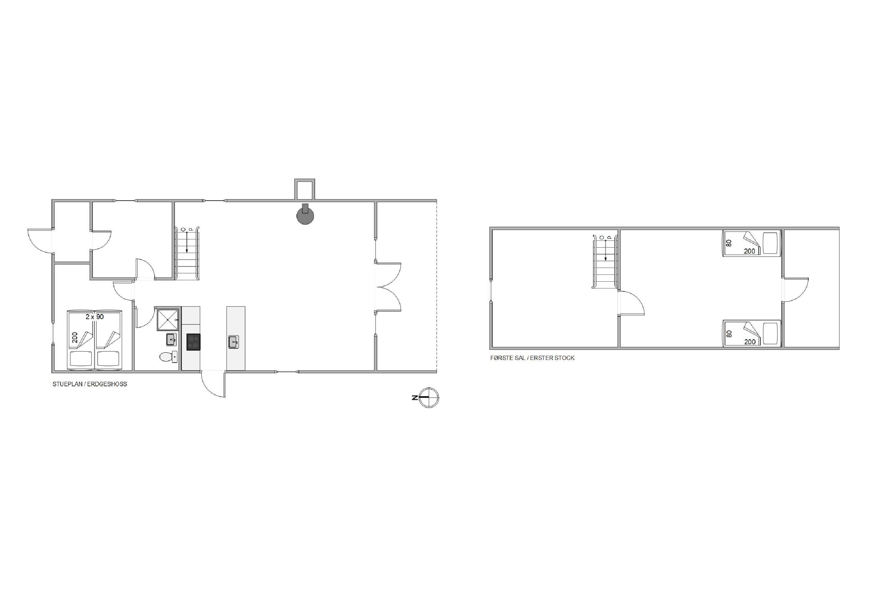 1. soverum/sengestørrelser2 x 90 x 200