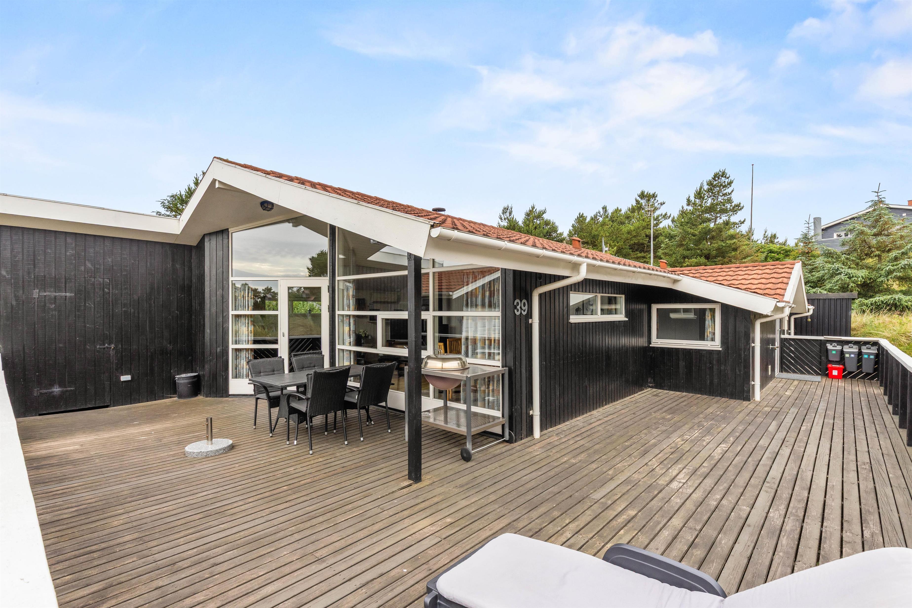 Udendørs byder sommerhuset på flere skønne terrasser, som I kan nyde de solrige feriedage på. Den ene af terrasserne er lukket, så her har I mulighed for at have jeres hund med ude, uden at den går på opdagelse. Desuden er denne terrasse delvist overdækket, så I kan sætte jer i skyggen, hvis I skulle få brug for det.