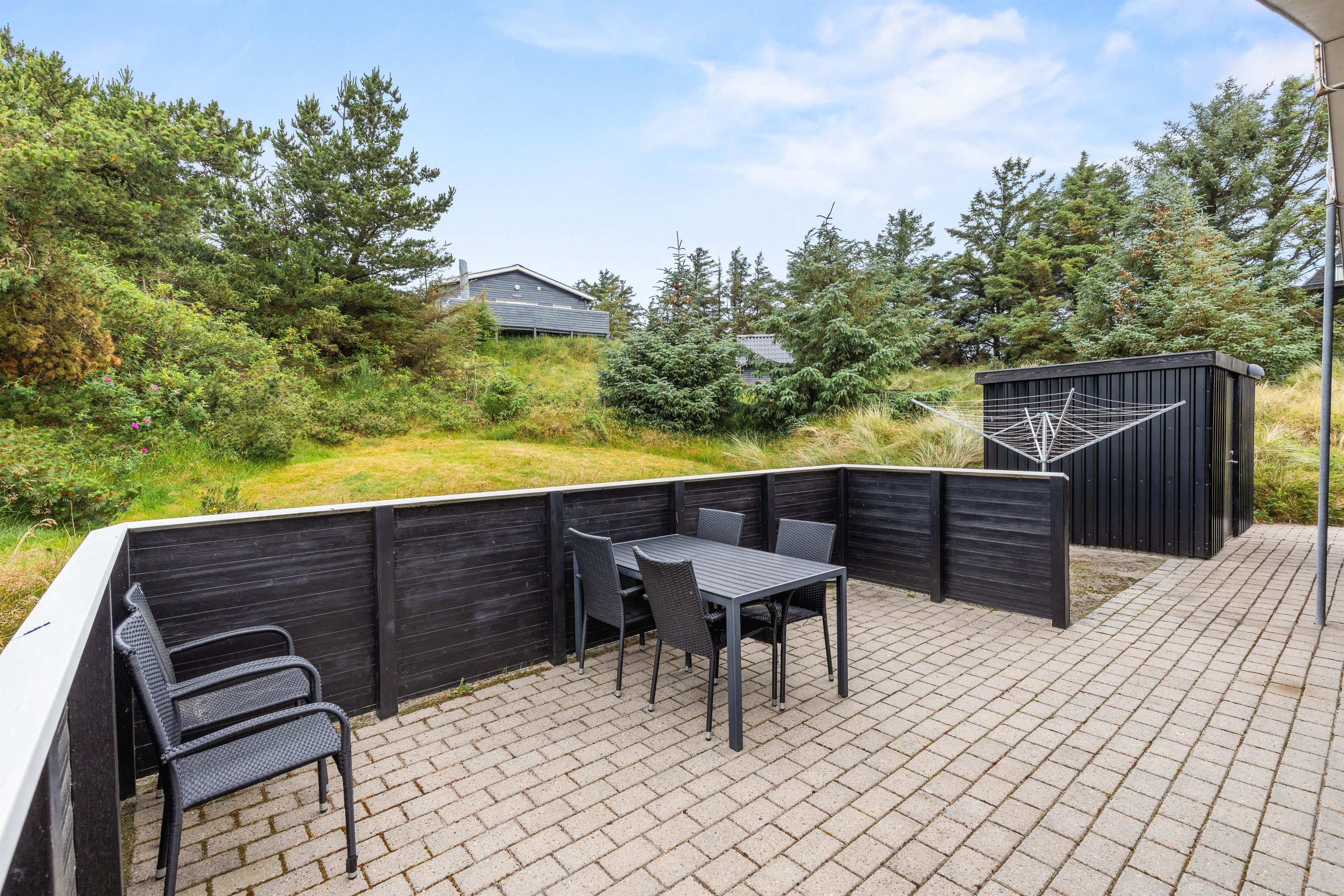 På terrassen har I havemøbler og liggestole til rådighed, så I kan finde jer godt til rette og slappe af i solen. Desuden har I en grill til rådighed, så I kan tilberede lækre grillmiddage i løbet af jeres ferie, som I kan nyde på de lune ferieaftener på terrassen.