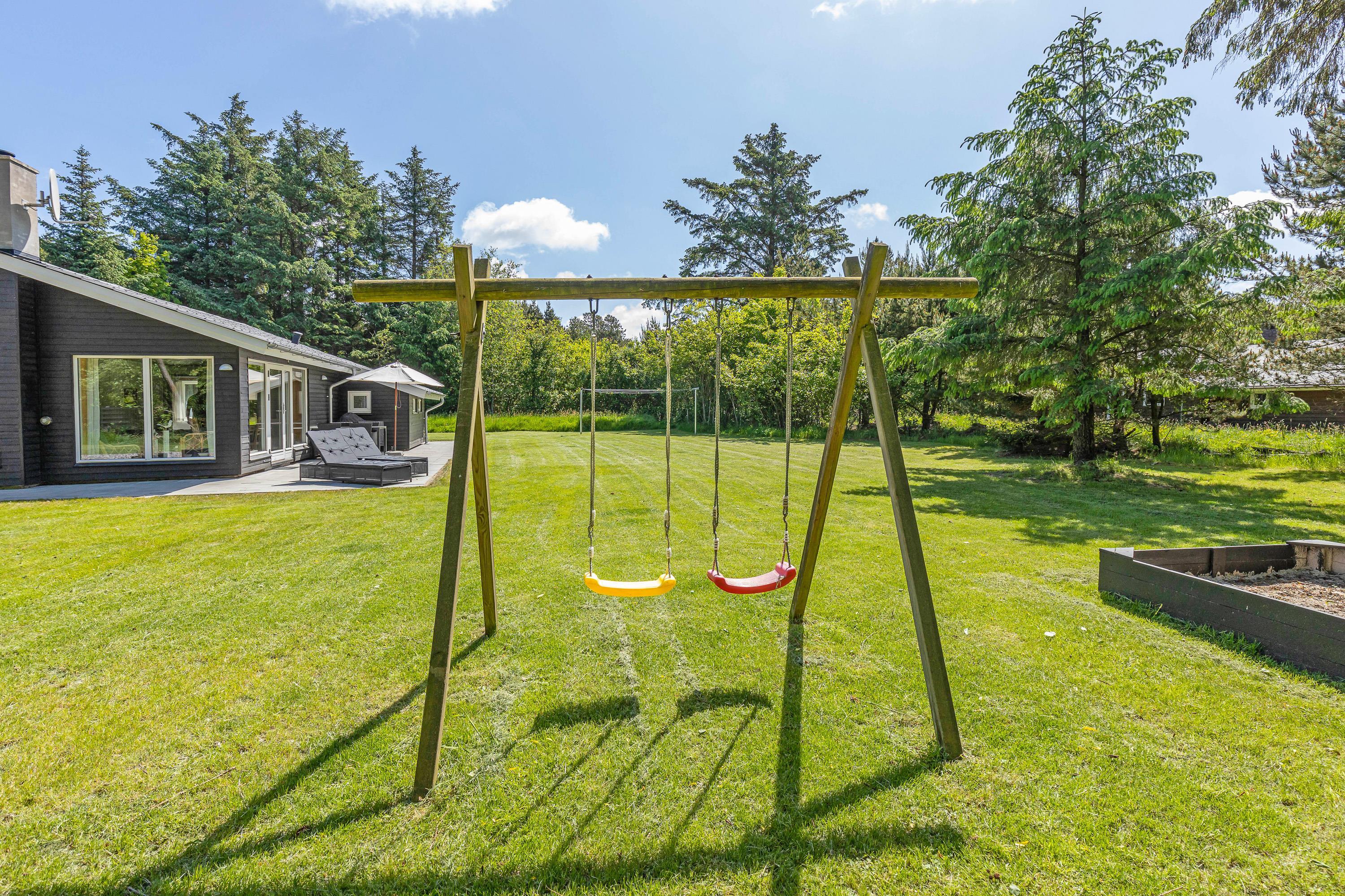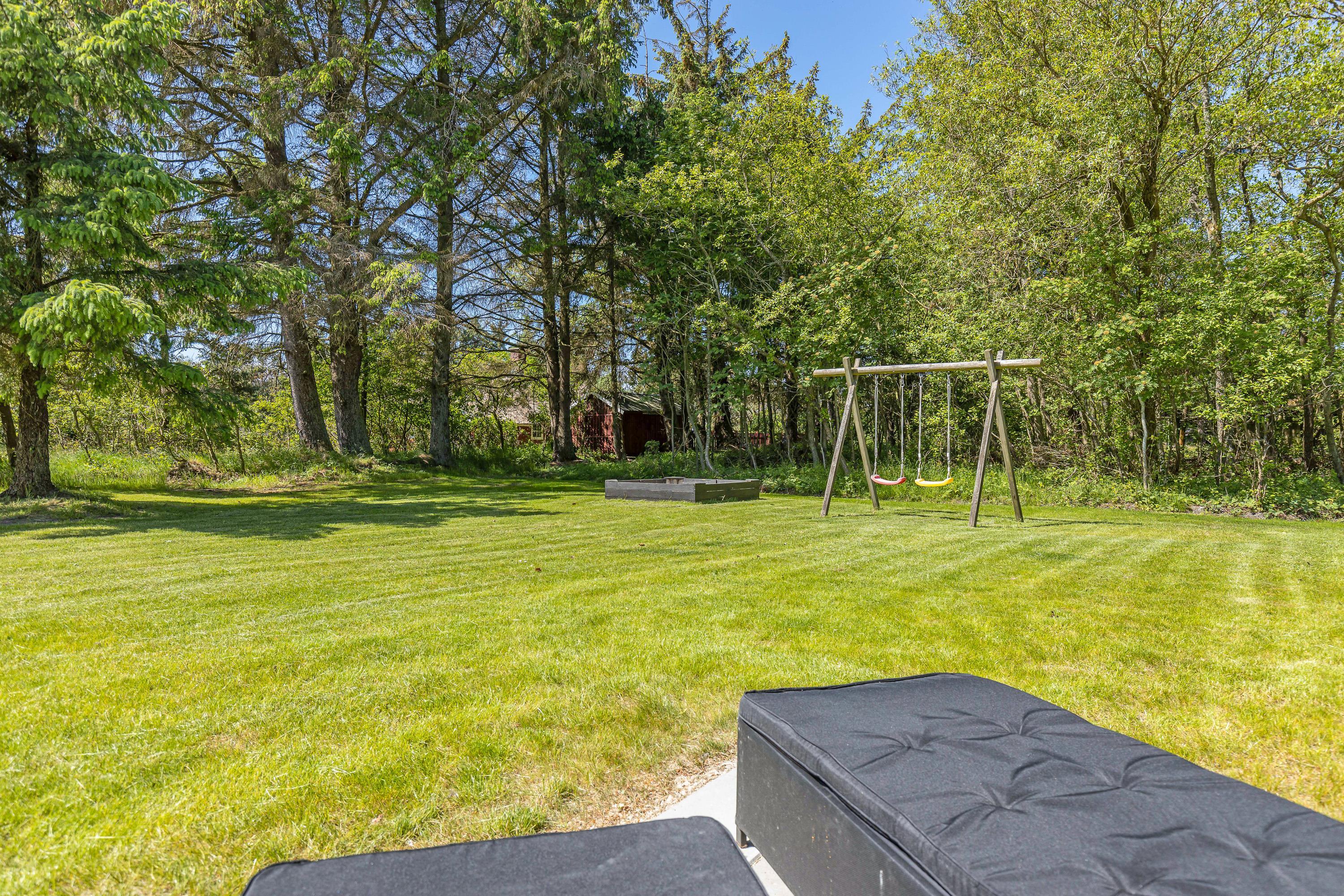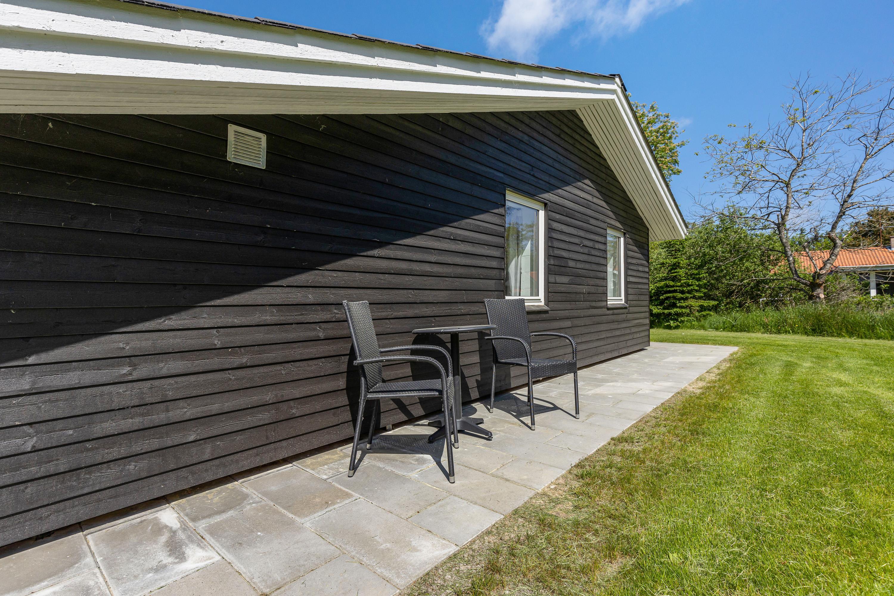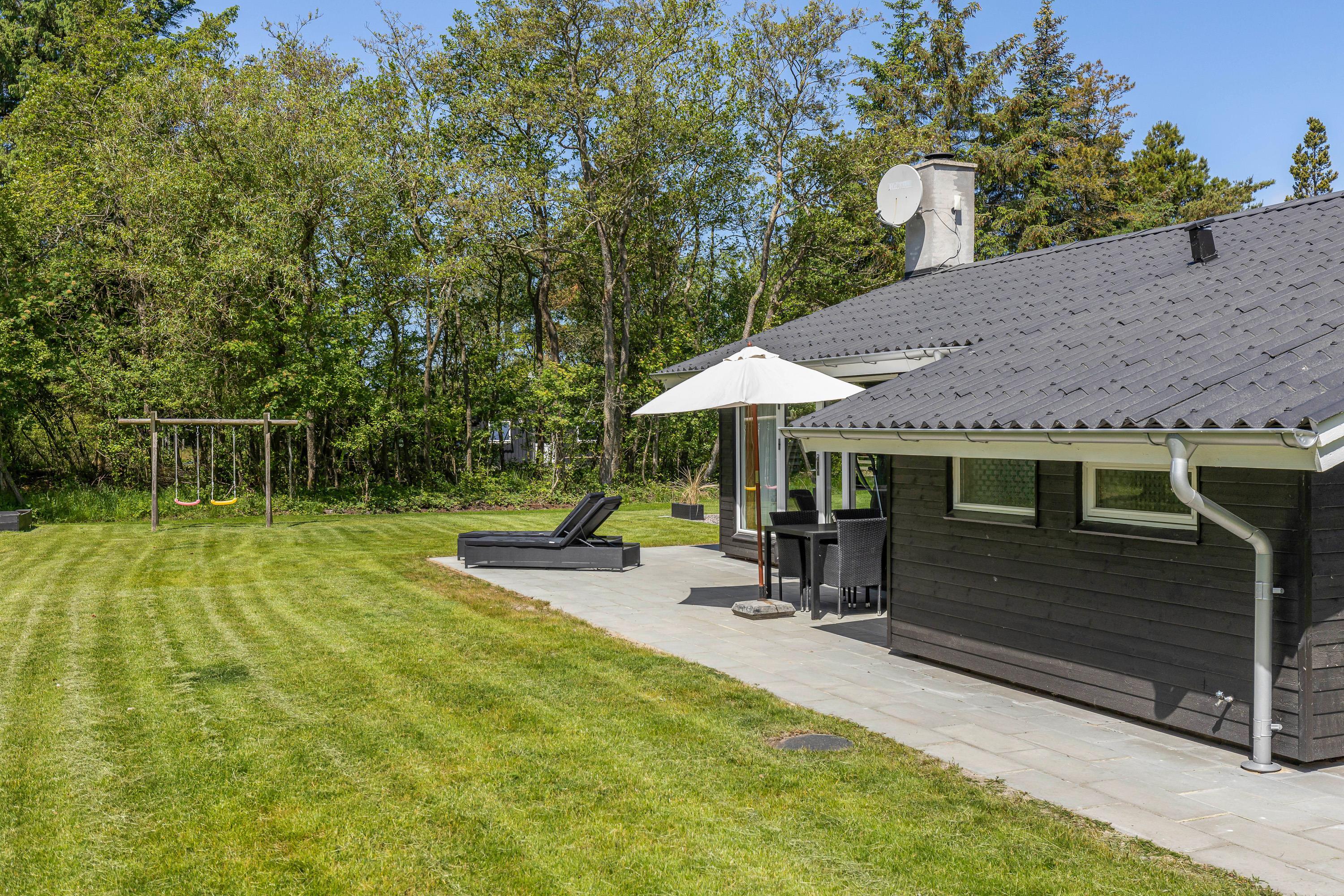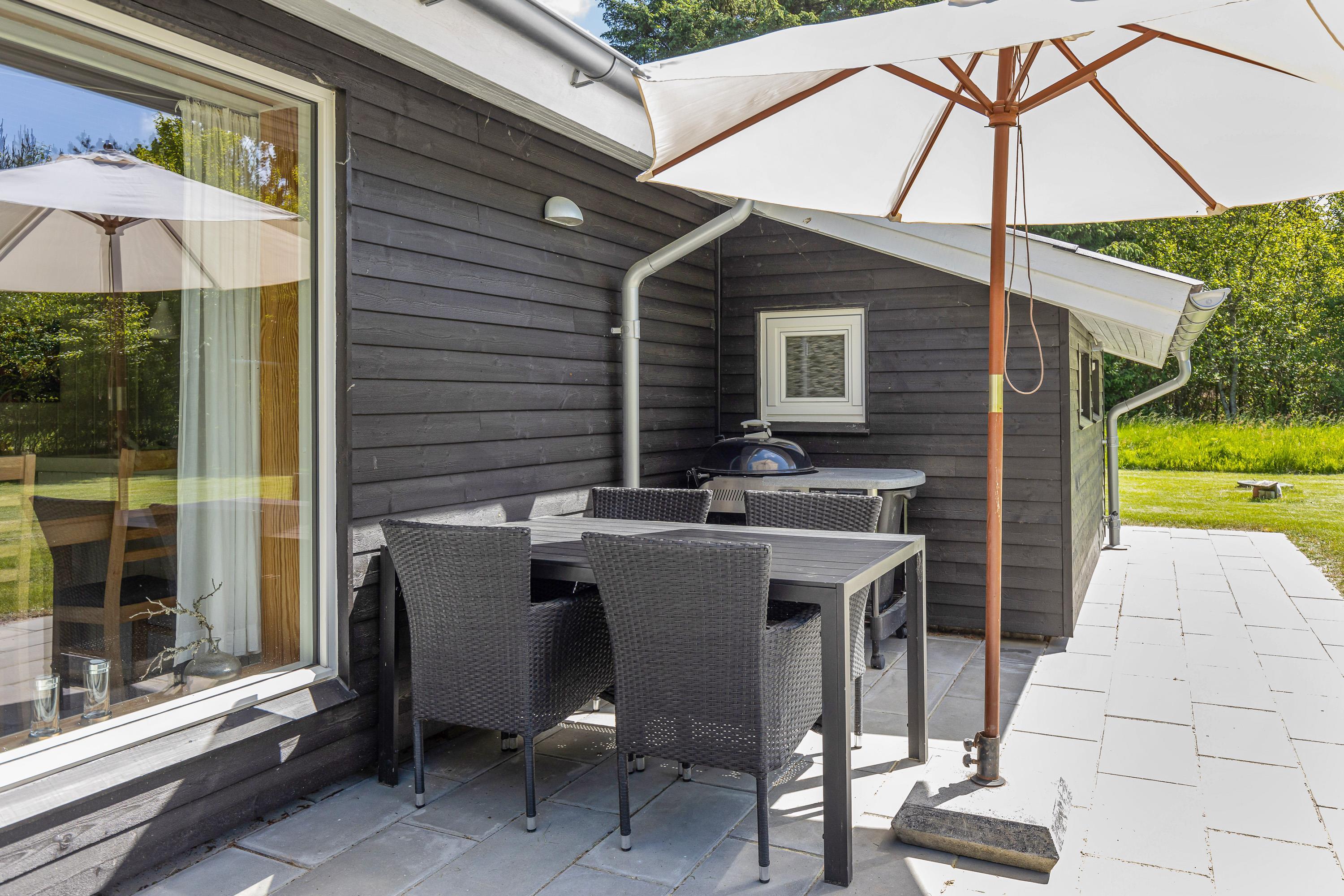 Mens børnene leger rundt i haven, kan forældrene passende slappe af på terrassen, hvor der er liggestole og havemøbler. Herfra kan I nyde udsigten til naturen og lyden af jeres børn, der leger på livet løs. Om aftenen kan I gøre klar til en lækker aftensmad på grillen, mens børnene bruger den sidste energi i haven.