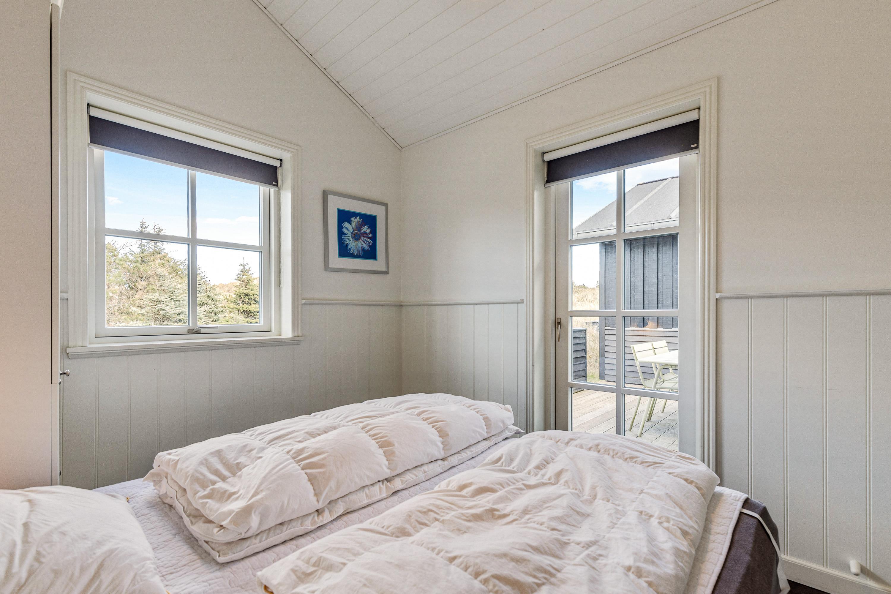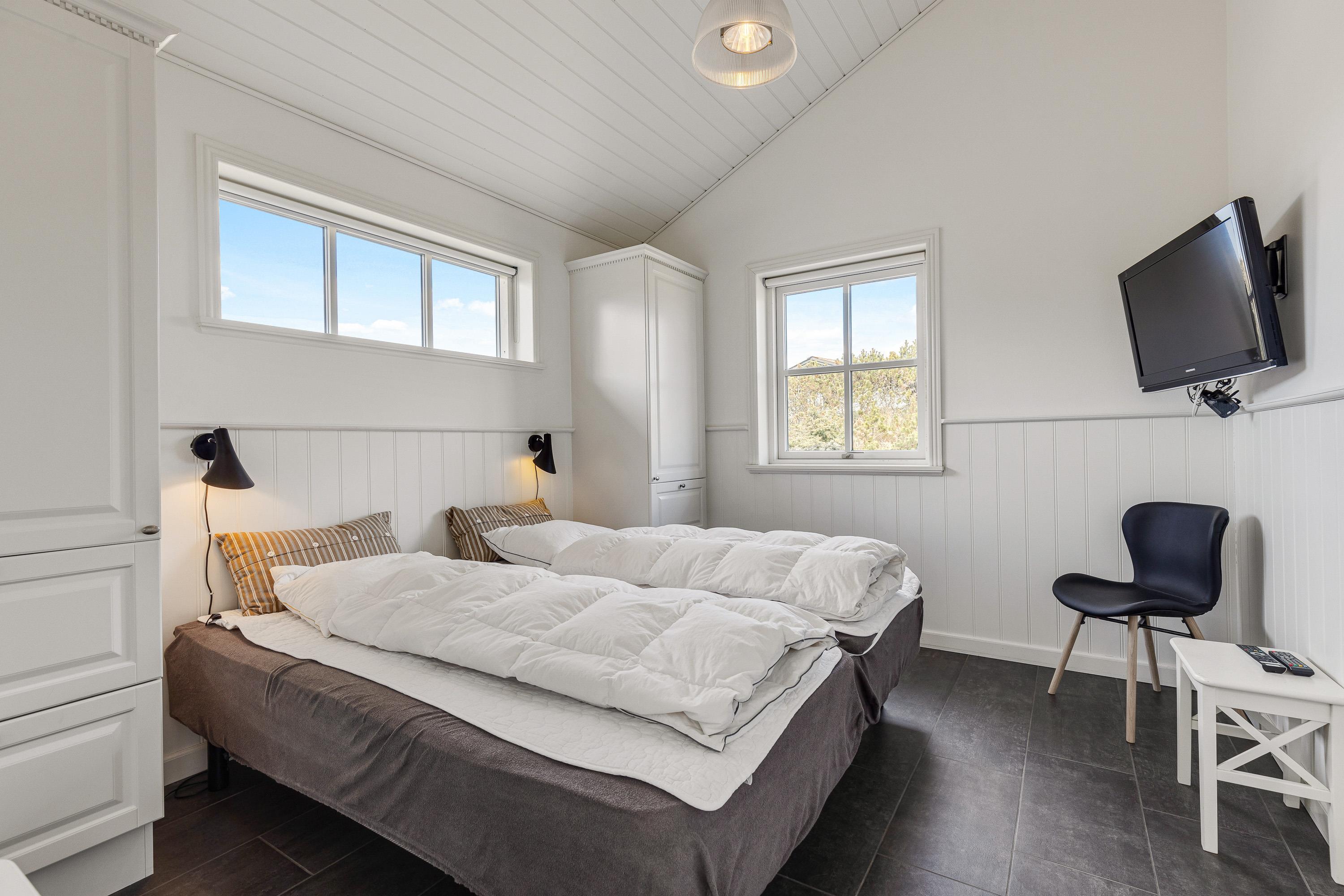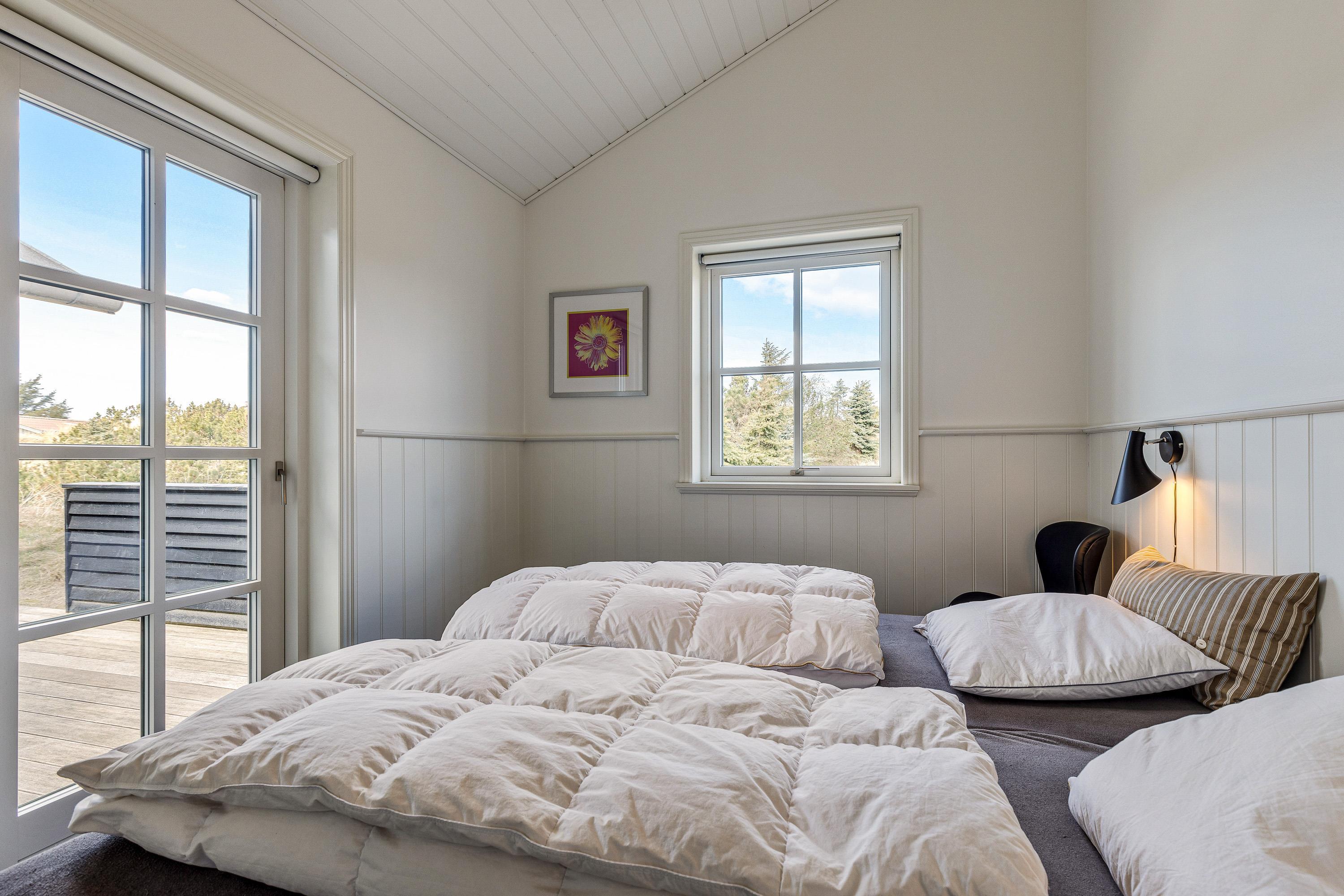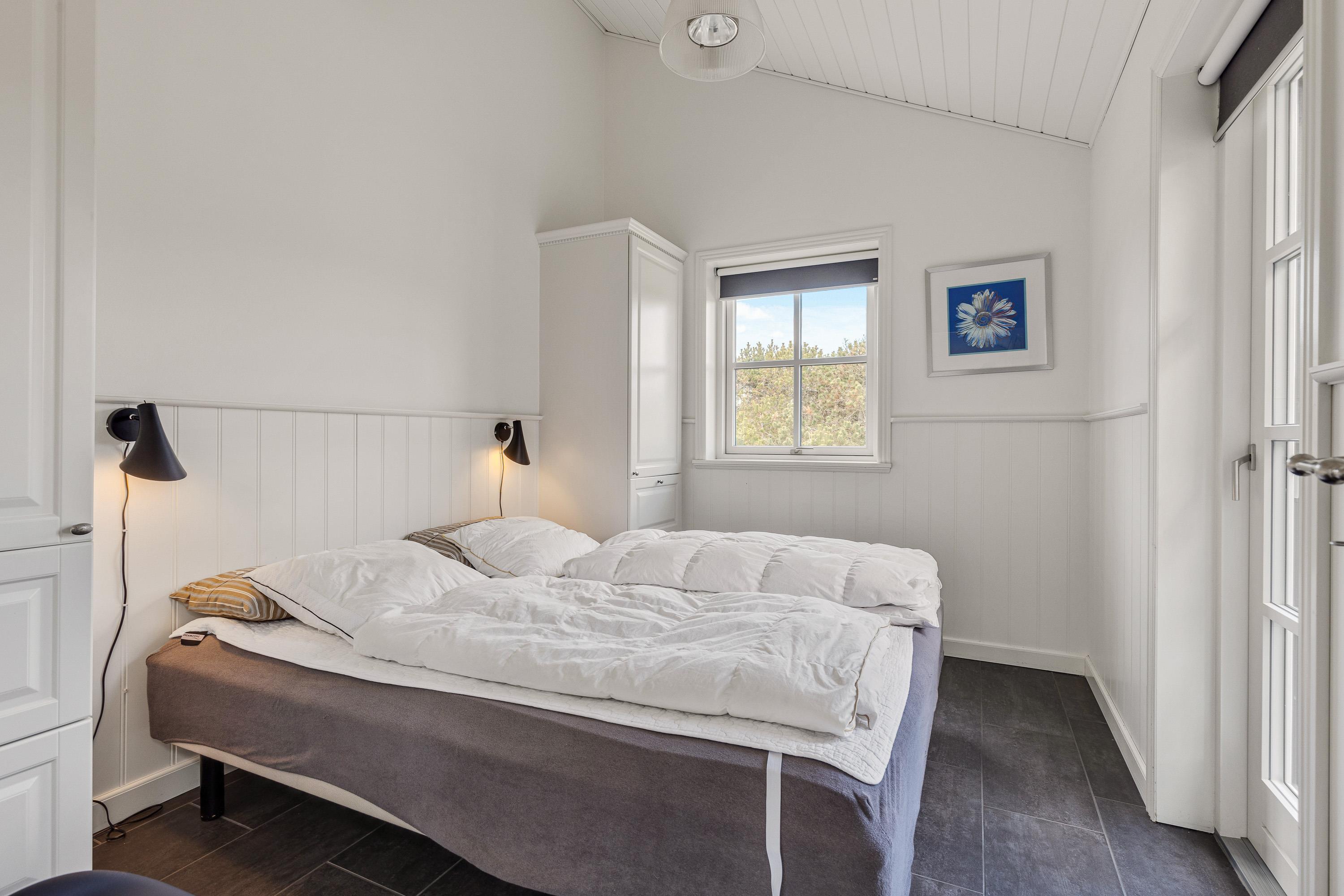 I sommerhuset finder I 4 gode soveværelser, der alle er indrettet med dobbeltsenge, som I kan få jeres skønhedssøvn i, så I er helt klar til jeres kommende feriedage i Vejers. Med hele 2 badeværelser med gulvvarme skal I hverken bekymre jer om at fryse fødderne eller at stå i kø.
