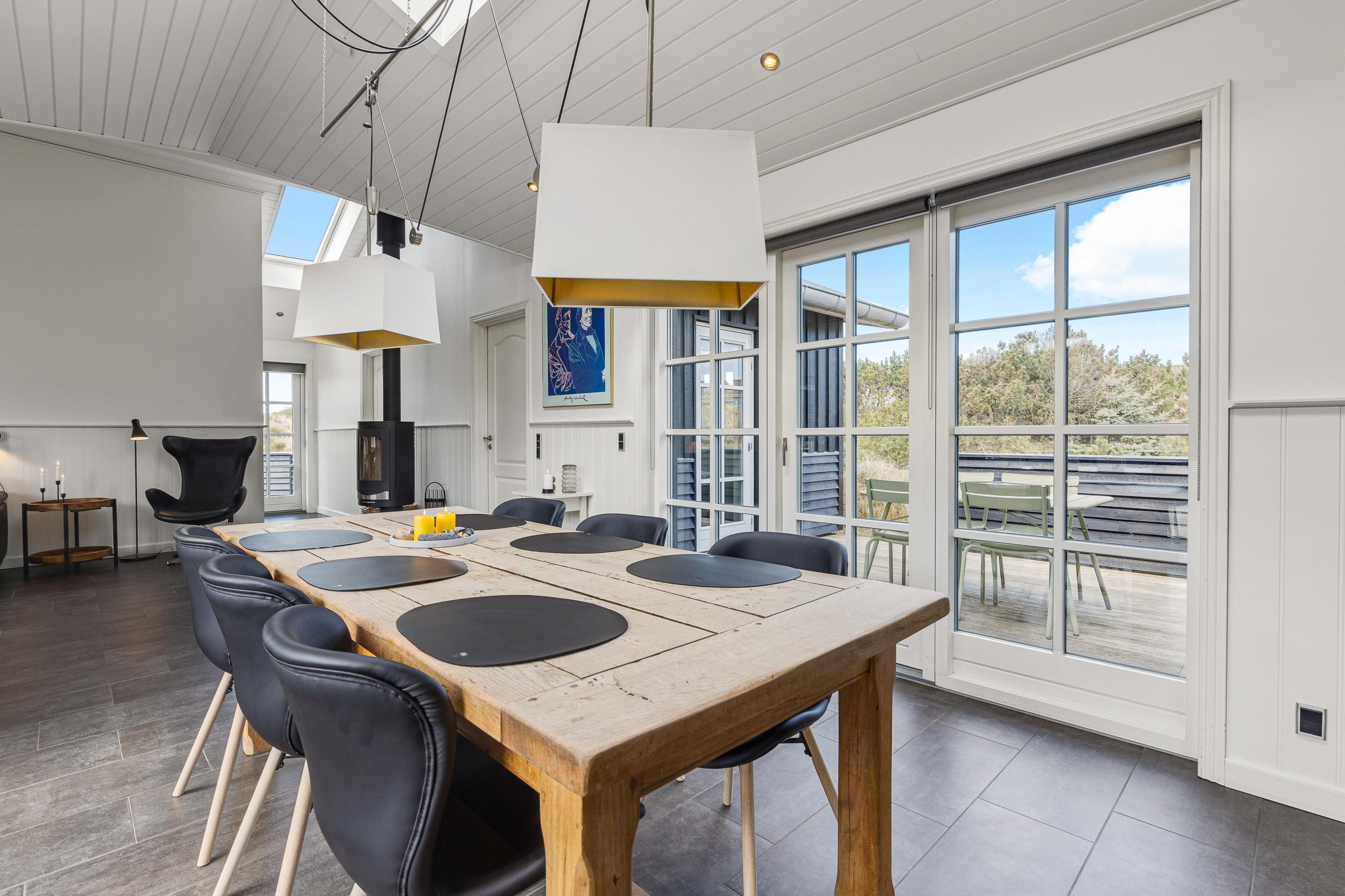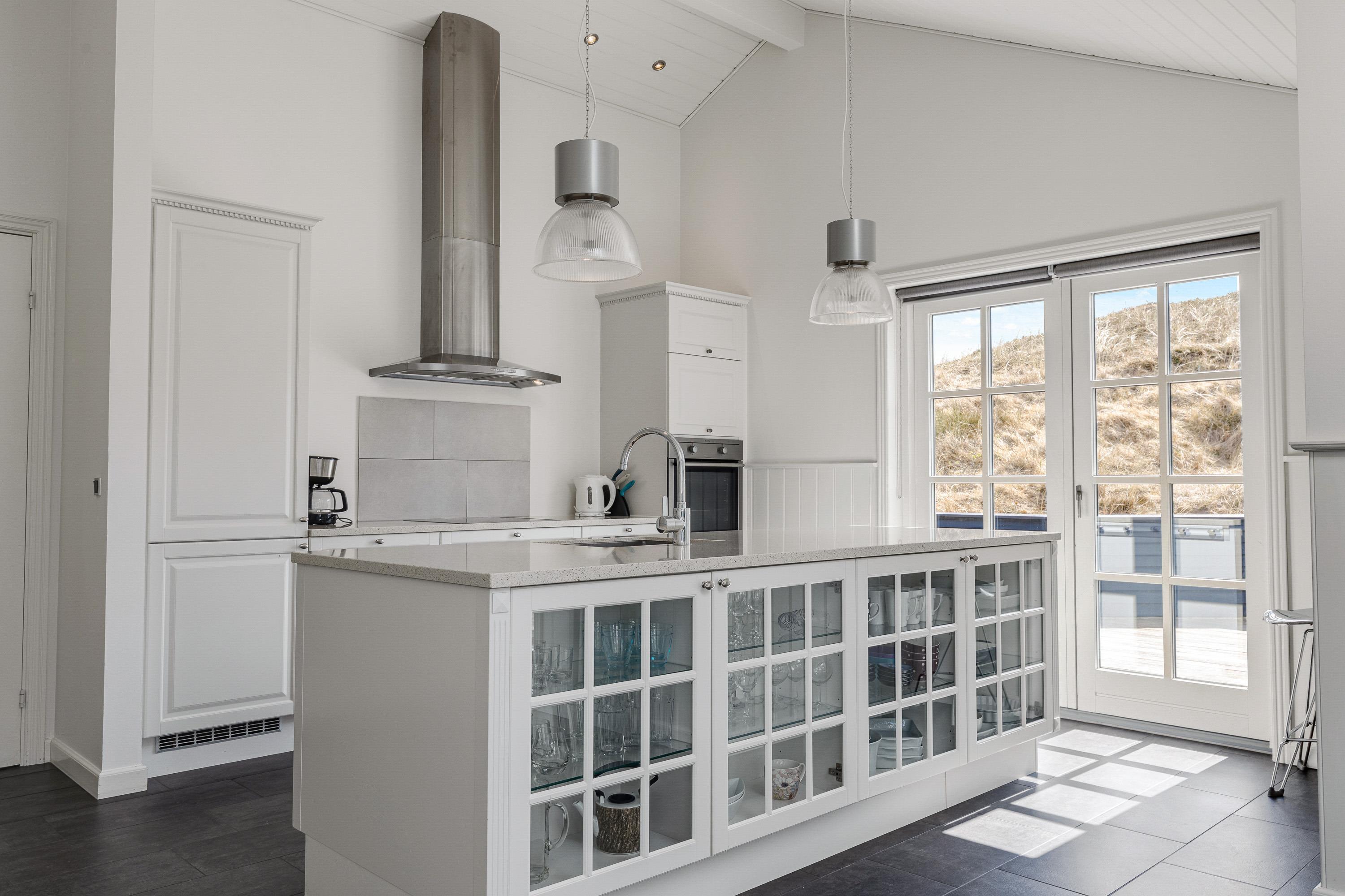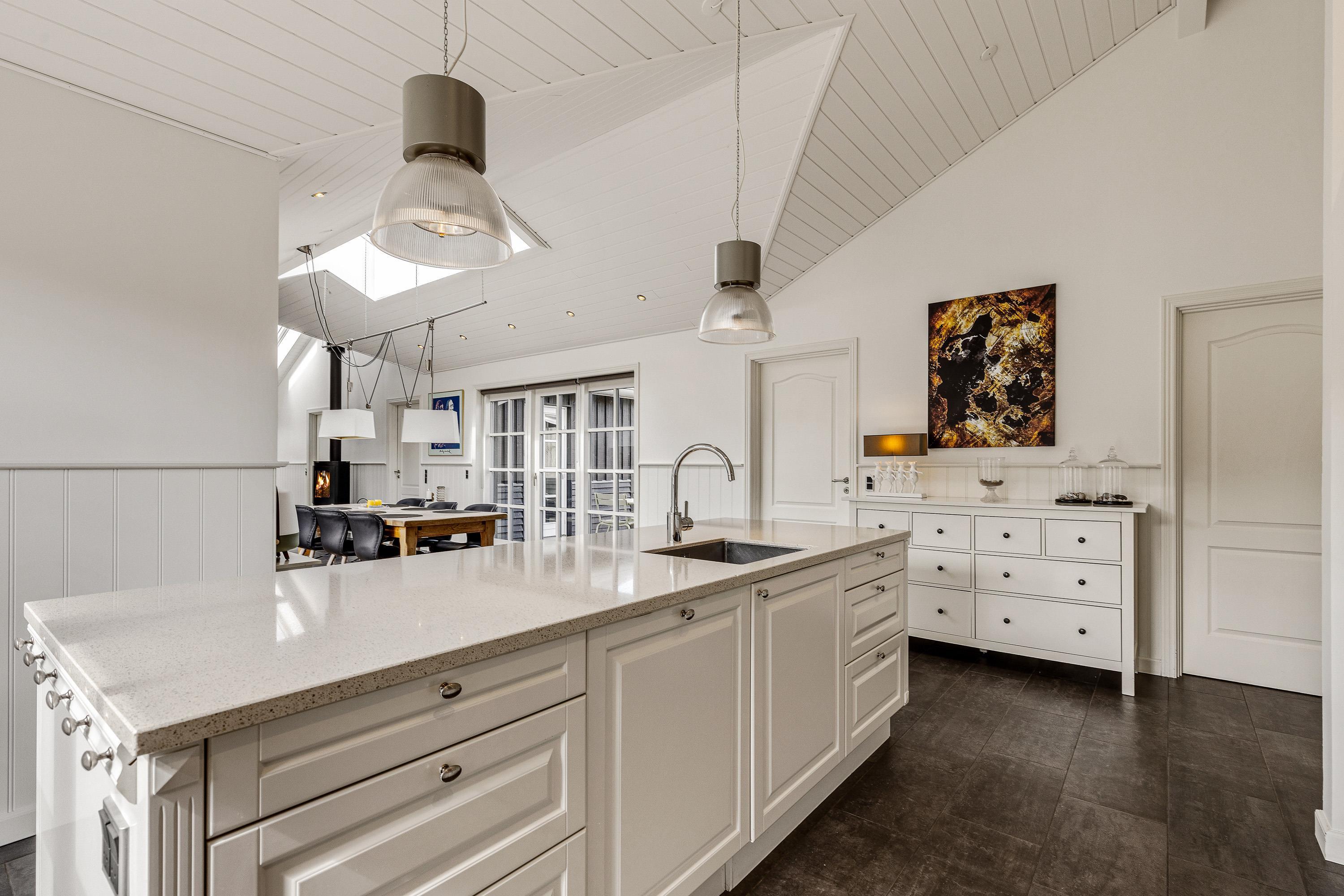 Det femstjernede feriehus byder indenfor til en lys og indbydende indretning, hvor der er et skønt lysindfald og højt til loftet. Tilsammen skaber det en helt fantastisk ferieatmosfære for jeres ferie.
