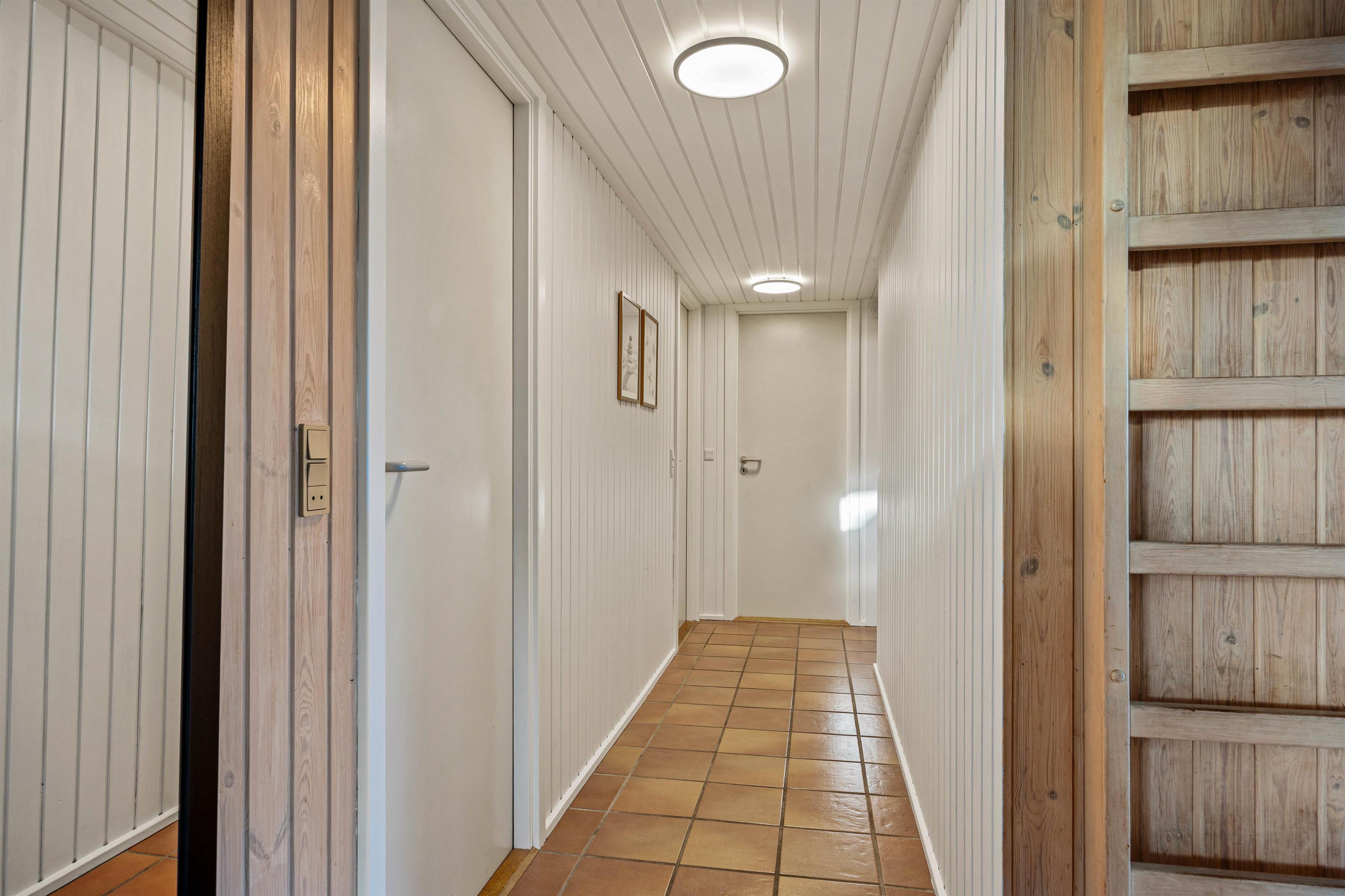 I stuen finder I en energibesparende varmepumpe, som sikrer et behageligt indeklima året rundt. Her er en stor 90-liters fryser og både vaskemaskine og tørretumbler – på den måde er I sikret friske strandhåndklæder under hele opholdet.
