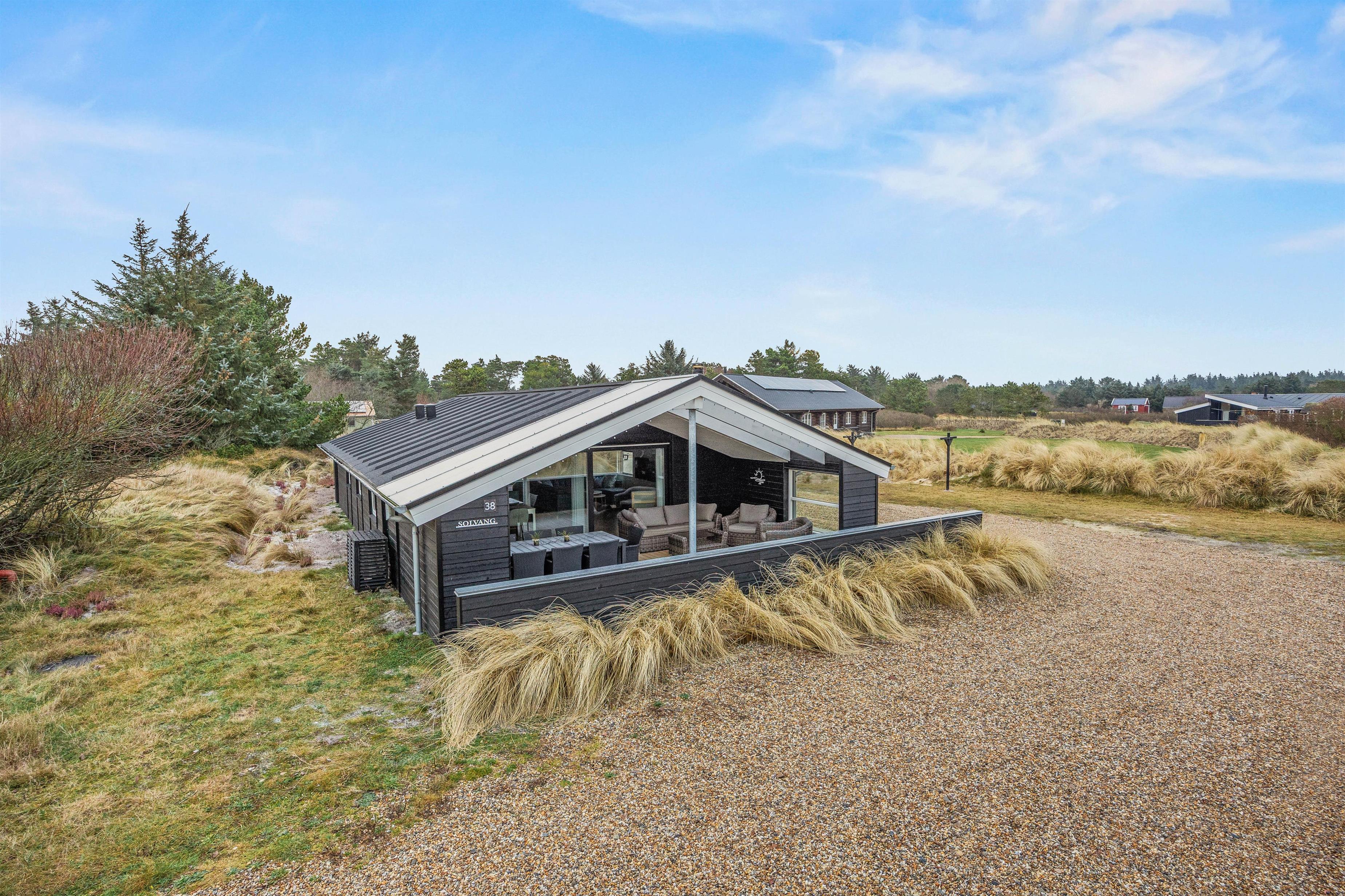 Velkommen til dette skønne sommerhus i Vejers, beliggende på en naturgrund på Risvej 38, hvor I kan lade hverdagens stress bag jer og finde afslapning og komfort. Det flotte hus, som er bygget i 2024 og indrettet med nordisk elegance, rummer med sine 166 kvadratmeter alt, hvad hjertet måtte begære.