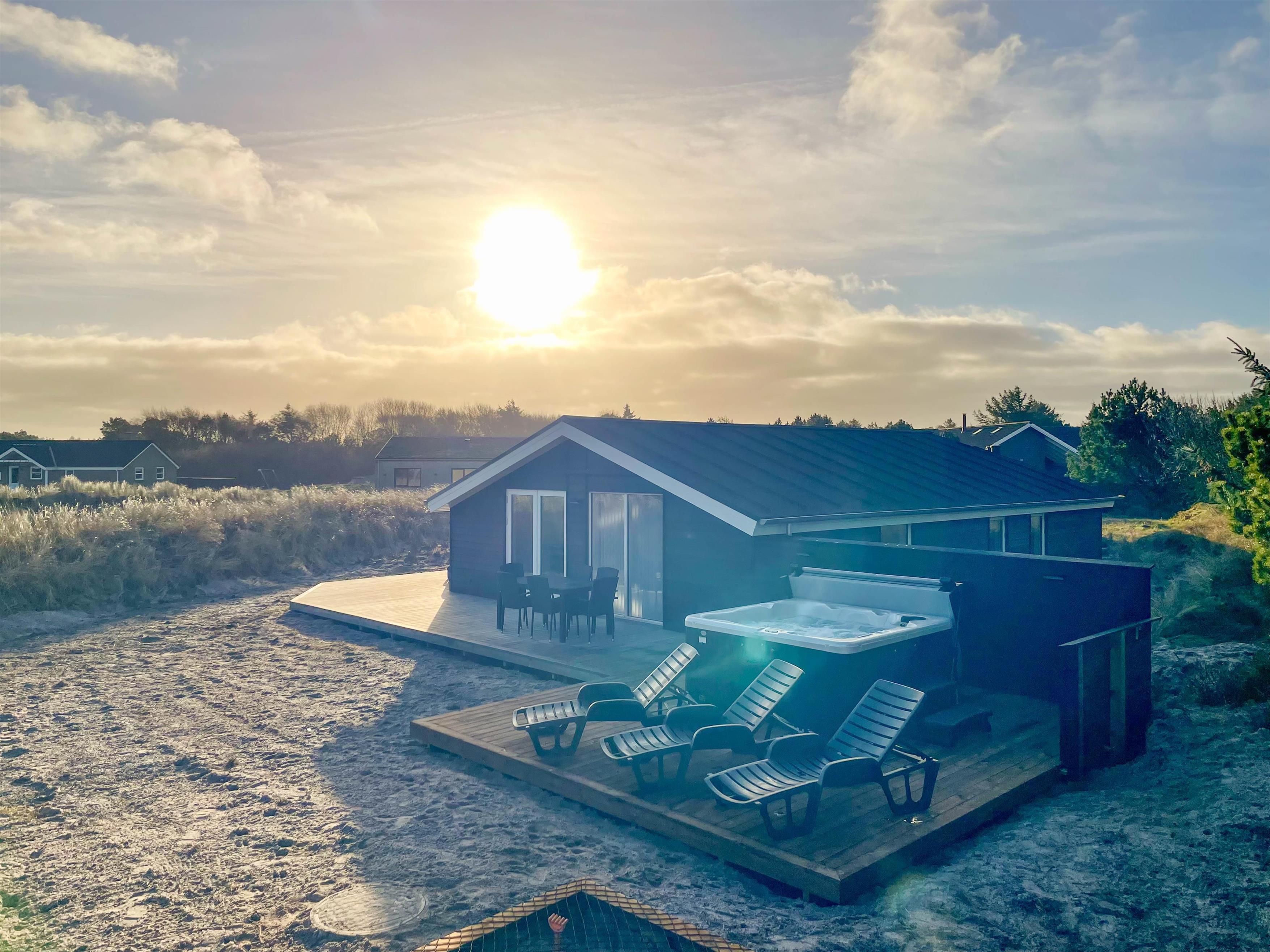 Sommerhuset i Vejers overbeviser ikke kun med sin stilfulde indretning, men også med sine fremragende wellness-faciliteter. Slap af i husets egen sauna eller nyd lidt luksus i det udendørs spabad under stjernehimmel, perfekt som afslutning efter en lang dag på stranden. Her kan I få blødt kroppen op og tanke ny energi til det næste ferieeventyr.
