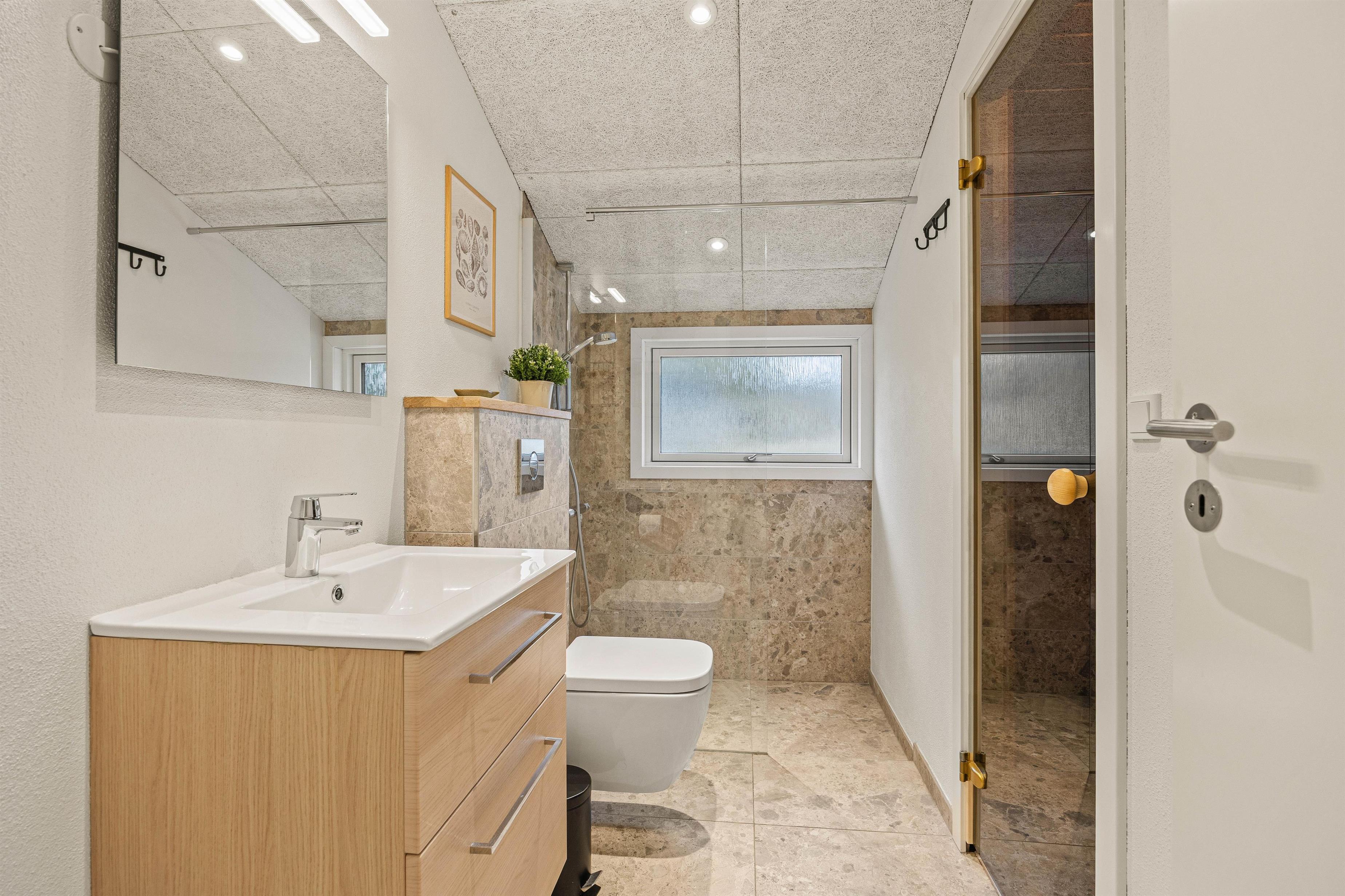 Moderne bekvemmeligheder som opvaskemaskine, vaskemaskine og tørretumbler gør jeres ophold ekstra komfortabel, ligesom de 2 energieffektive varmepumper i stuen og aktivitetsrummet året rundt sørger for et behageligt indeklima. Der er 2 badeværelser, begge med gulvvarme, så I hver morgen kan holde fødderne varme, og I undgår kø om morgenen.