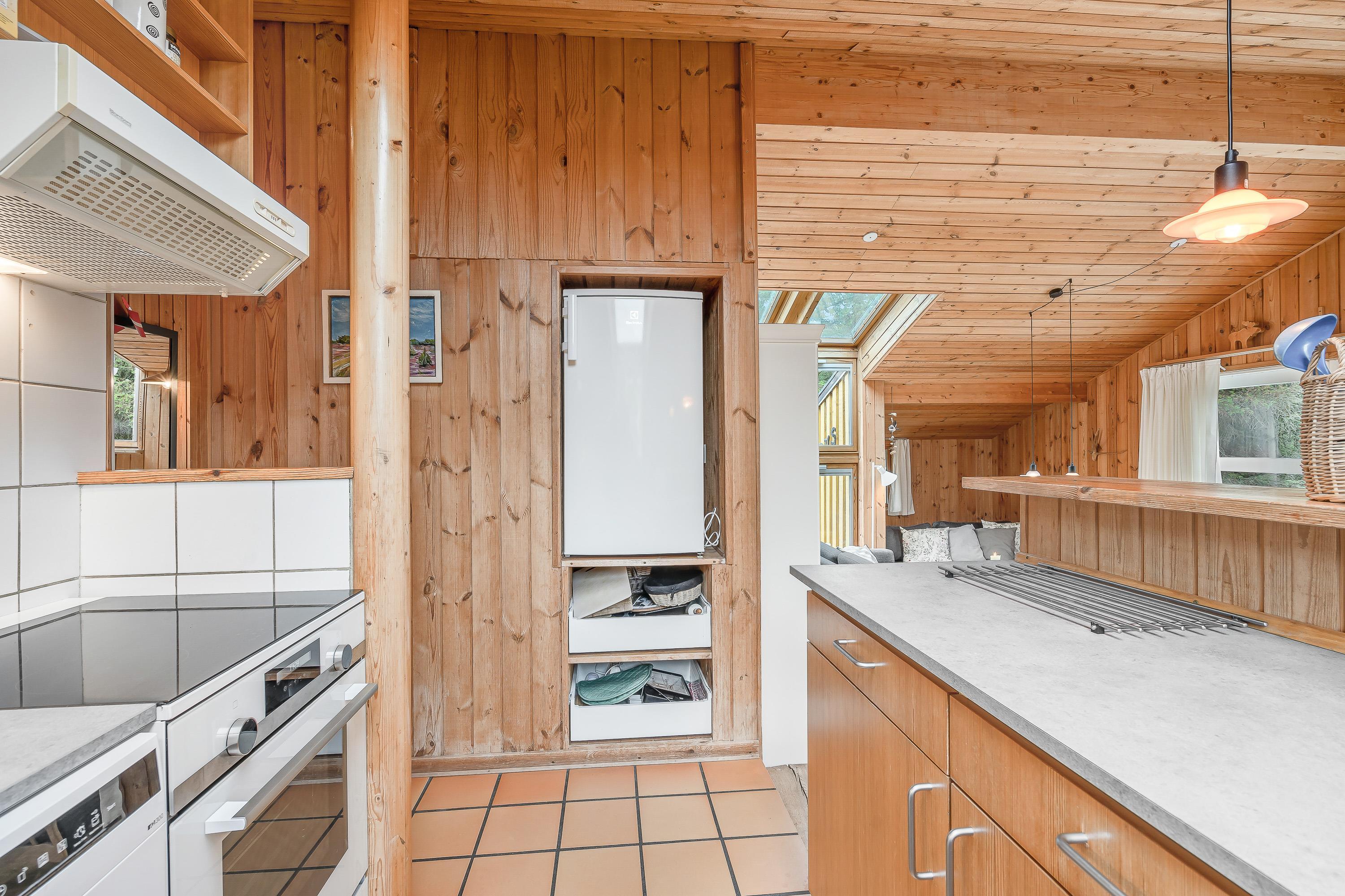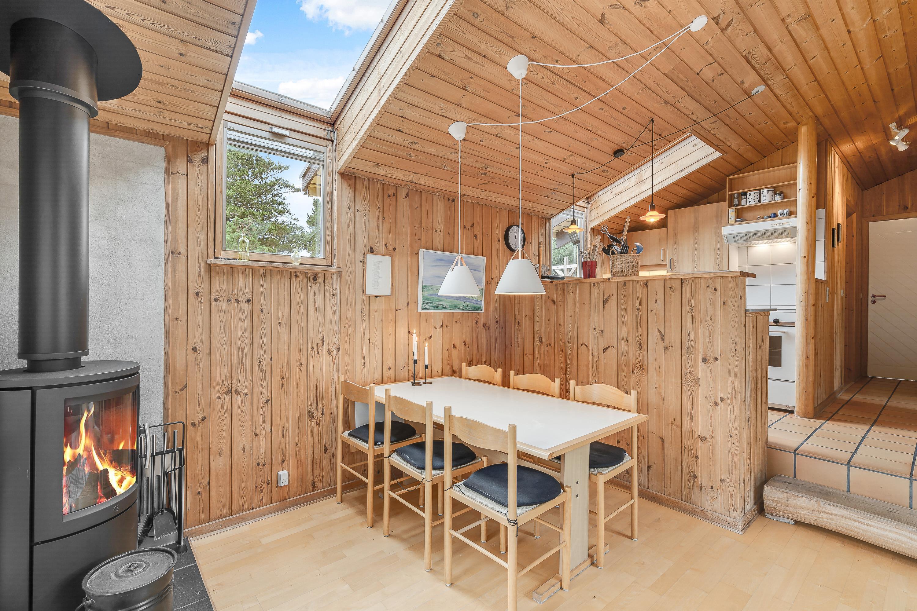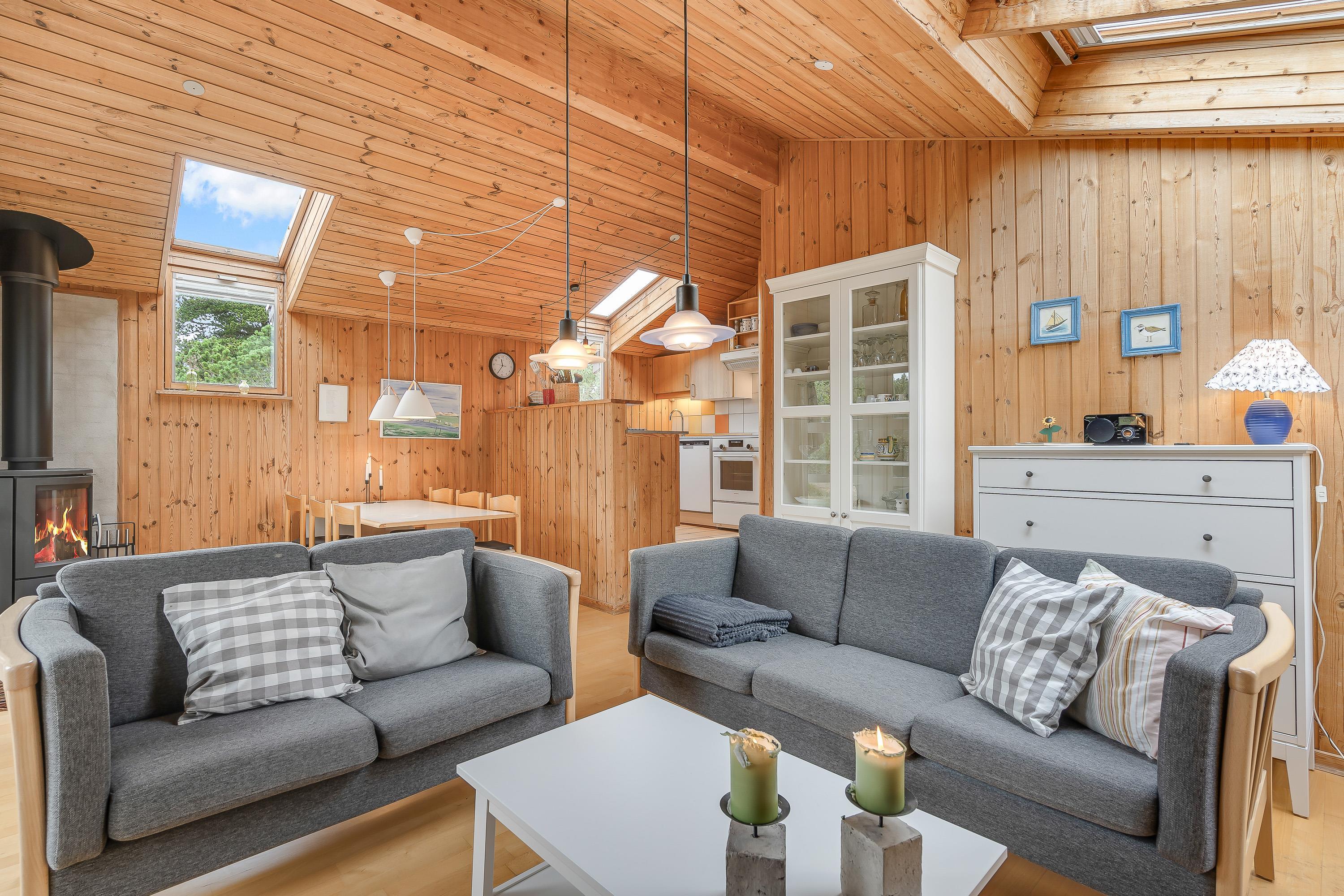 Hjertet i sommerhuset er det skønne alrum, der forener køkken, stue og spiseplads. Her kan I nyde mange dejlige feriestunder med blandt andet madlavning, spil og film, mens brændeovnen knitrer i baggrunden og fuldender feriestemning.