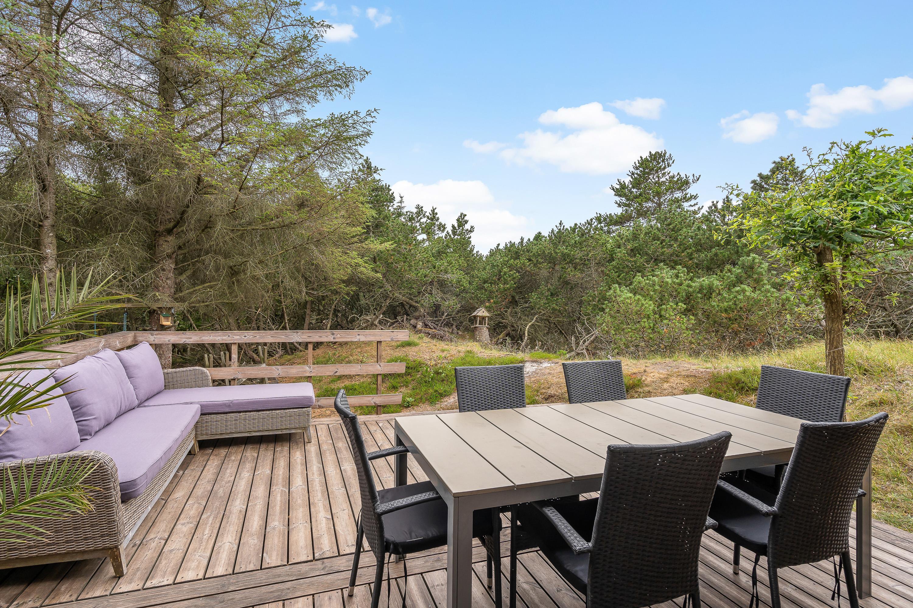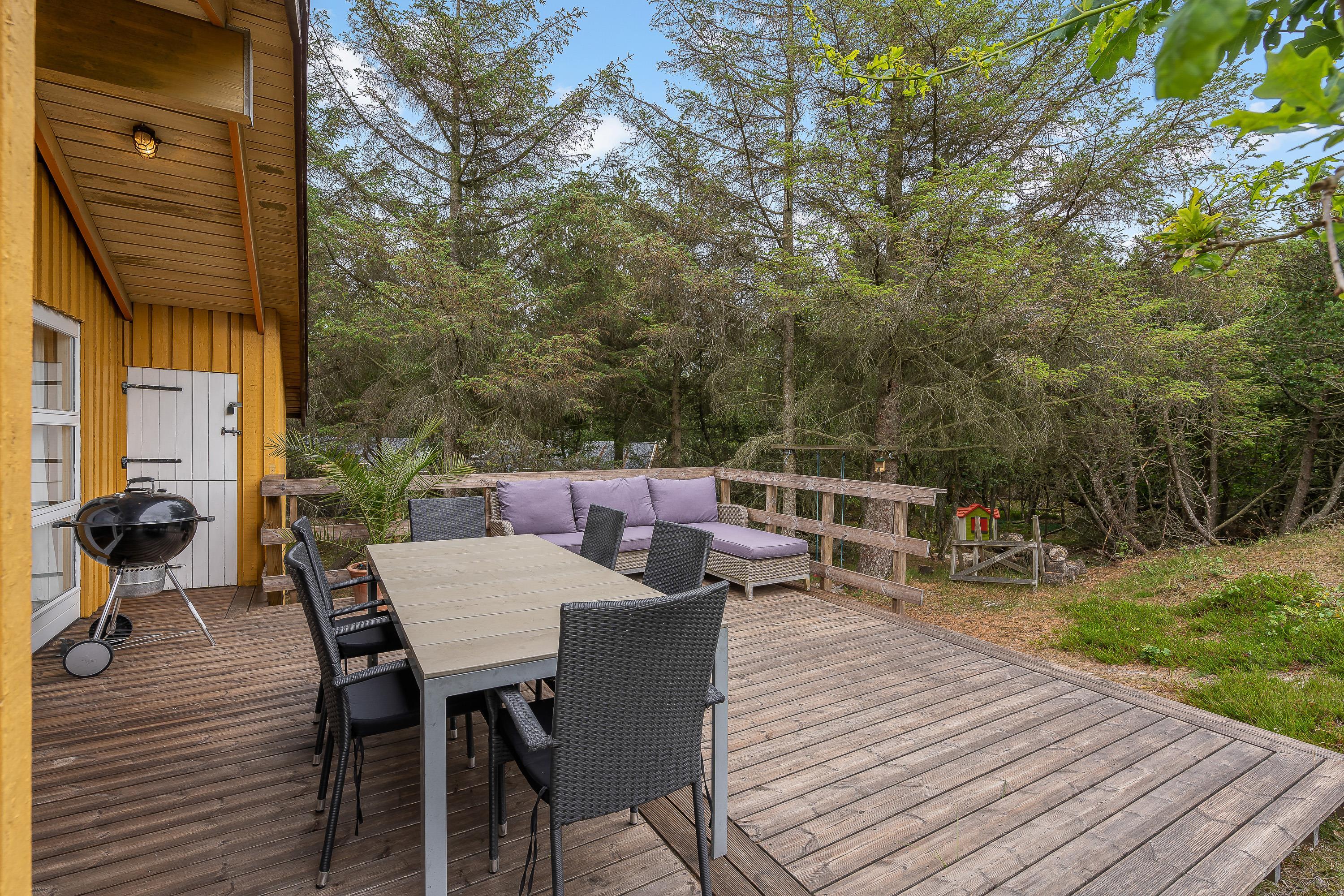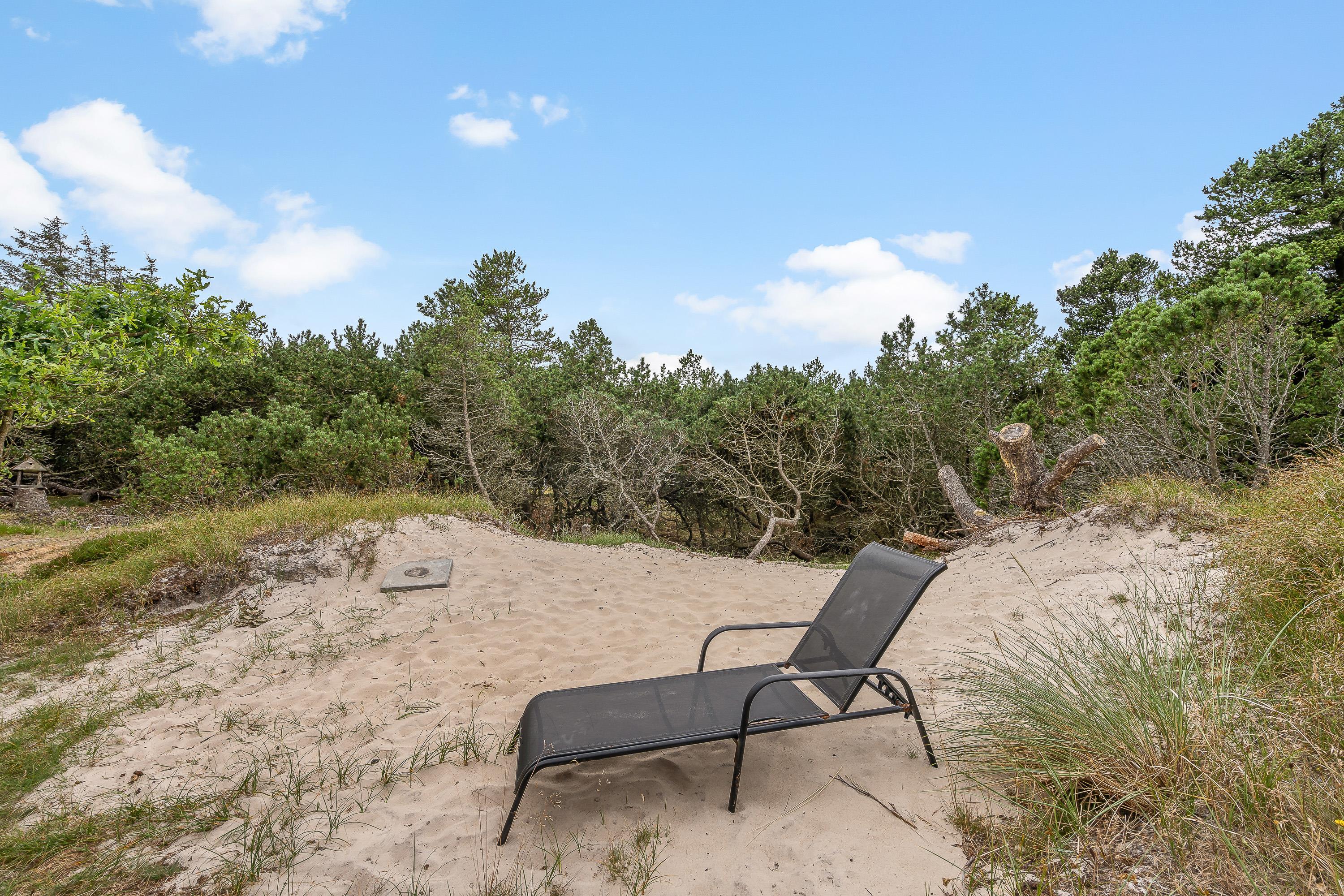 På sommerhusets udeområde kan I se frem til flere dejlige terrasser, hvor der står havemøbler og liggestole klar til jer, så I kan læne jer godt tilbage og bare slappe af i solen. Sommerhuset ligger på en naturgrund, og omkring sommerhuset er der træer, der giver jer privatliv.
