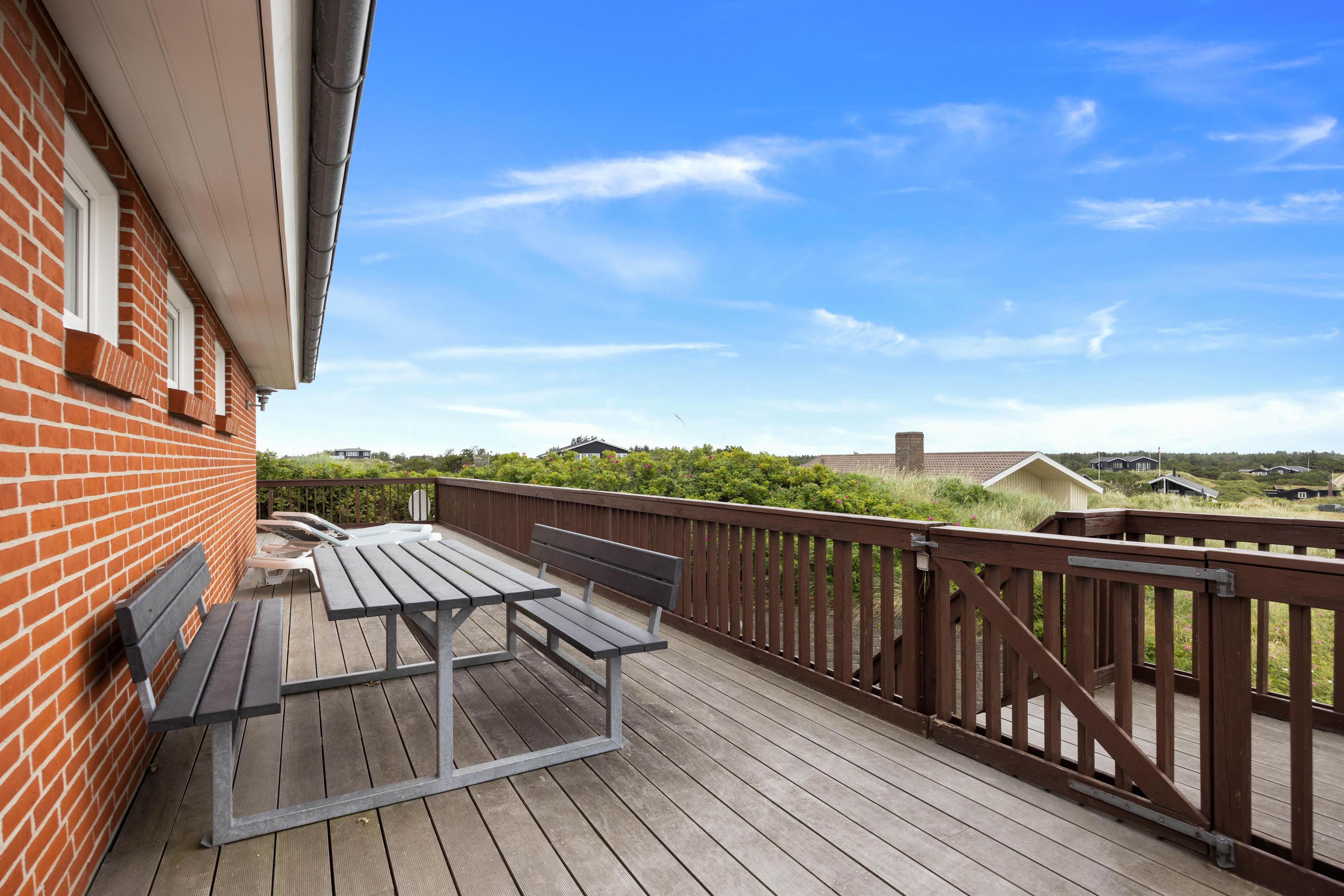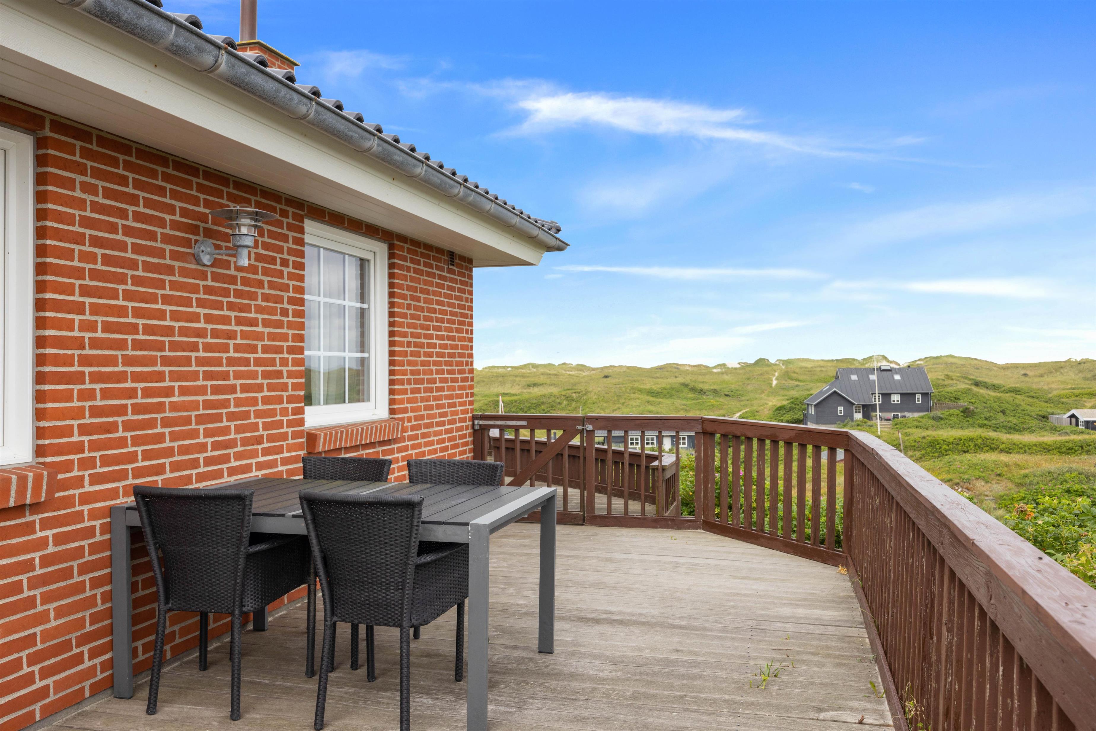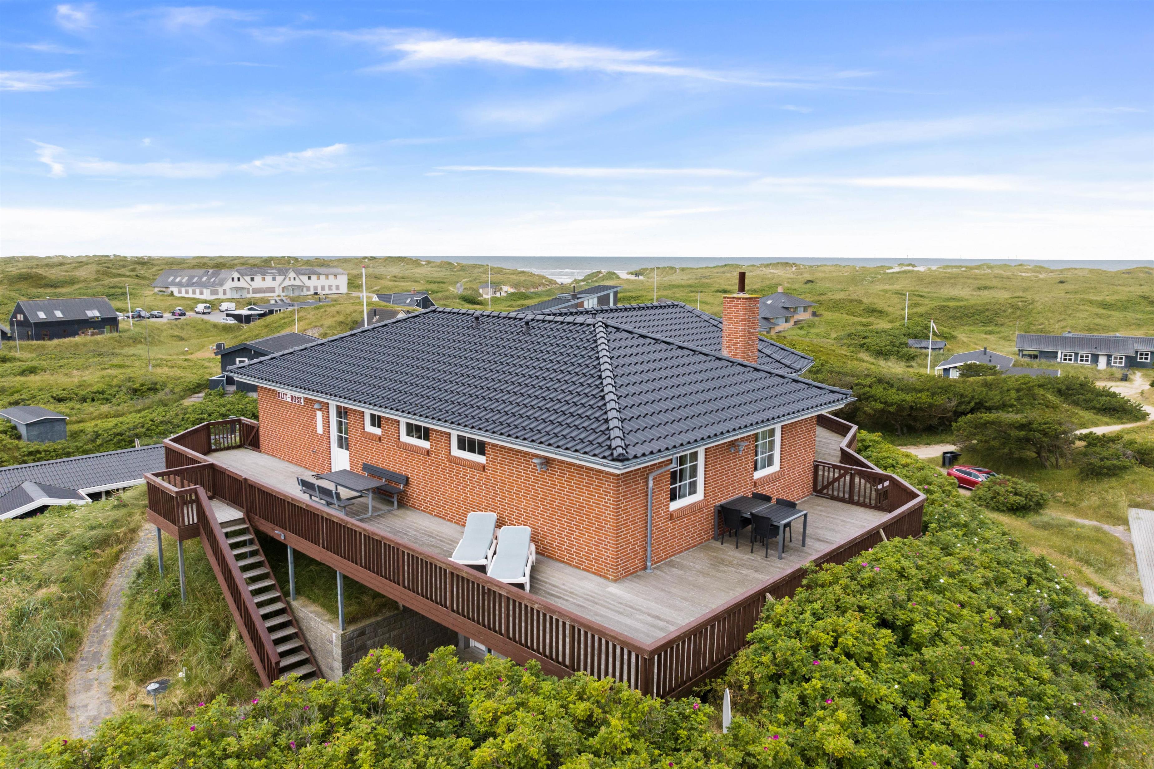 På toppen af en klit finder I dette fine sommerhus med plads til 8 personer. Et solidt og rummeligt feriehus med spa og sauna. Sommerhuset er beliggende på Nordvej 5 i feriebyen, Vejers, på en stor klitgrund (7.688 m2) med flot panoramaudsigt over klitlandskabet. Det er muligt via en sti, der hører til feriehuset, at gå direkte ned på Nordstranden og kun 150 meter fra det brusende Vesterhav. Hjertelig velkommen!