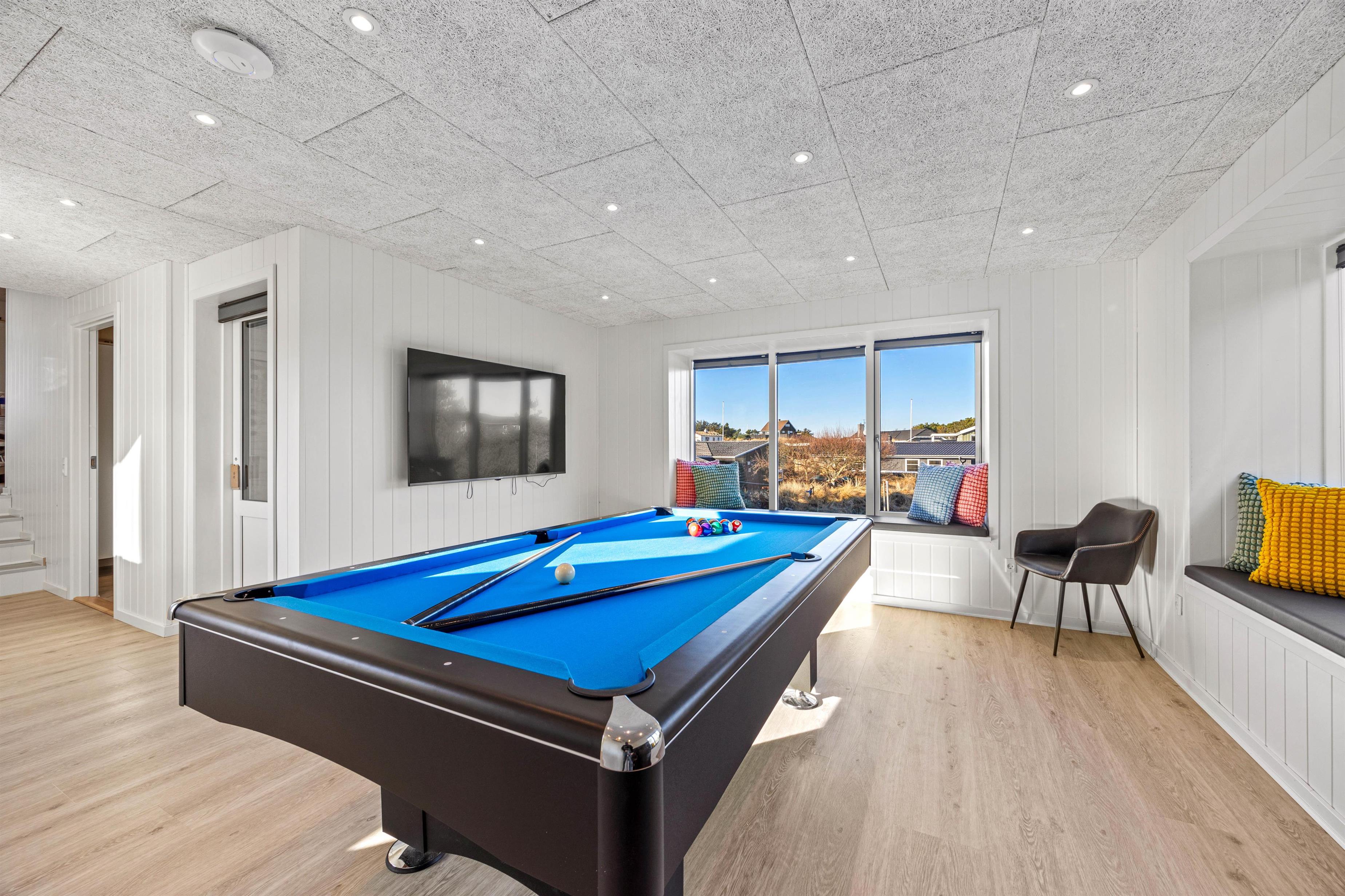 Den lukkede terrasse indbyder til solbadning, mens du kan finde underholdning i aktivitetsområdet med poolbord og bordtennis, og så er der her masser af plads til, at hunde kan løbe rundt - op til 2 af dine firbenede venner er meget velkomne her.
