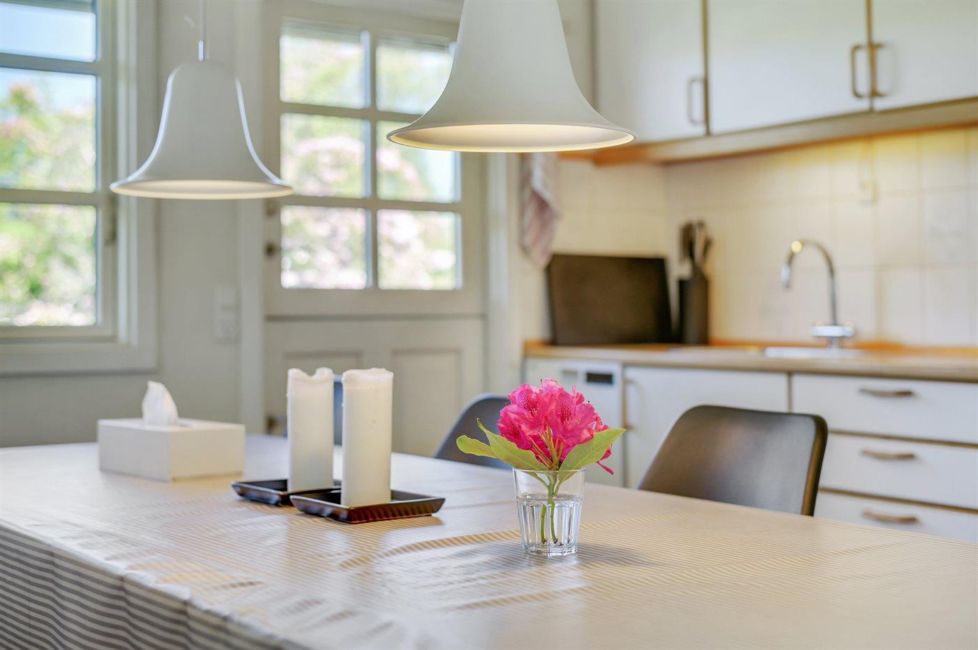 Køkkenet er udstyret med køleskab, fryser på 107 liter, 4 keramiske kogeplader, varmluftovn, mikrobølgeovn samt opvaskemaskine og div. køkkenmaskiner. Udendørs findes der en gasgrill