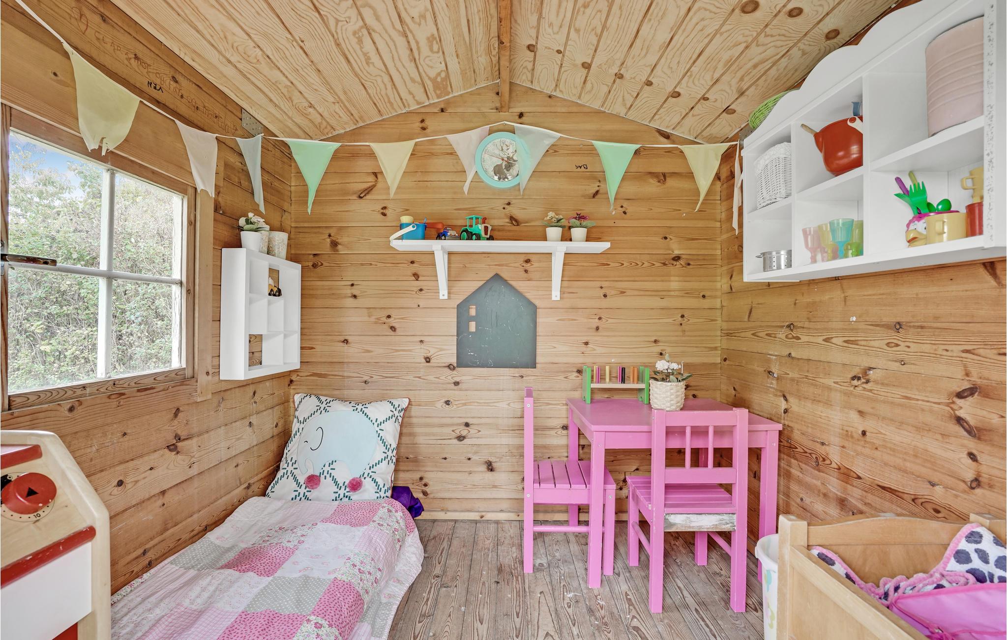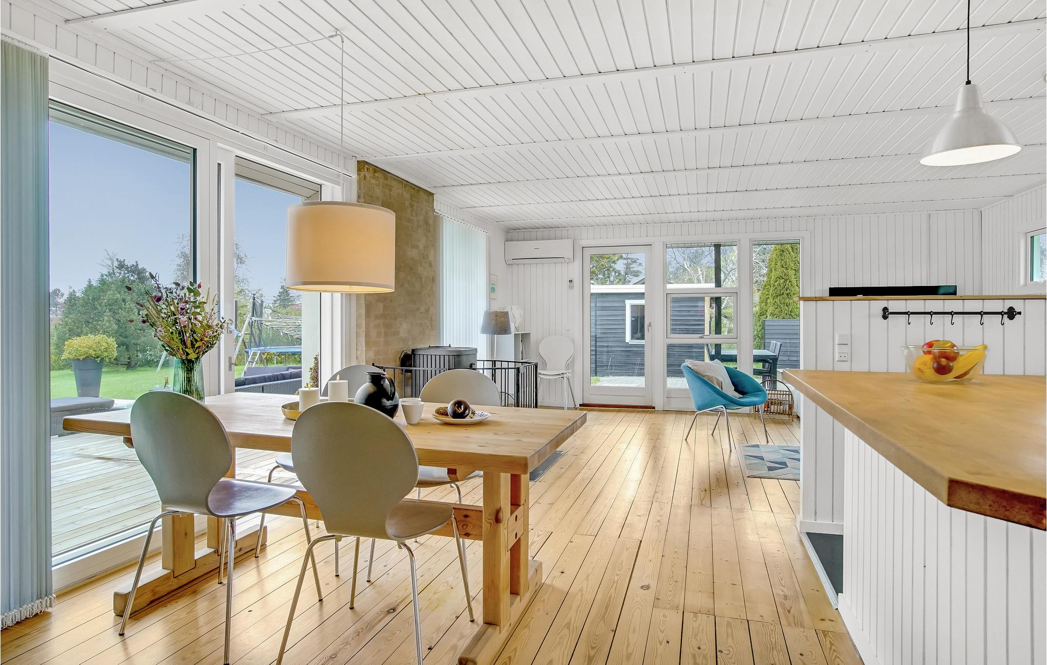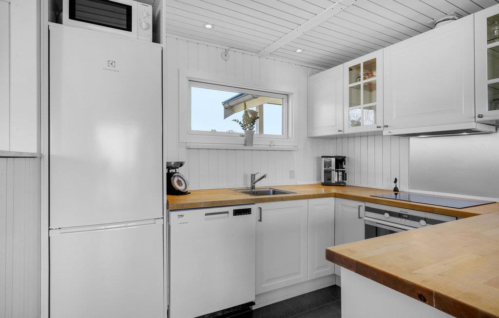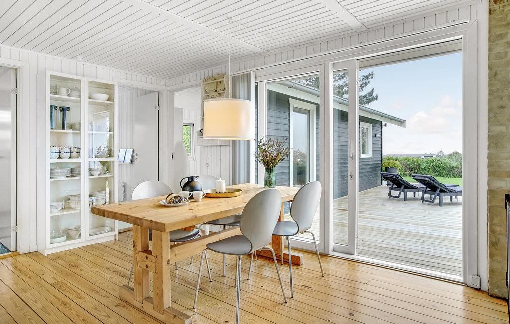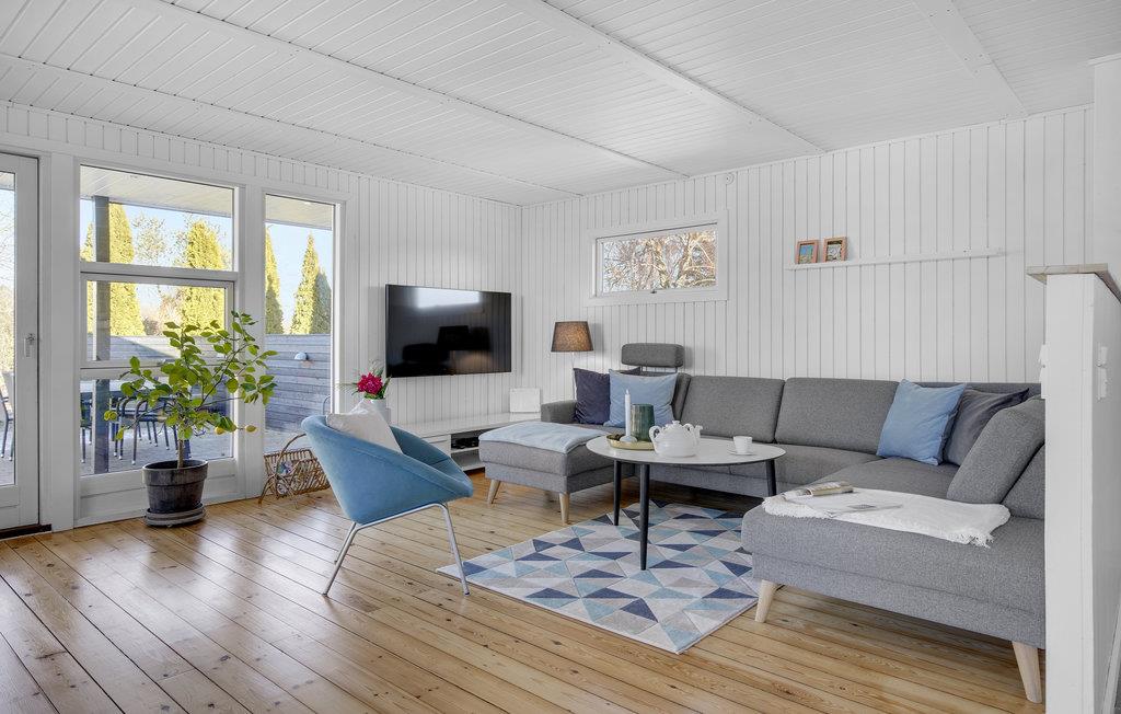 Stuens åbne forbindelse med køkken og spiseplads giver huset god rummelighed, hvilket skaber gode betingelser for familiens samvær. Sæt jer til rette ved pejsen, lad børnene lege i haven med fuld udstyret legehus og legeredskaber. Eller tag dem med til vandet, hvor I kan bade og fiske.
