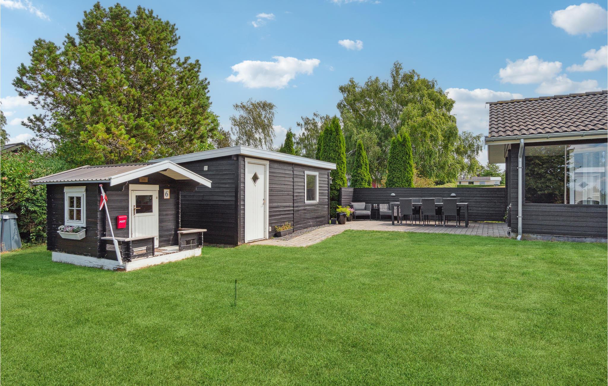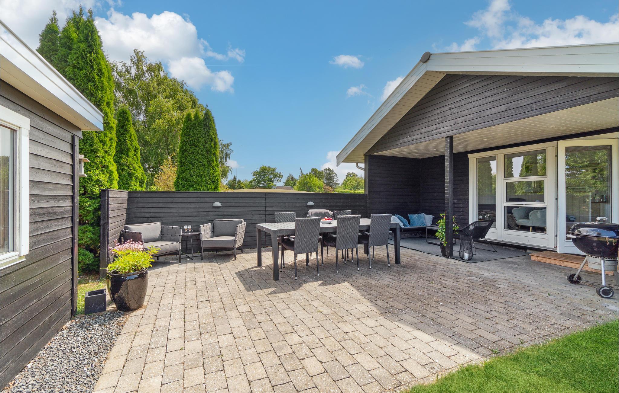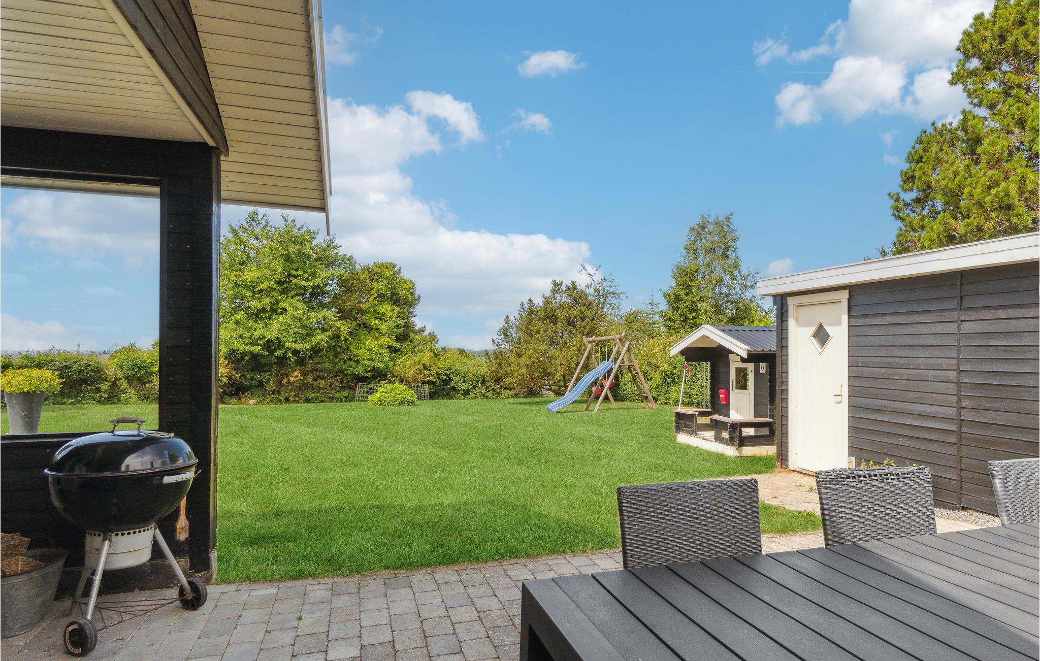 Stuens åbne forbindelse med køkken og spiseplads giver huset god rummelighed, hvilket skaber gode betingelser for familiens samvær. Sæt jer til rette ved pejsen, lad børnene lege i haven med fuld udstyret legehus og legeredskaber. Eller tag dem med til vandet, hvor I kan bade og fiske.