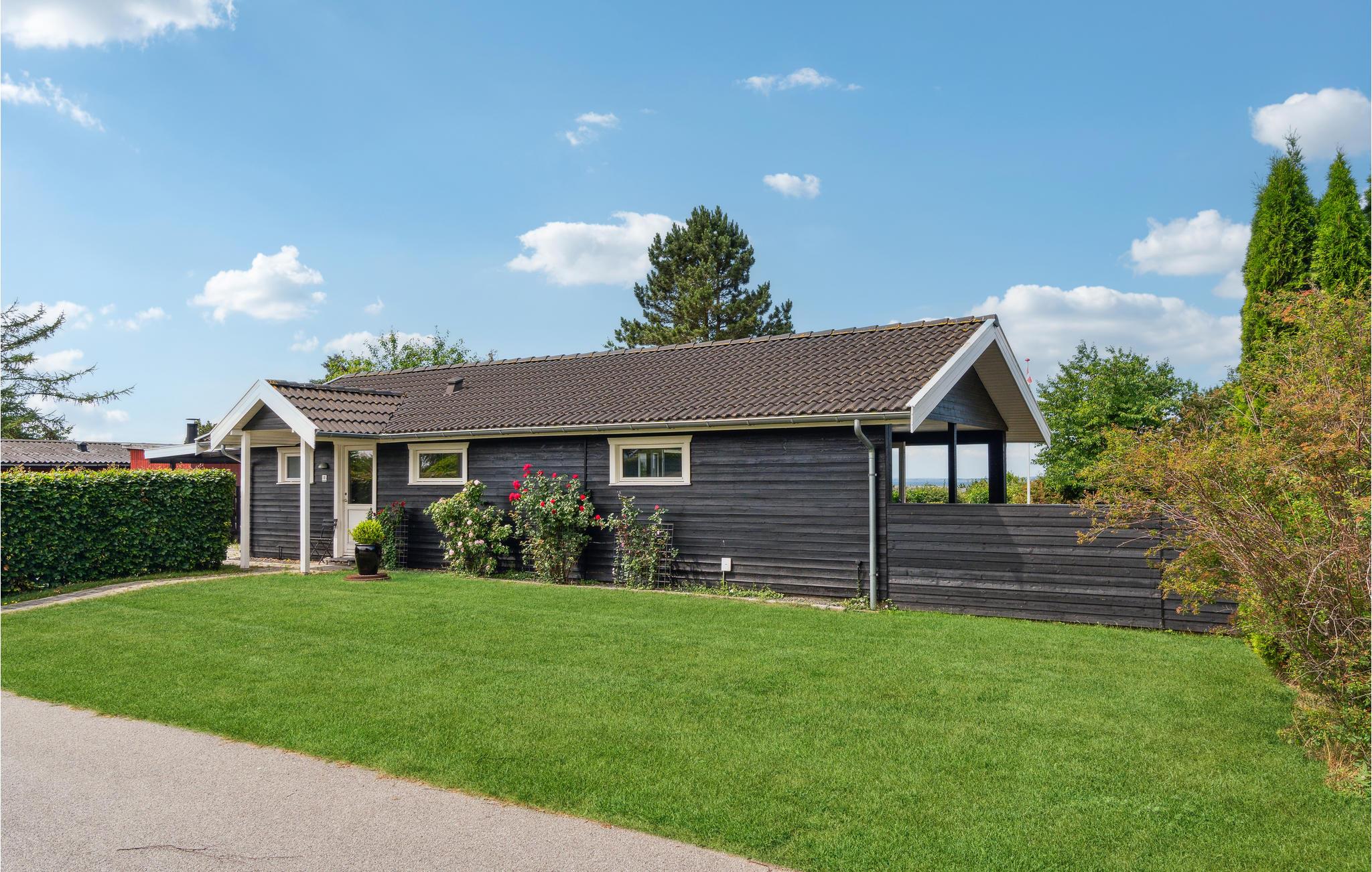 Se solnedgangen fra fjordens vandkant 10 minutters gang fra huset eller oplev den fra stuen – med gode chancer for, at vilde rådyr og egern kigger forbi. Huset rummer to soveværelser en suite - det ene med direkte udsigt til fjorden. Der er desuden et mindre rum med en juniorseng.